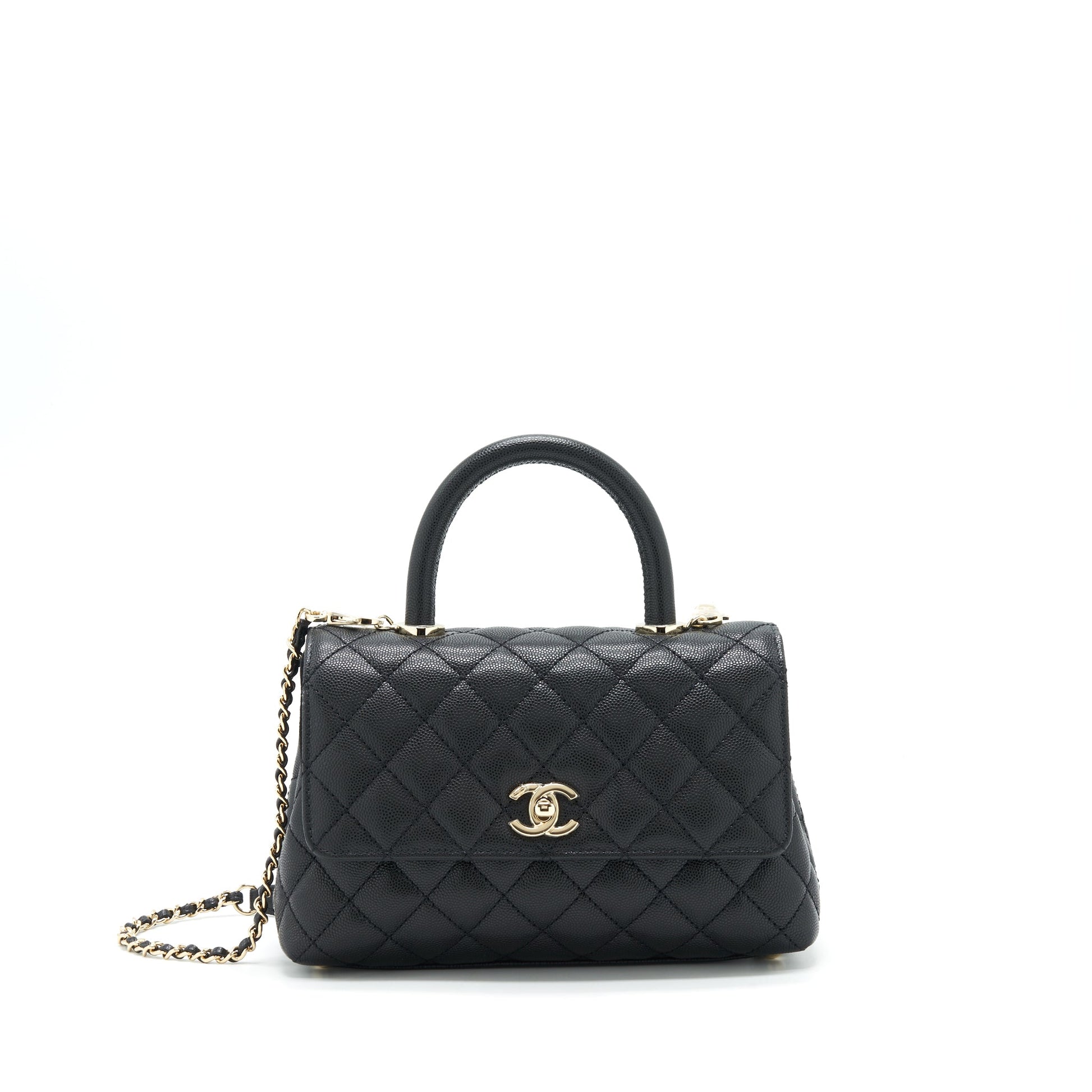 Chanel Small Coco Handle Caviar Black LGHW (Microchip)