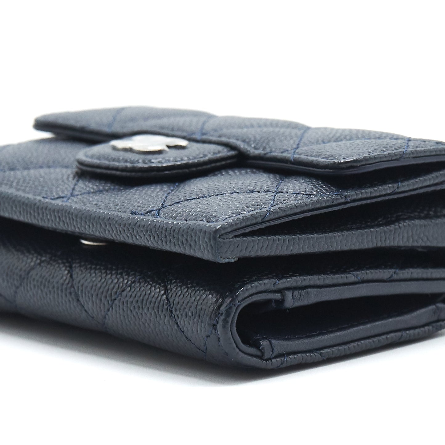 Chanel Small Compact Wallet Caviar leather indigo SHW