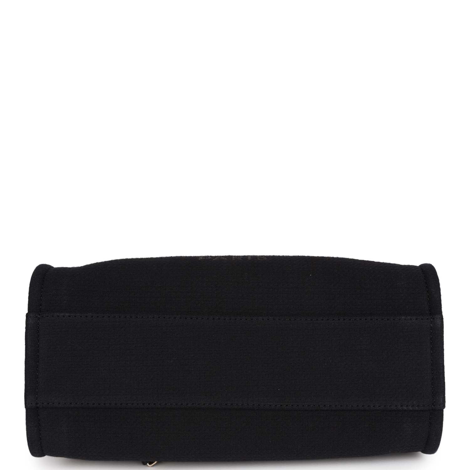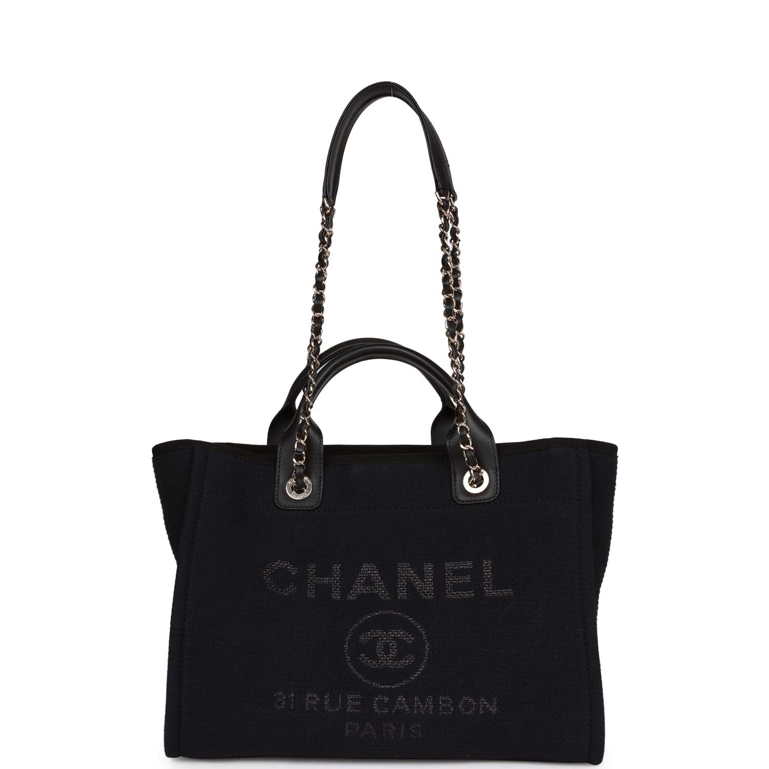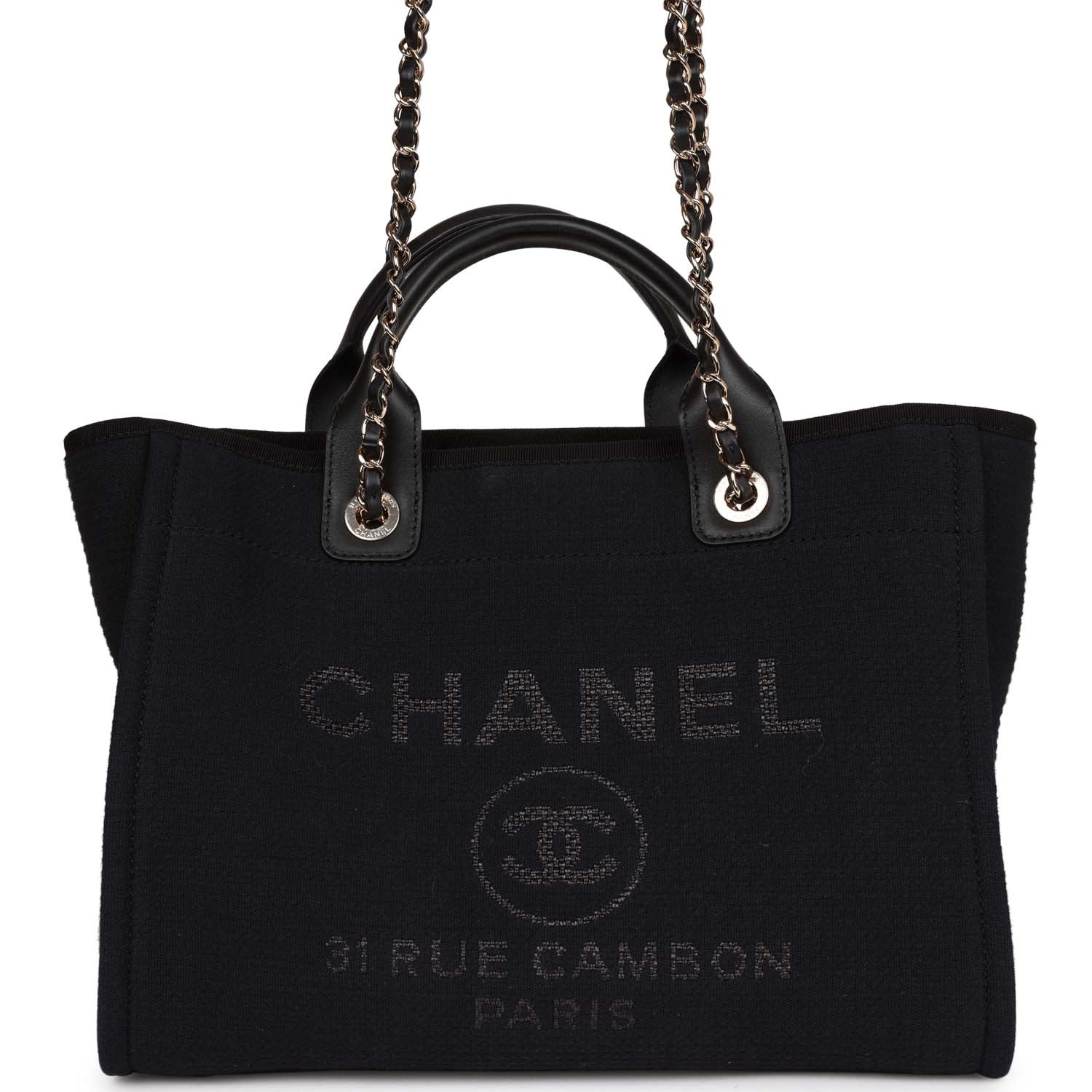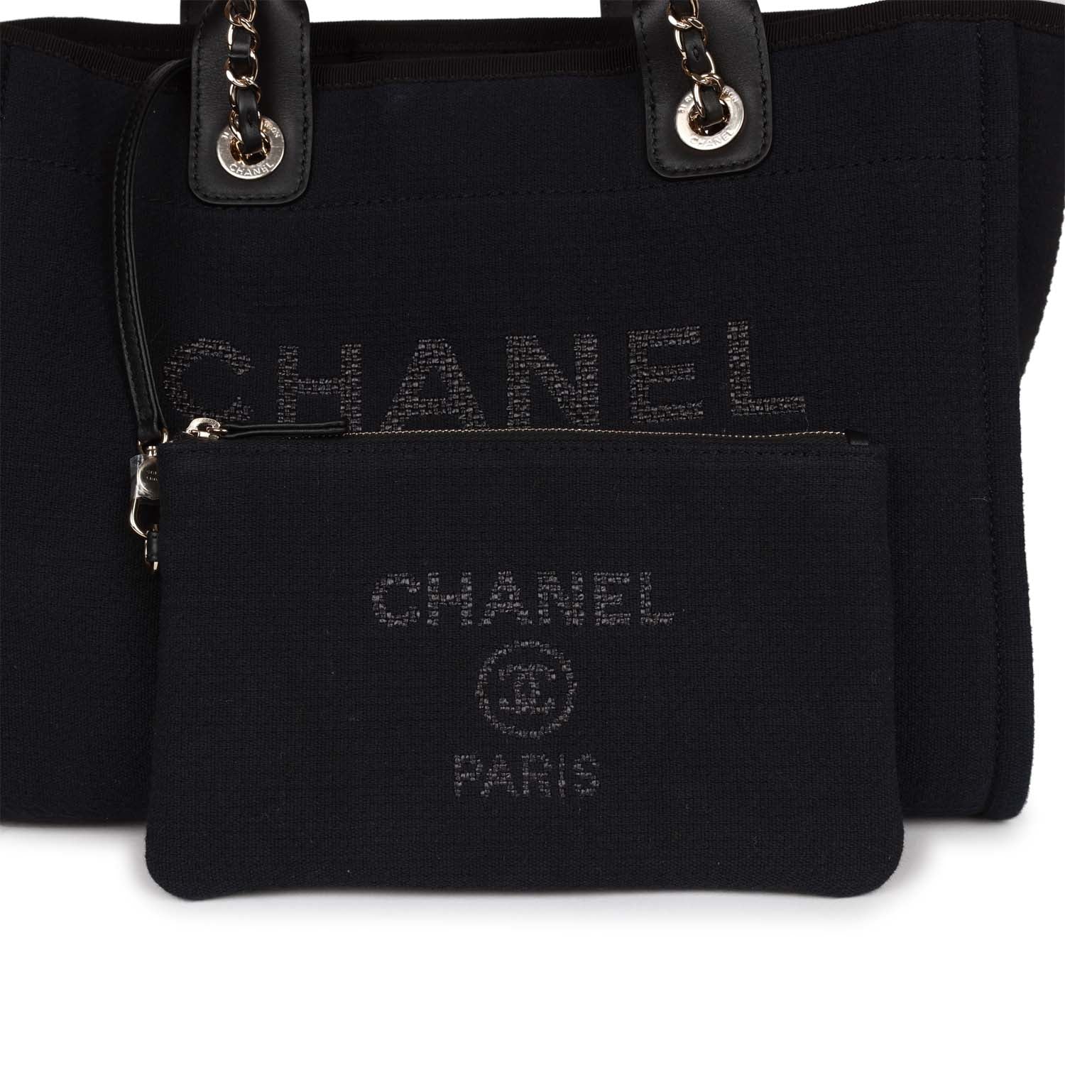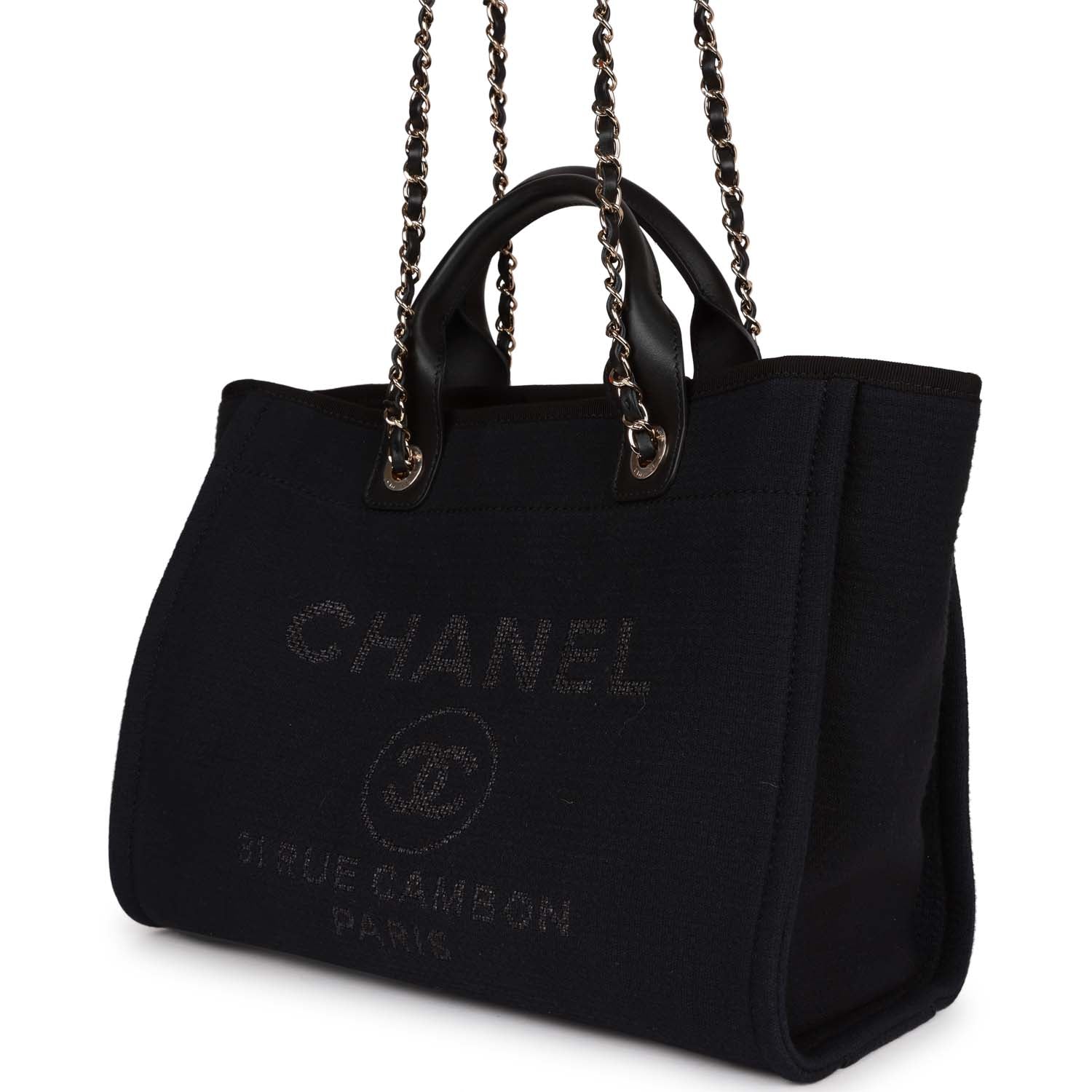 Chanel Small Deauville Shopping Bag Black Canvas and Calfskin Light Gold Hardware