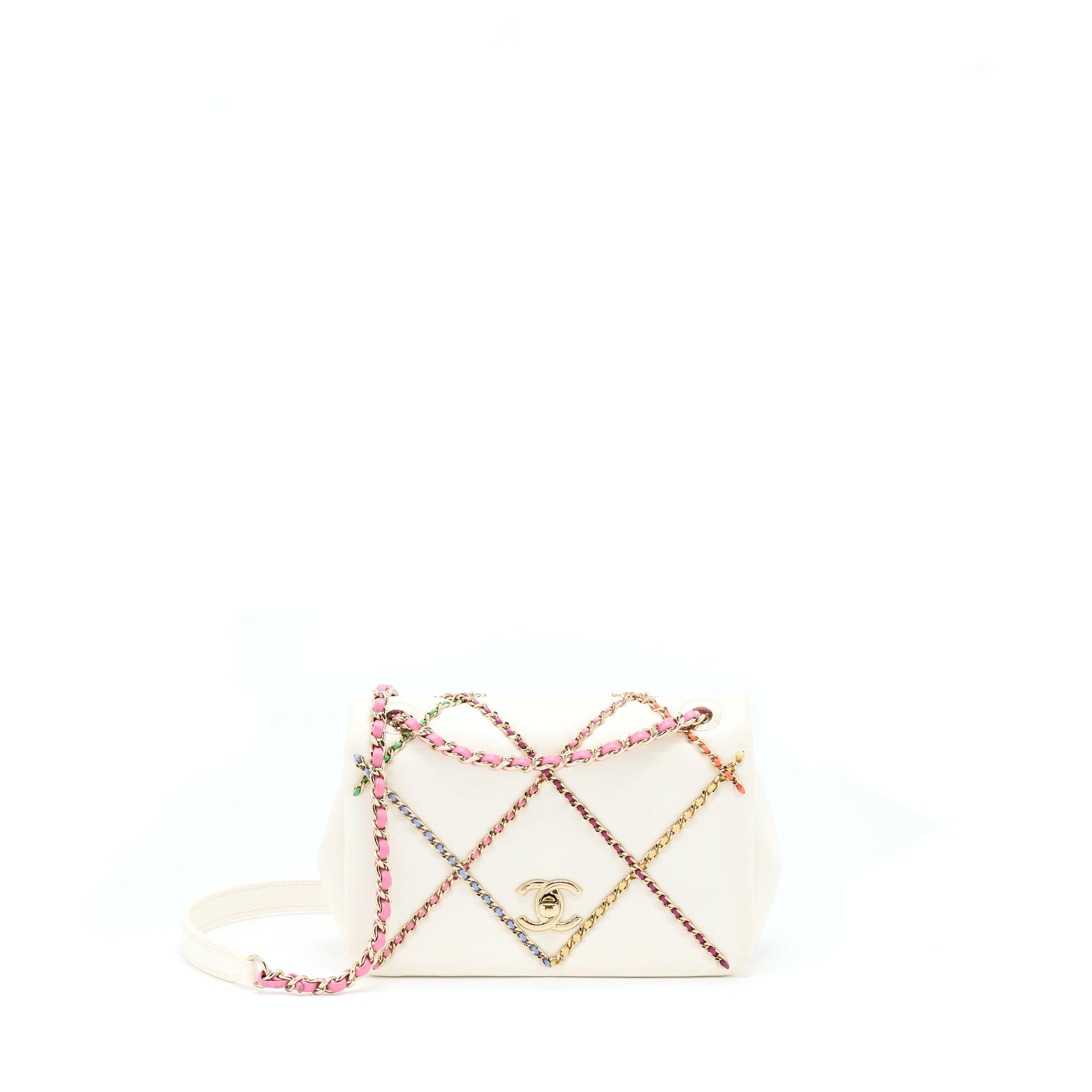 Chanel Small Flap Bag Lambskin White/Multicolor LGHW