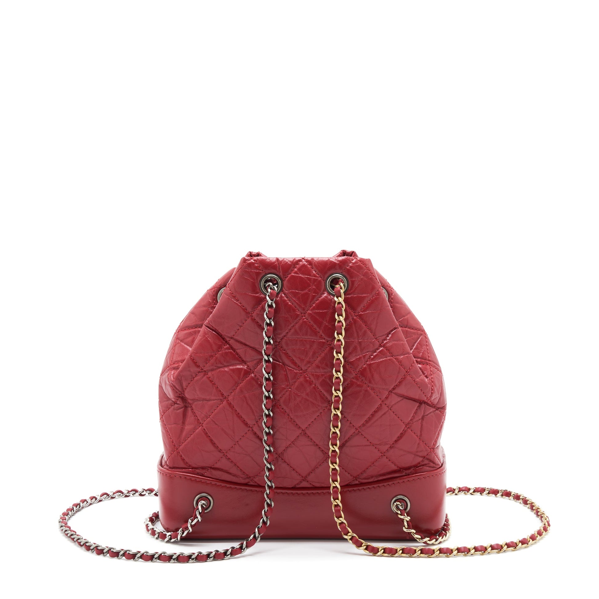 Chanel Small Gabrielle Backpack Aged Calfskin Red With Ruthenium Gold/Sliver Hardware