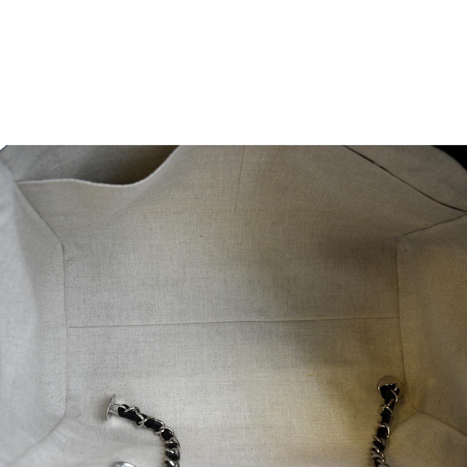 CHANEL Deauville Small Canvas Leather Tote Bag Dark Blue