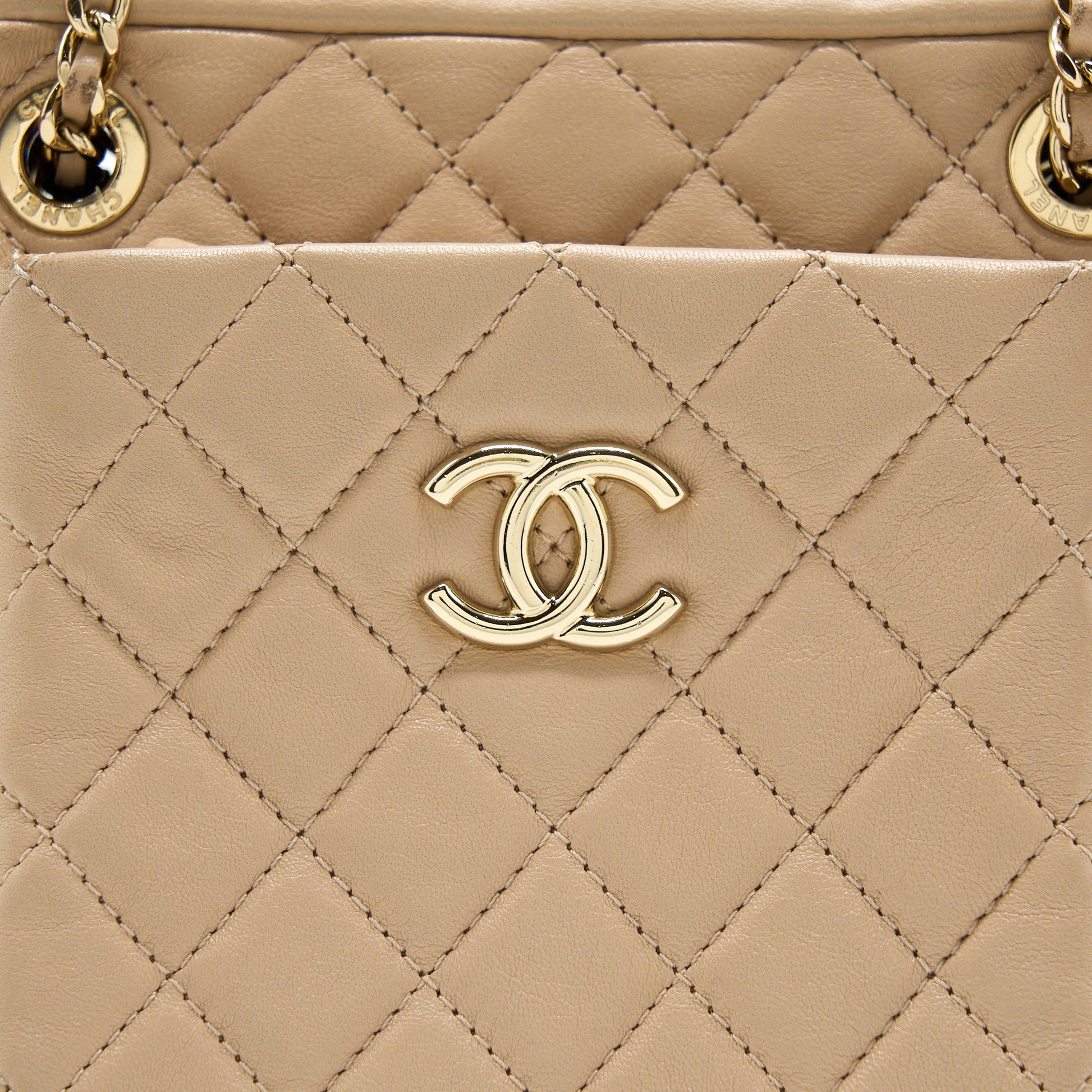 Chanel Small Vertical Camera Bag With Chain Lambskin Beige LGHW