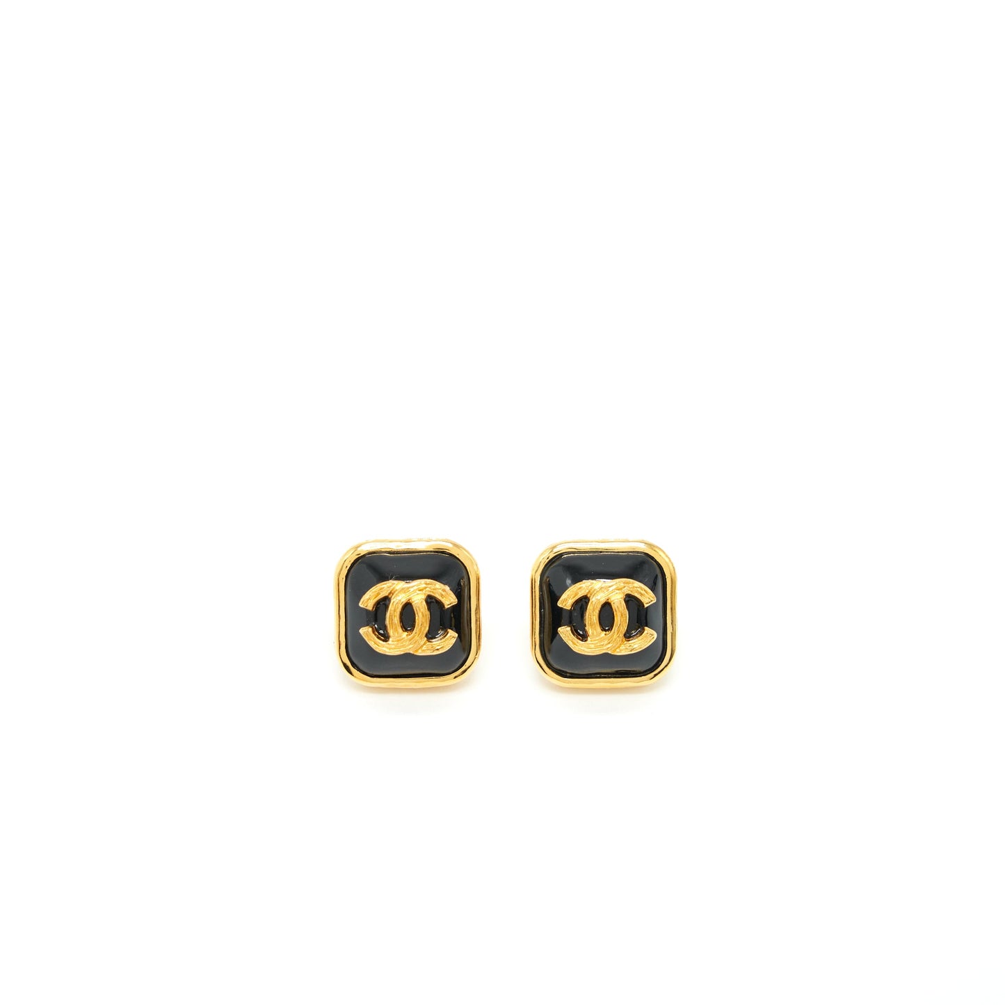 Chanel square with CC logo earrings black and Gold tone