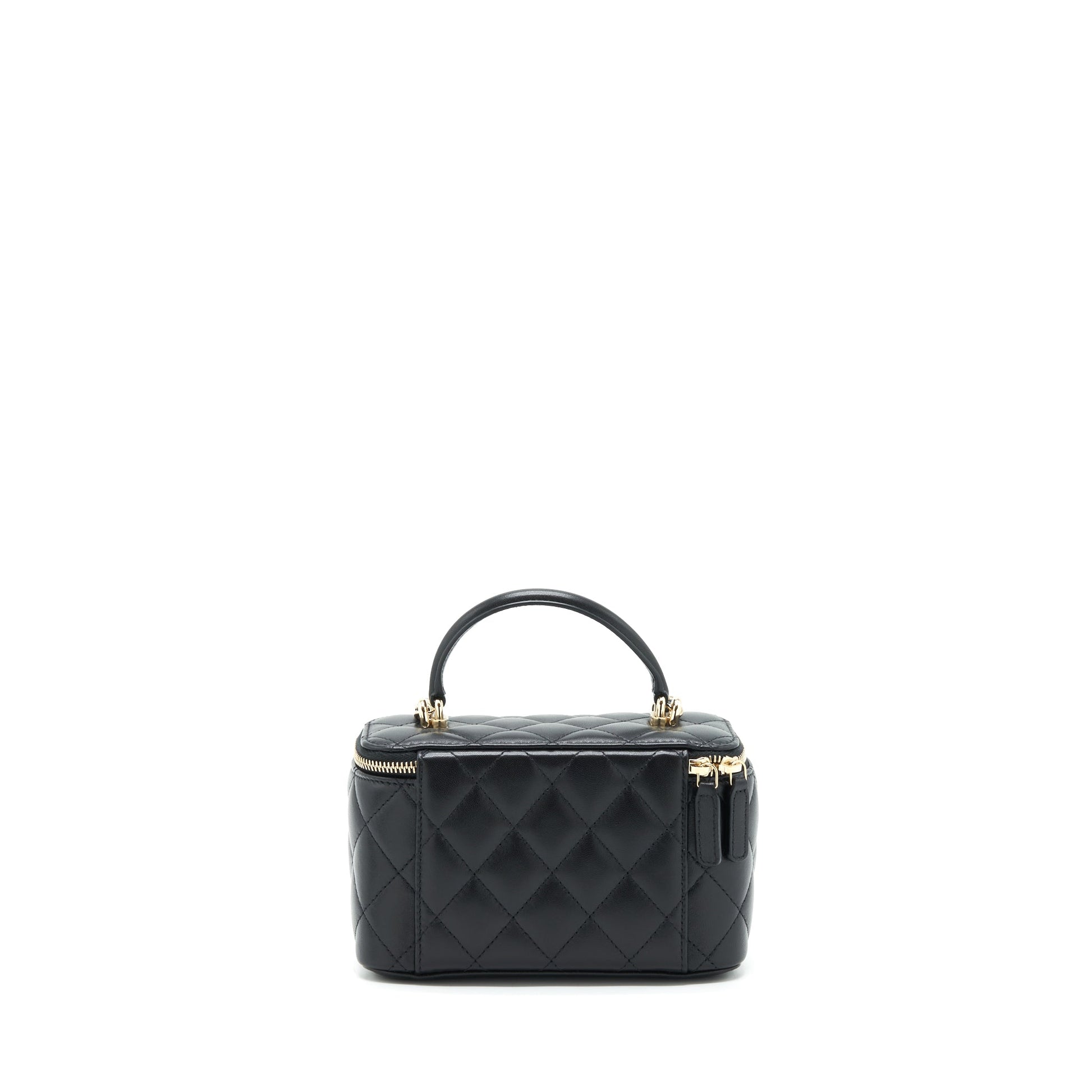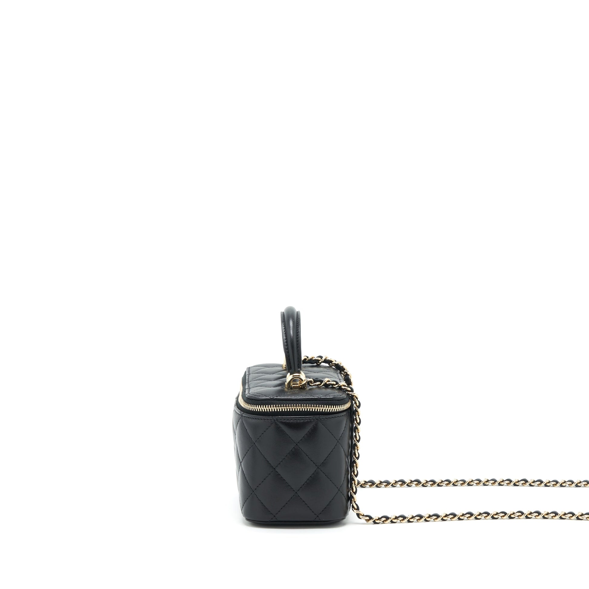 Chanel Top Handle Long Vanity With Chain Lambskin Black LGHW