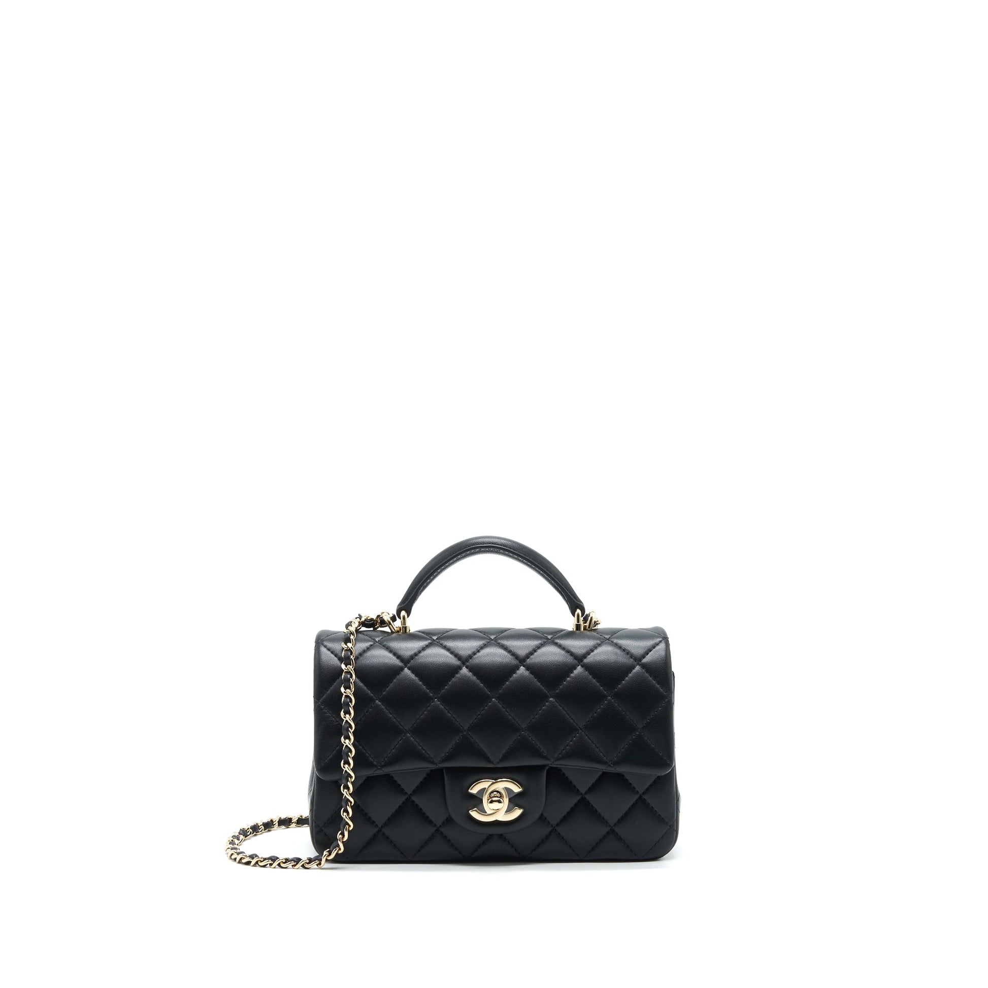 Chanel Top Handle Mini Rectangular Flap Bag Lambskin Black LGHW (Microchip)