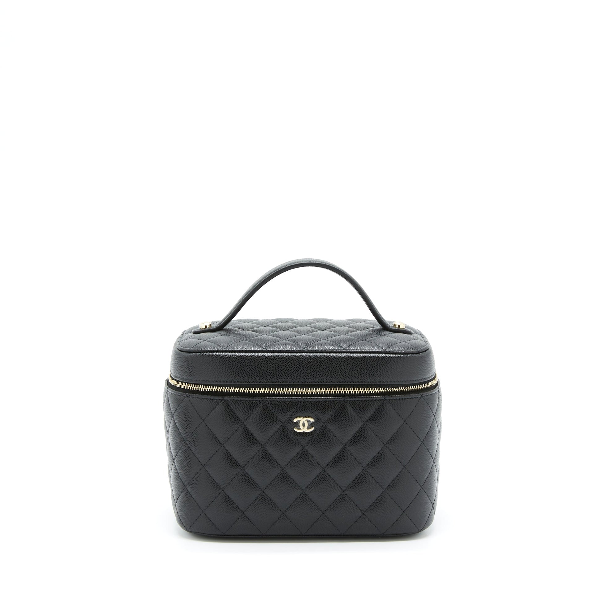Chanel top handle vanity case caviar black with LGHW