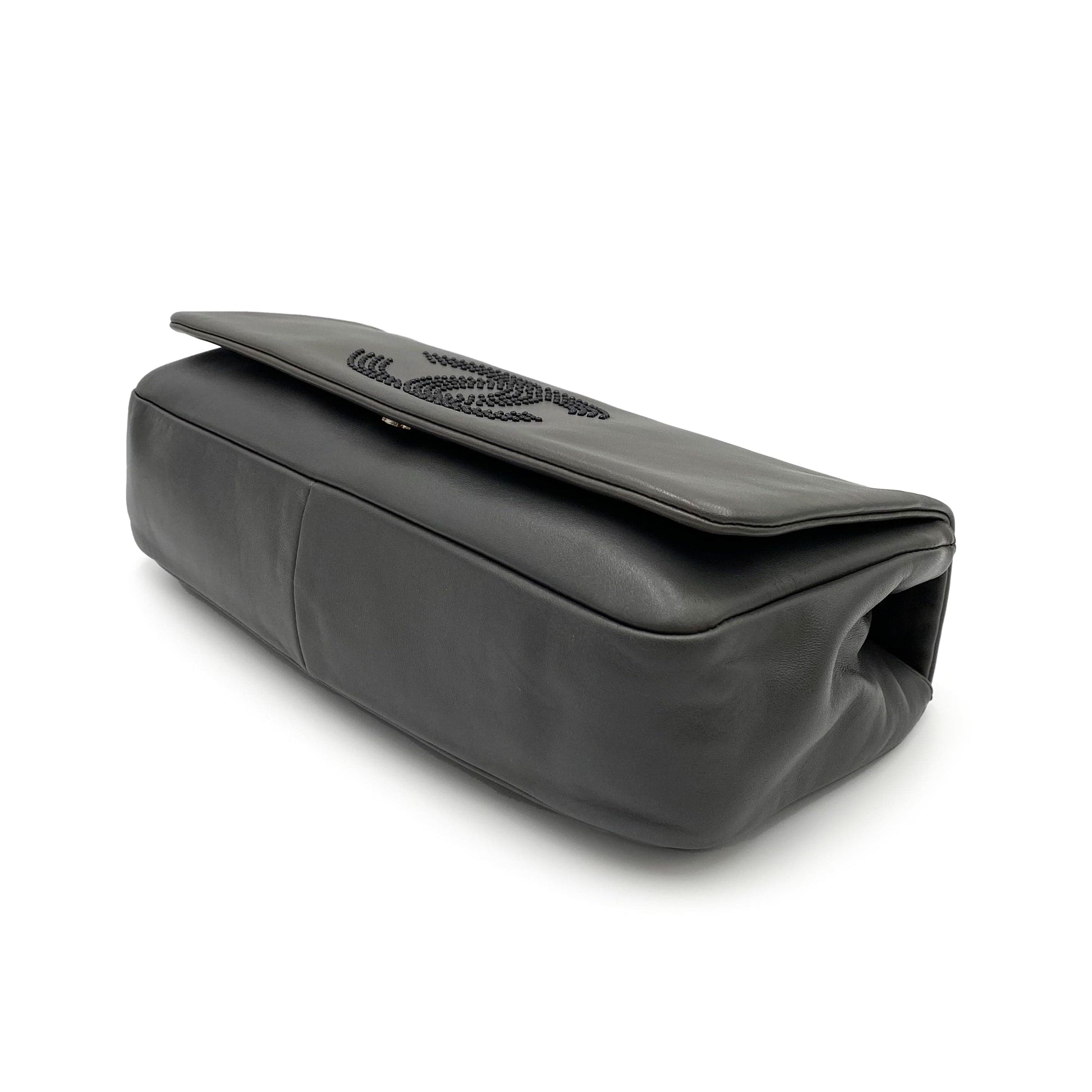 Chanel Vintage Cocomark Stud Grey Lambskin Black HW #12 90231635