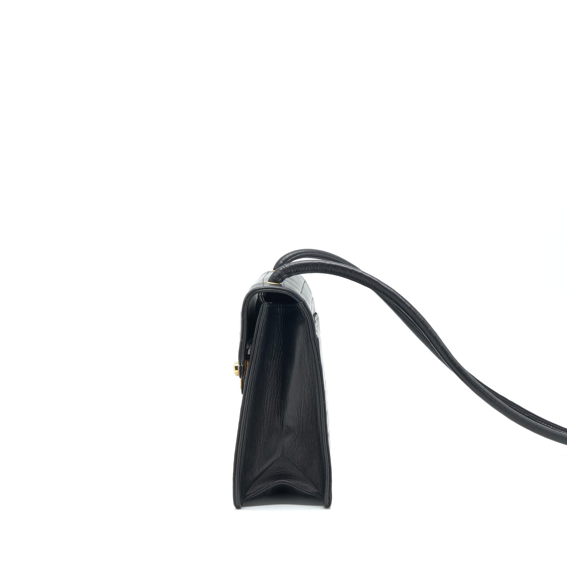 Chanel Vintage Kelly Flap Bag With Long Strap Black 24k GHW