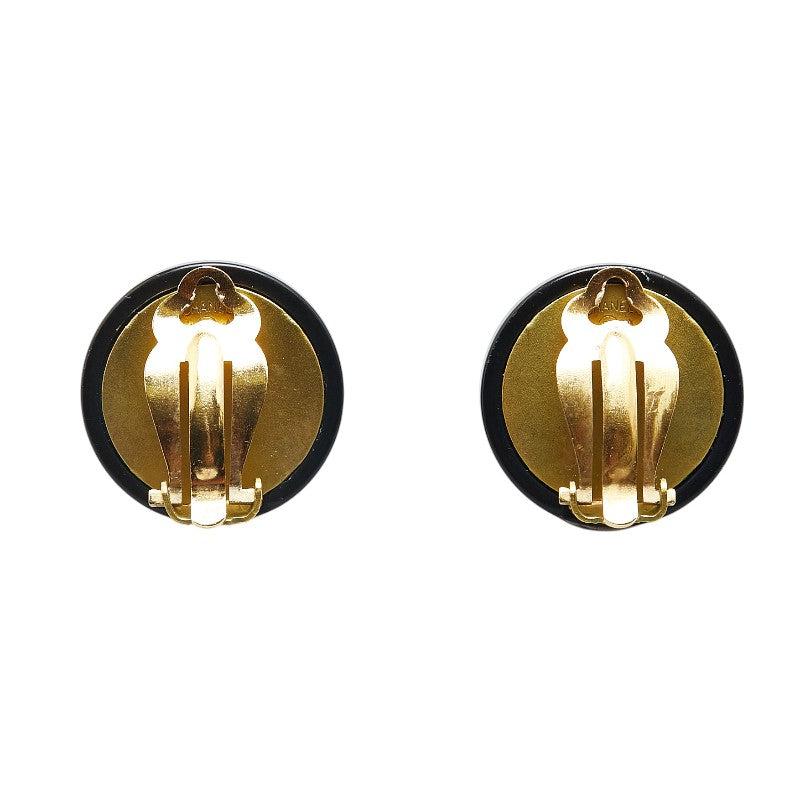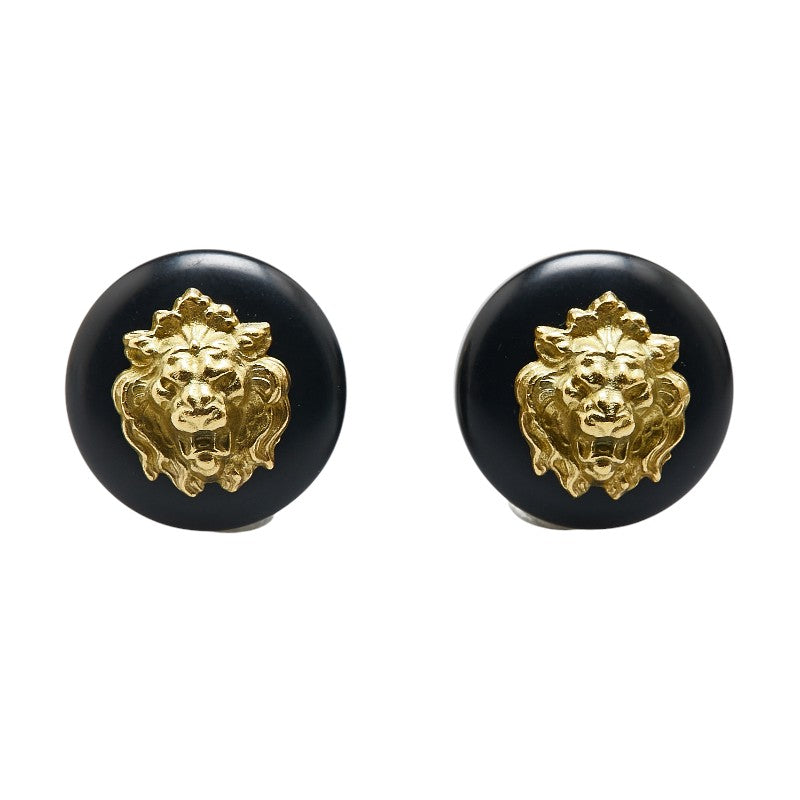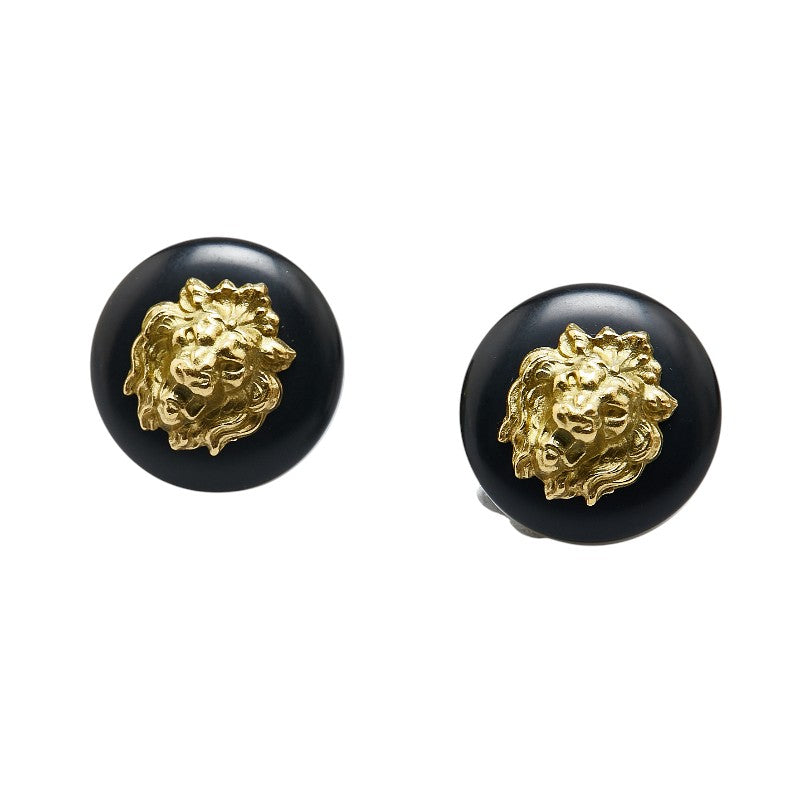 Item name : Chanel Vintage Lion Motif Earrings Gold Black