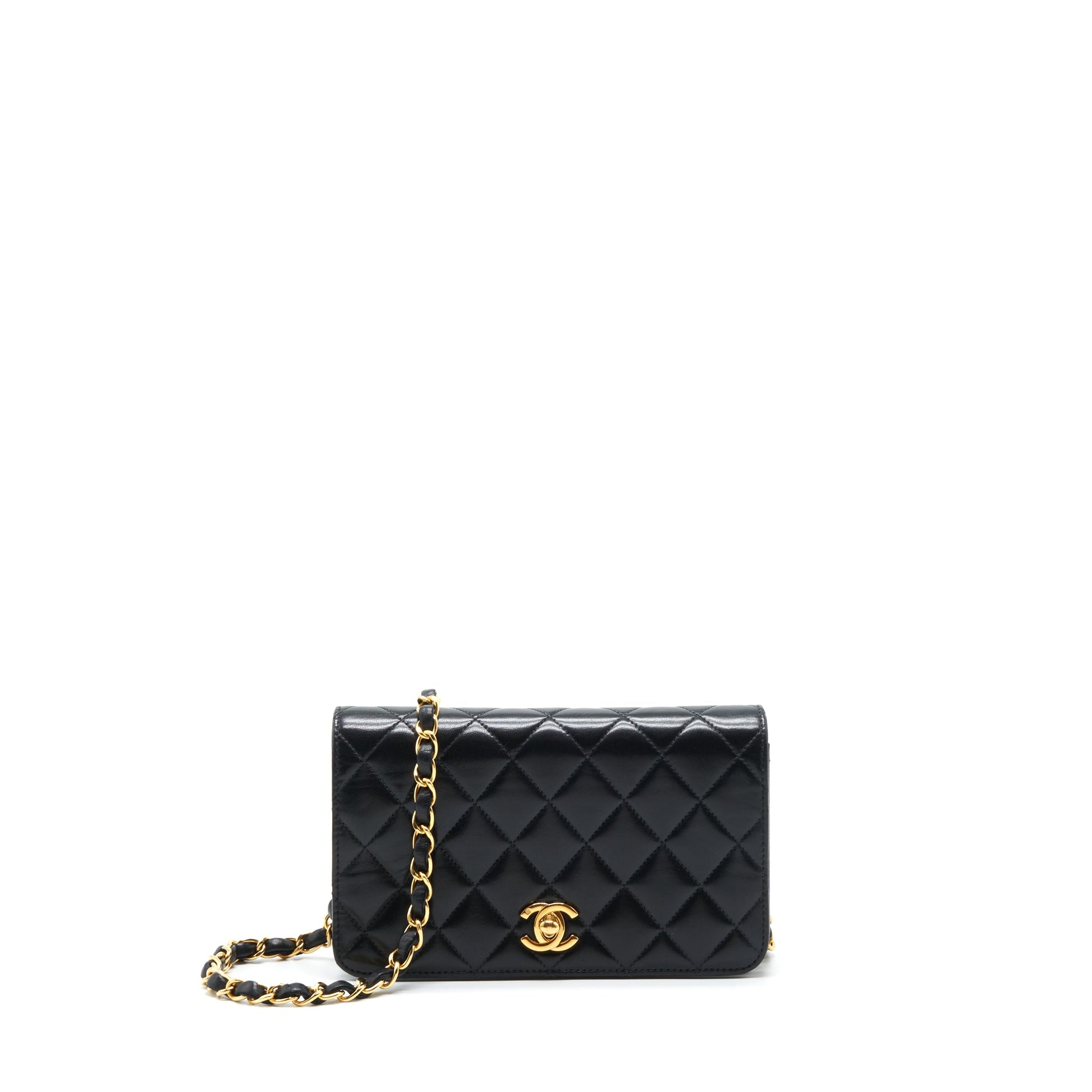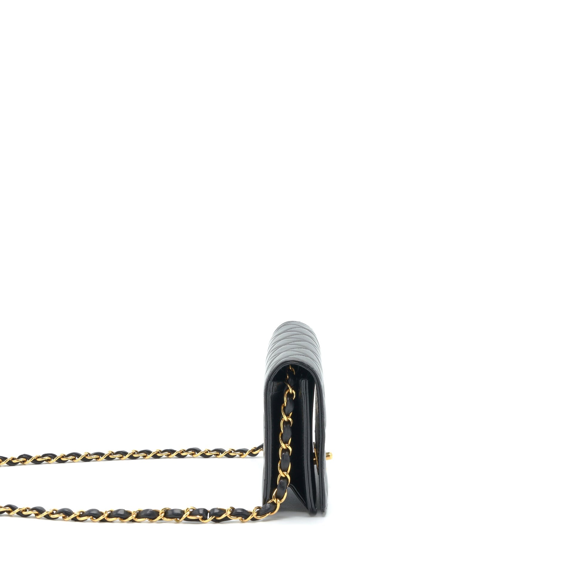 Chanel Vintage Quilted Mini Flap Bag With Chain Lambskin Black GHW
