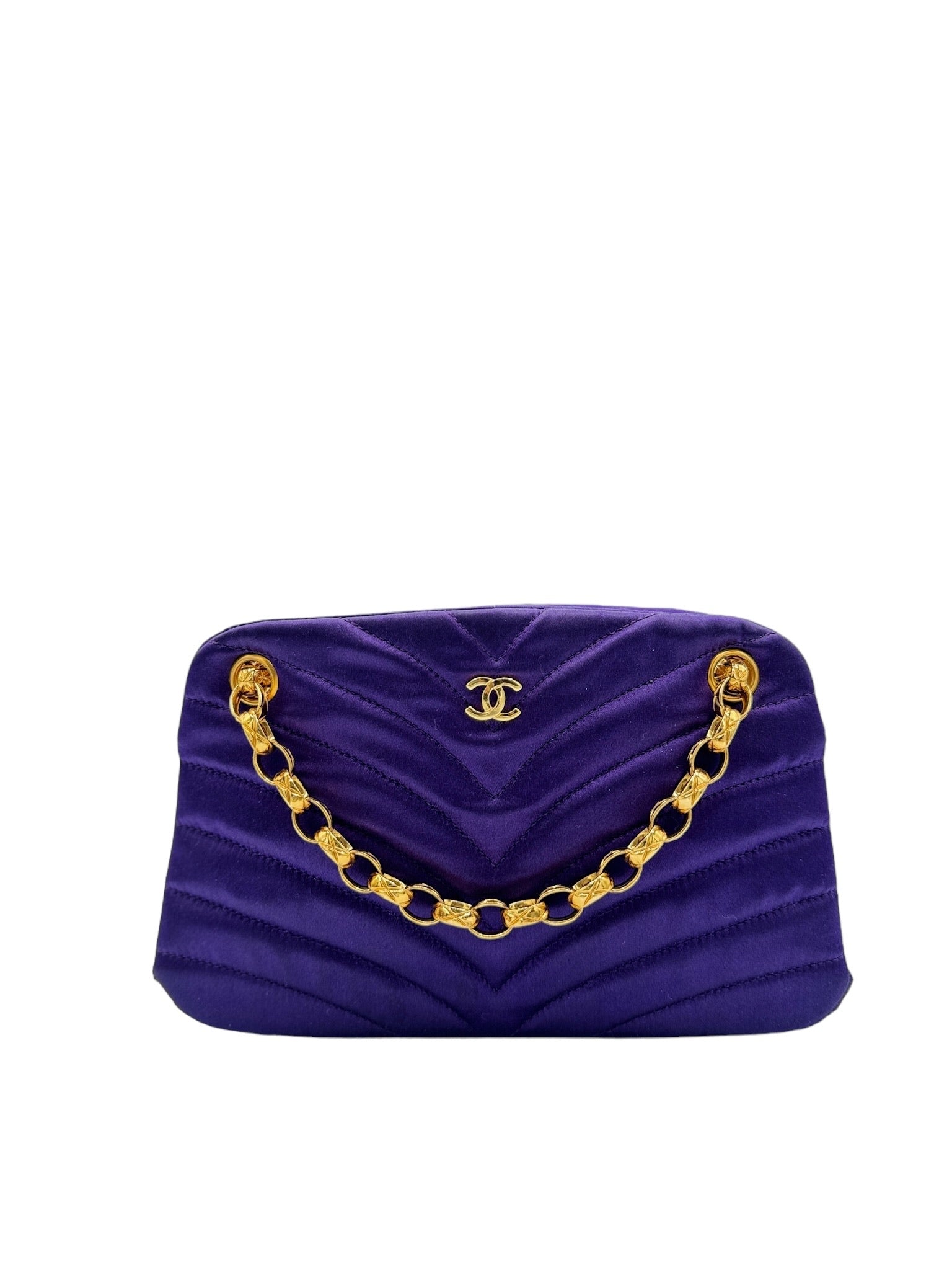 CHANEL - Vintage Stitch Purple Satin Shoulder Bag