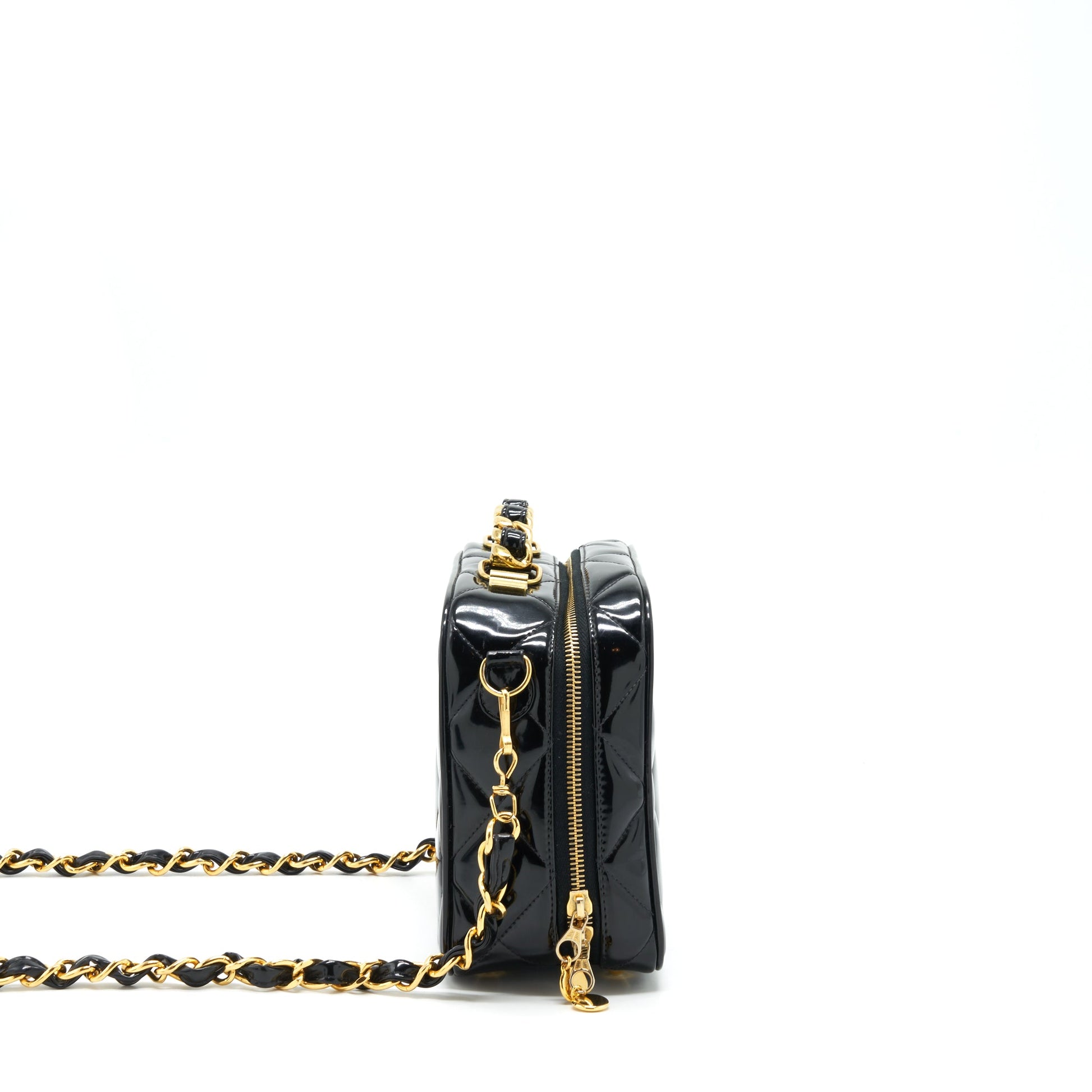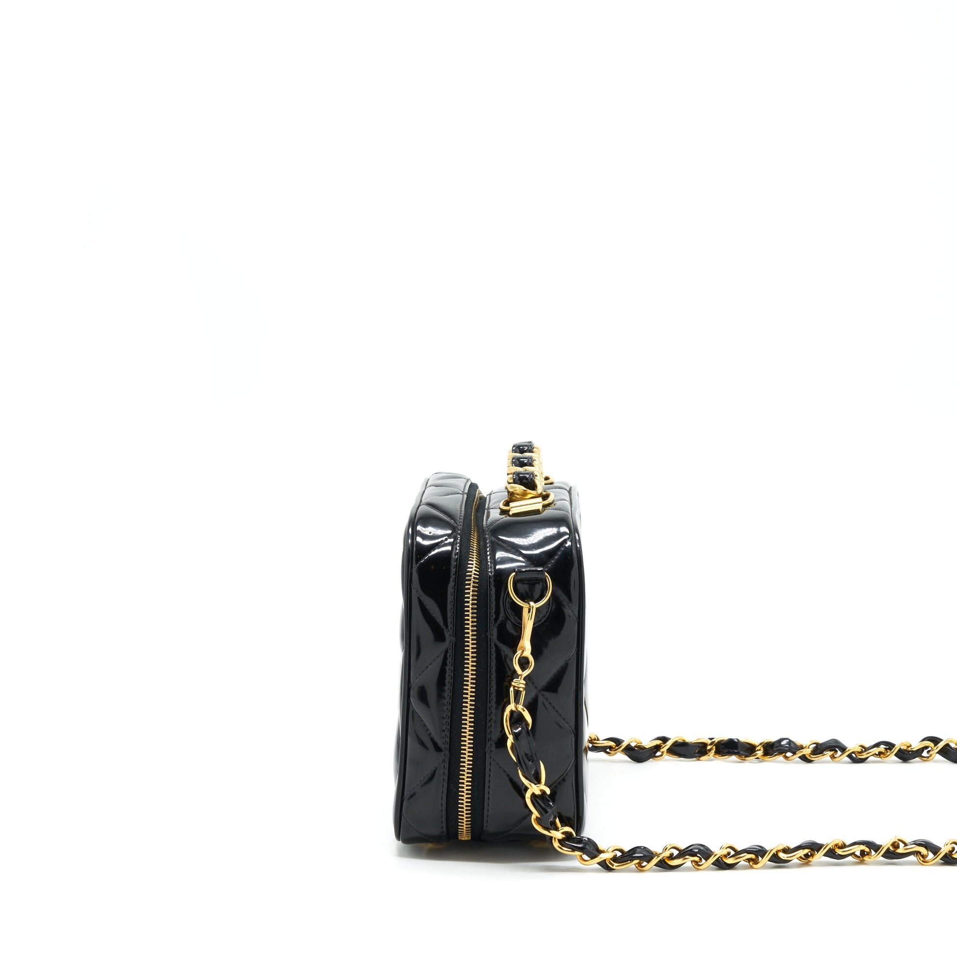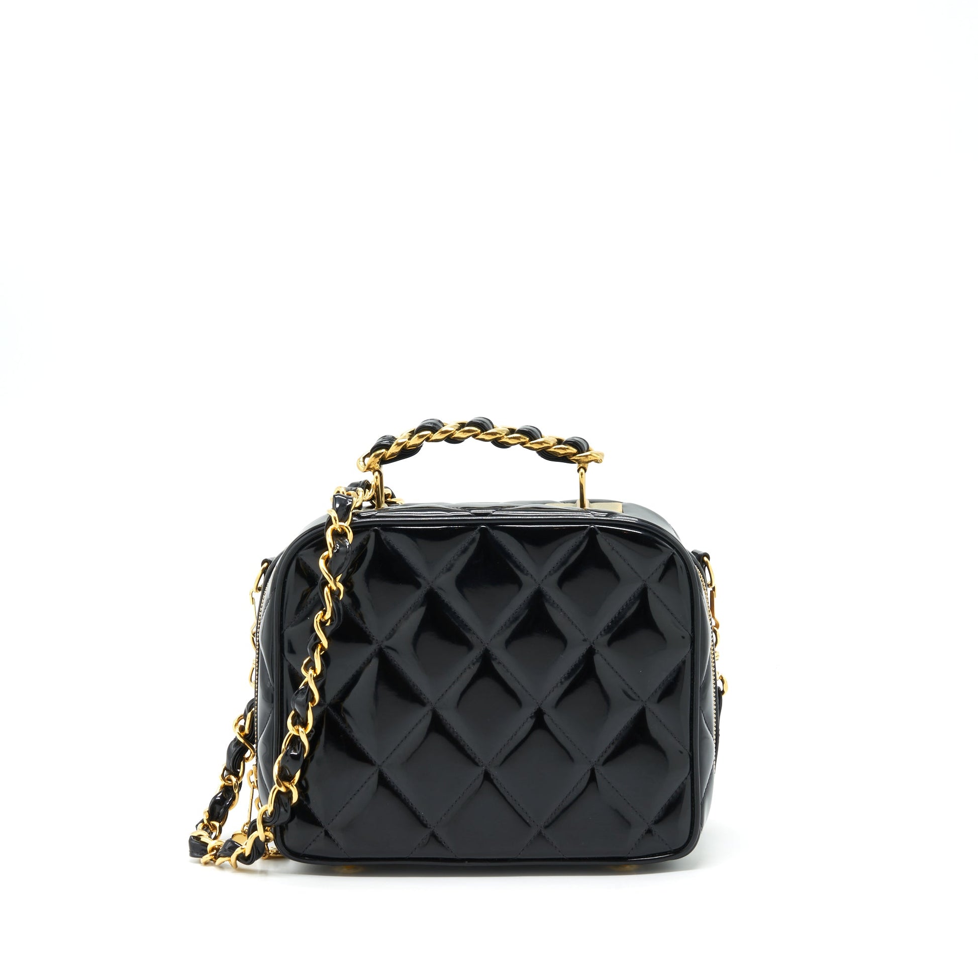 Chanel Vintage Top Handle Vanity Case Patent Black GHW