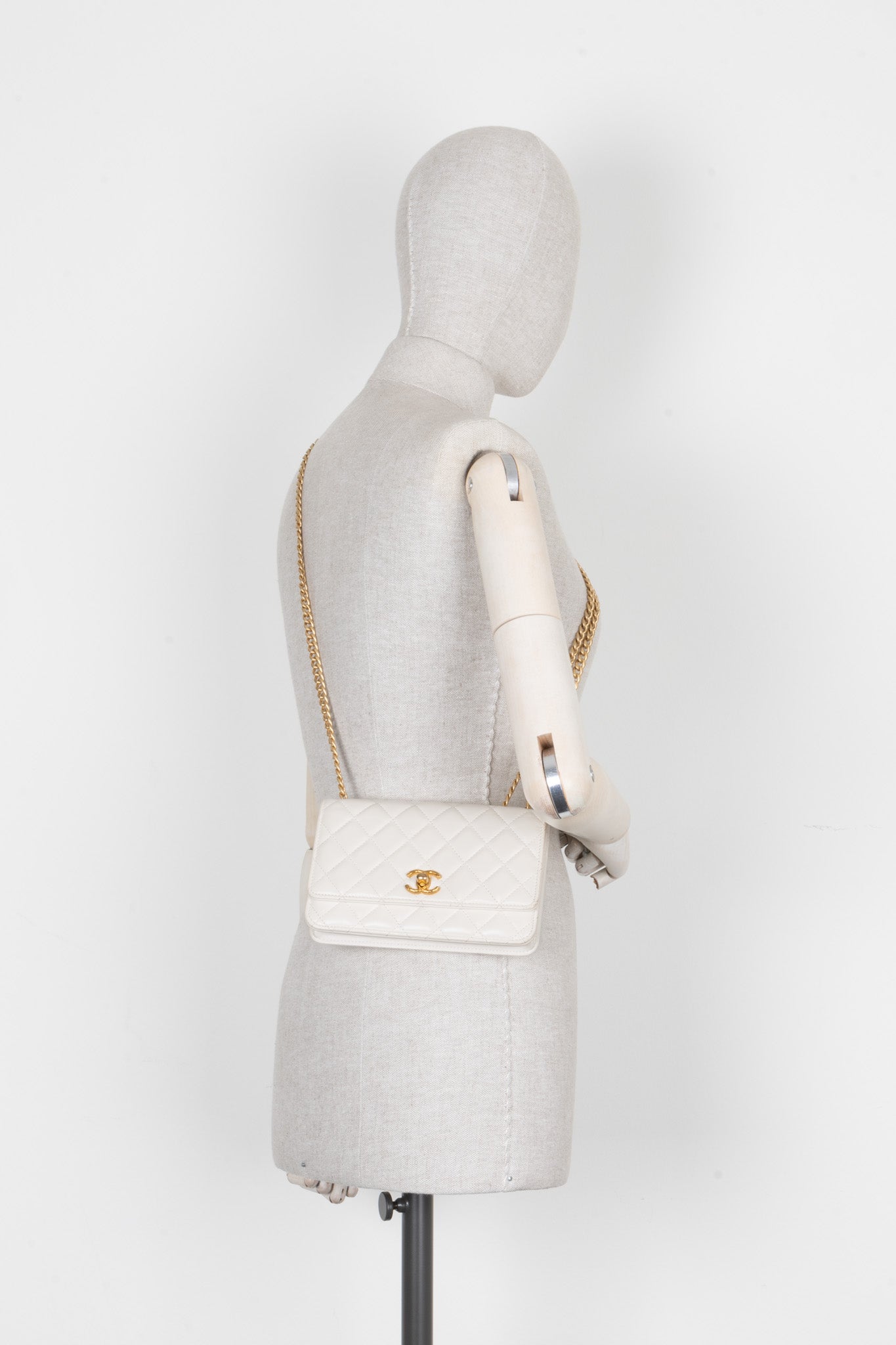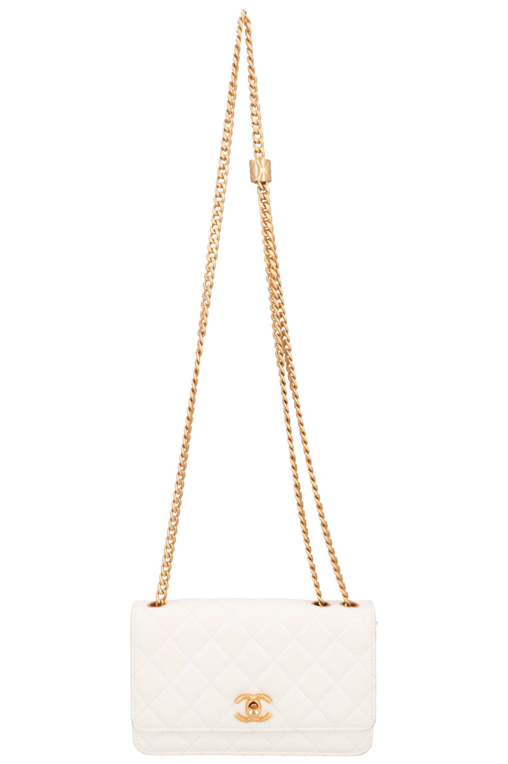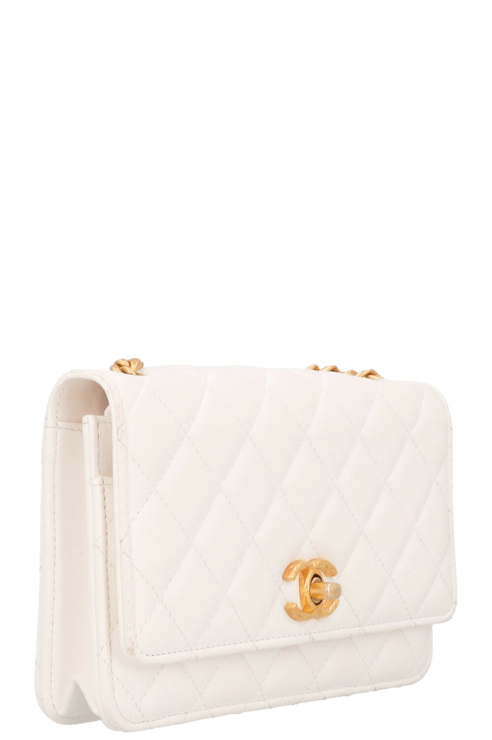 Die Chanel Wallet on Chain (WOC) in Weiss ist ein Meisterwerk der Eleganz und Funktionalität. Die klassische CC-Verschlussklappe und der einzigartige, verstellbare Kettenschulterriemen verleihen ihr den unverkennbaren Chanel-Charme.