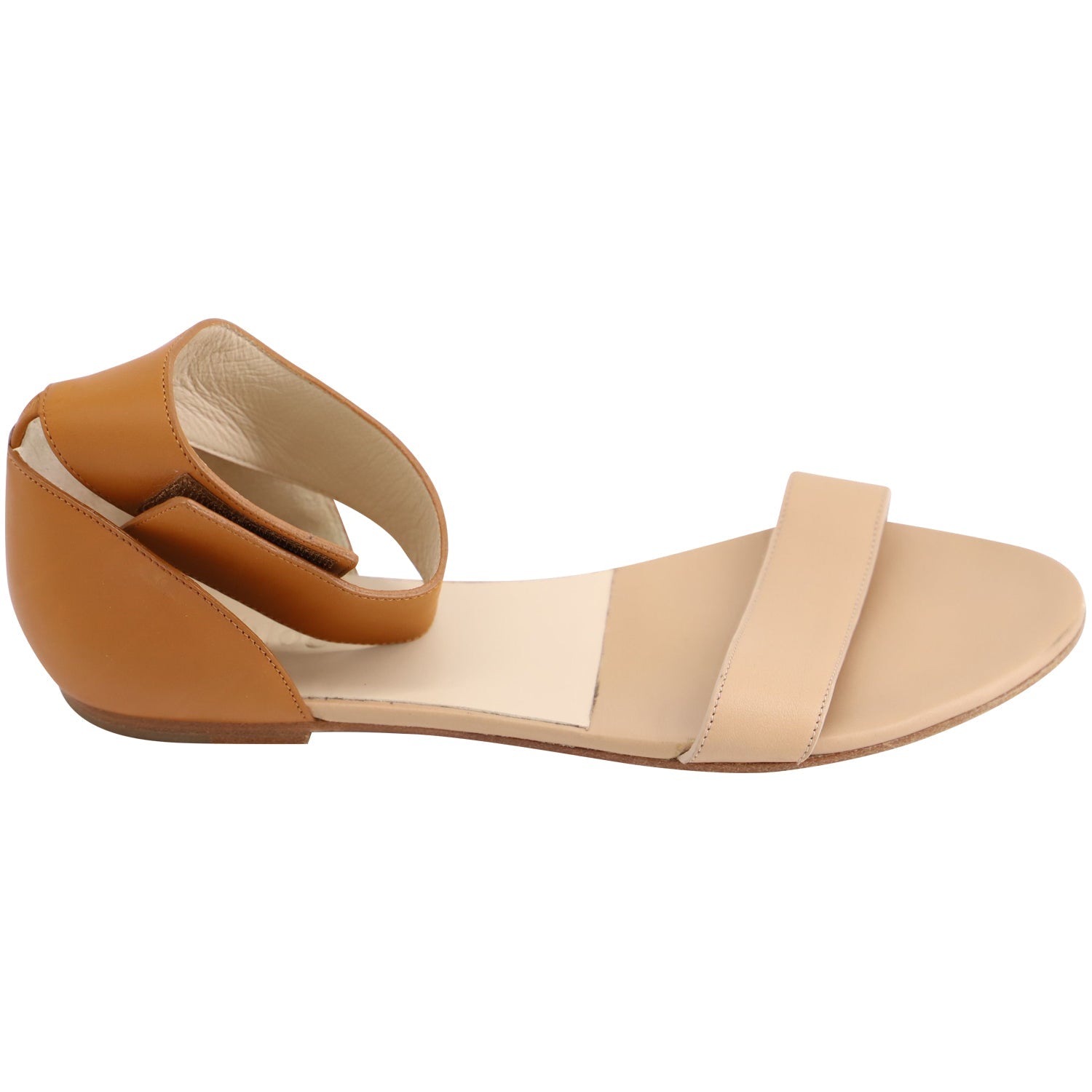 Chloe Bicolor Ankle Strap Flat Sandals in Nude Leather