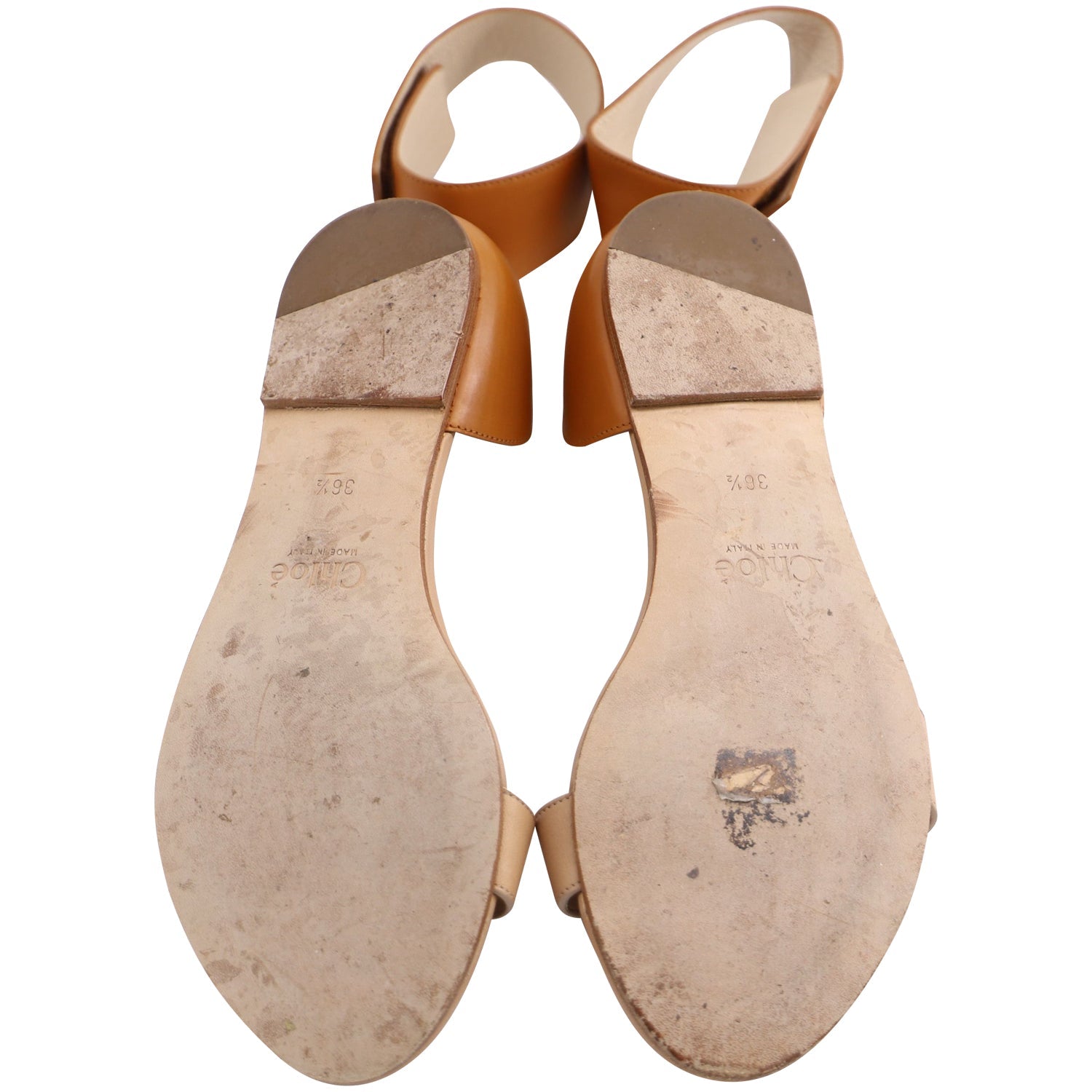 These sandals from Chloe are a good match for your casual ensembles. They are made from leather and come with open toes, straps, and an ankle wrap detail. Comfortable and classy, these sandals will amp up your trend factor in no time and they can be styled with various outfits in your wardrobe.Chloe Bicolor Ankle Strap Flat Sandals in Nude LeatherCondition - Very good, with dust bag Sign of wear - Fair sign of wear on insoles, midsoles and solesSize - 36.5Material - LeatherSKU - 140759