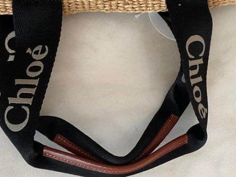 - Material: Beige/Black Fiber with Chloe Logo Ribbon Details and Leather Trim