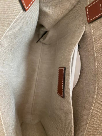 - Material: Beige Canvas with Brown Calfskin Strips Trim