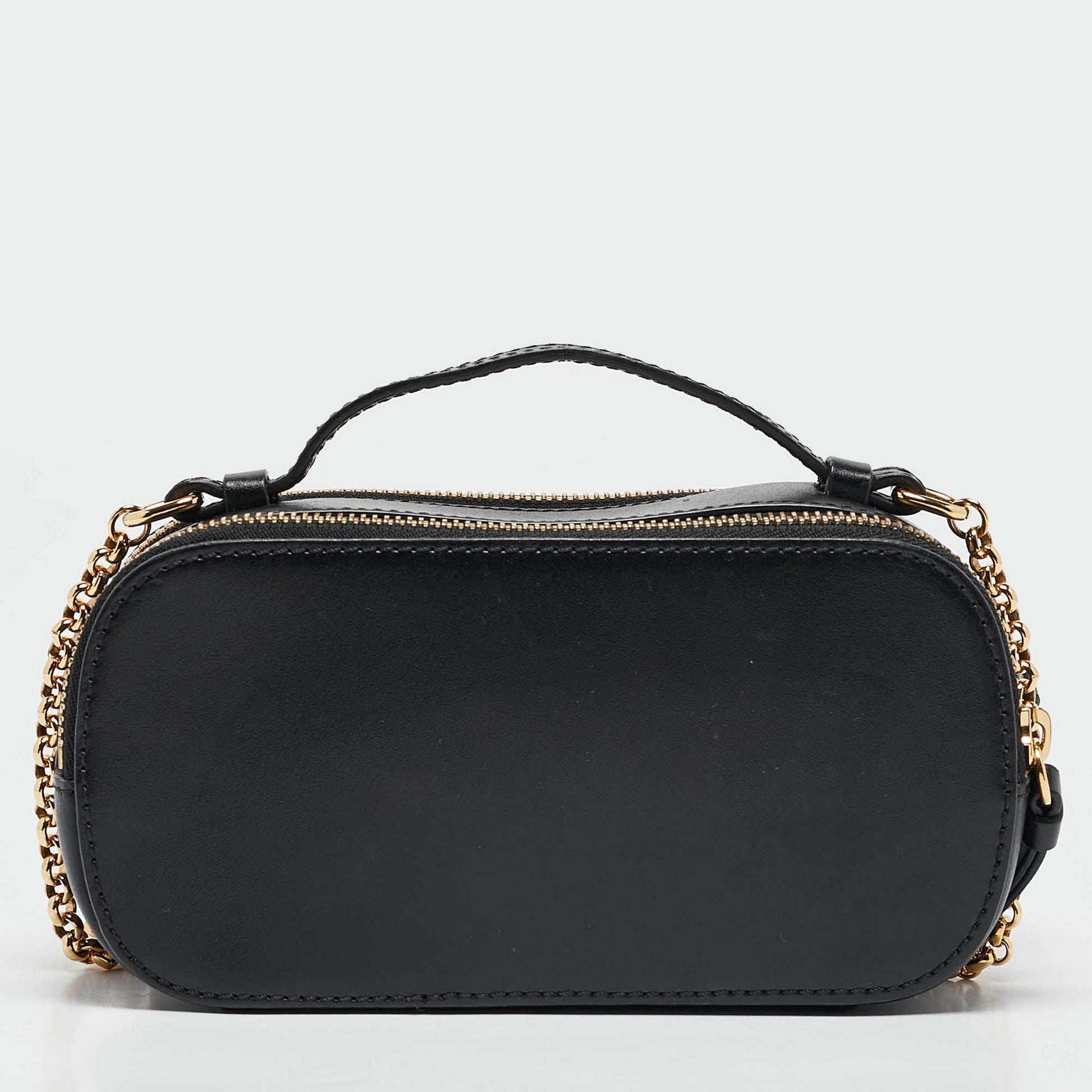 The Chloé vanity bag redefines elegance with its structured design and minimalist charm. Crafted from luxurious black leather it features the signature logo in gold tone hardware adding a subtle yet iconic touch. Its compact box like shape is perfect for carrying your essentials while the shoulder strap offers both versatility and comfort.