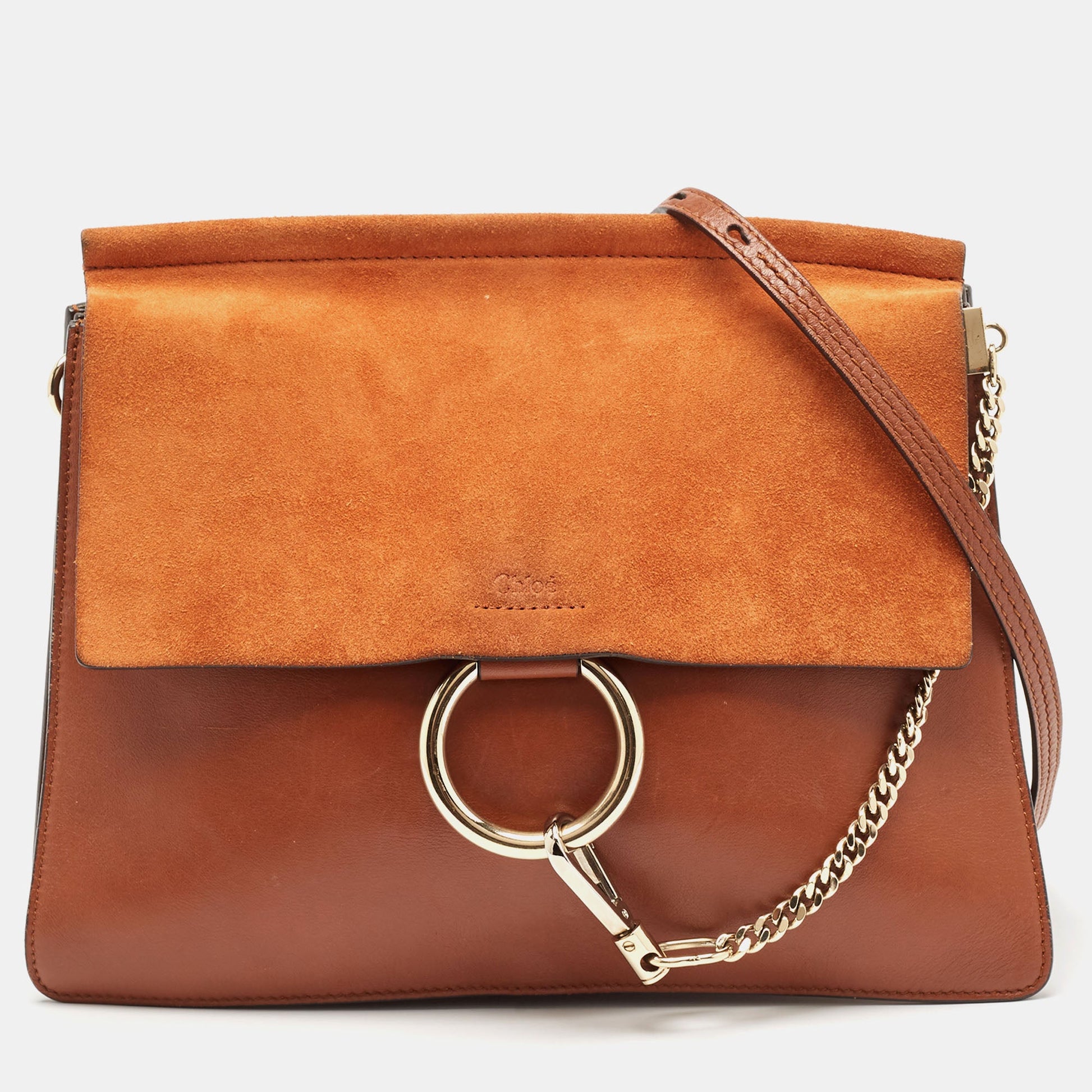 Chloe Brown Leather And Suede Medium Faye Shoulder Bag