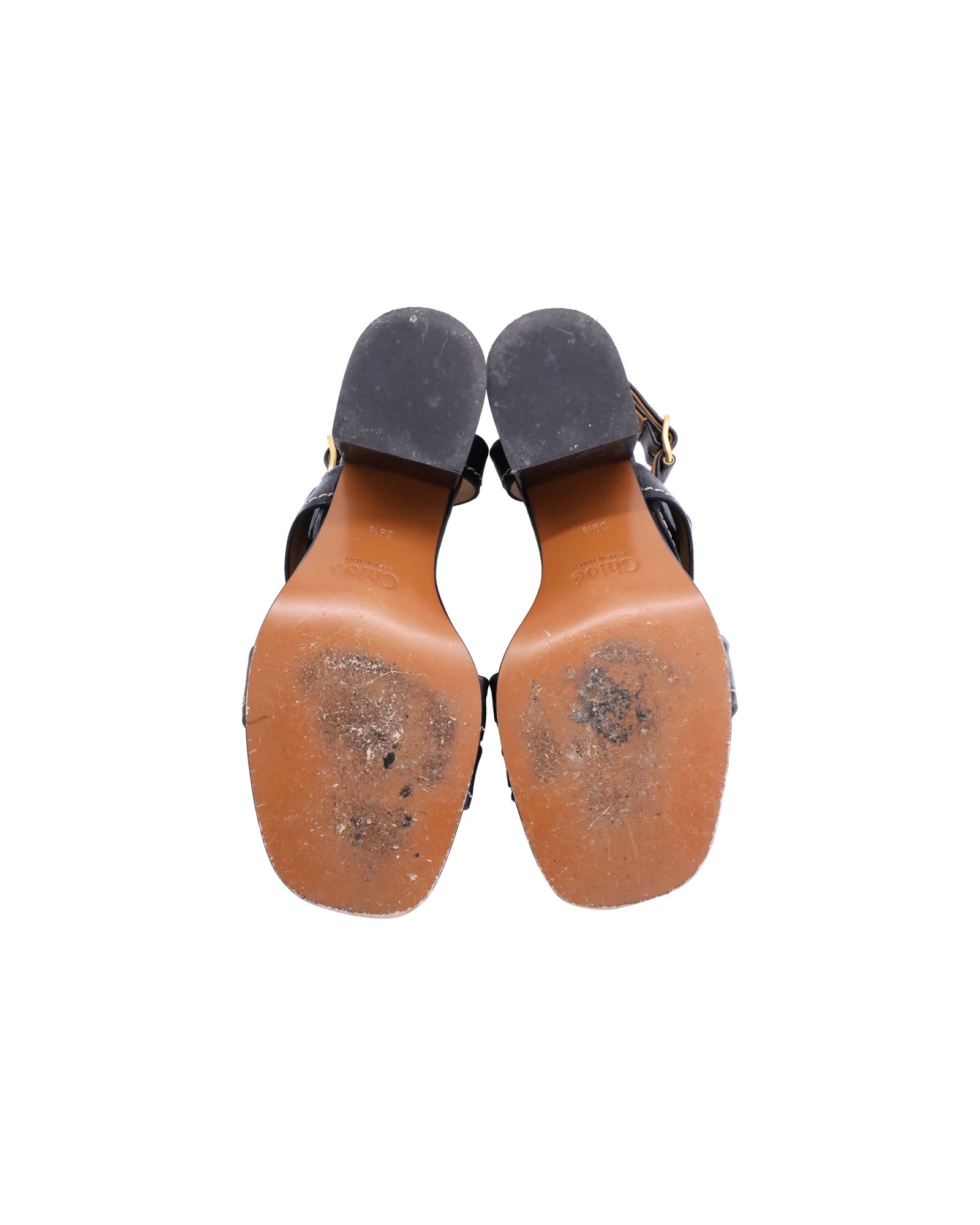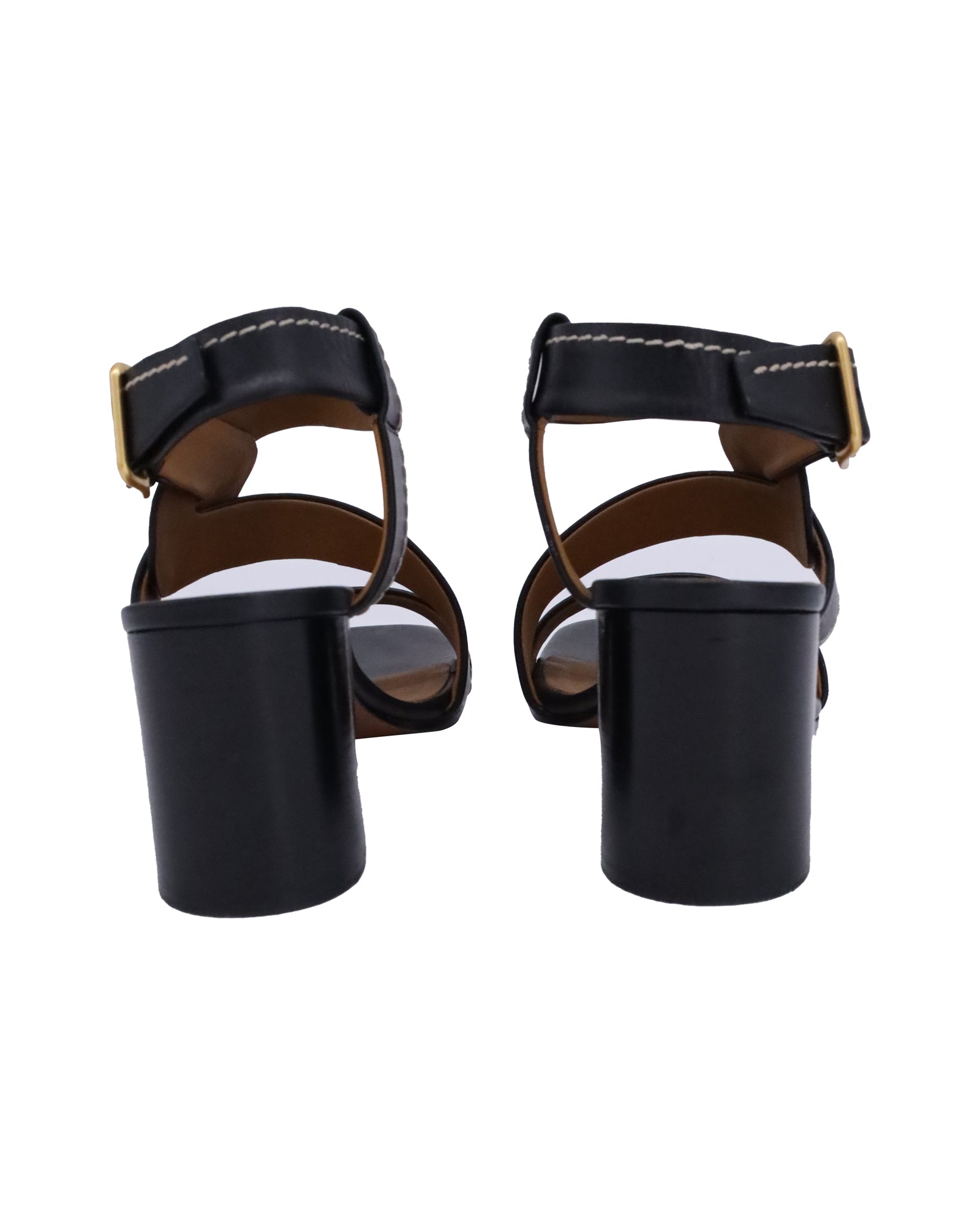 Chloe Candice Topstitch Block-heel Sandals in Black Leather