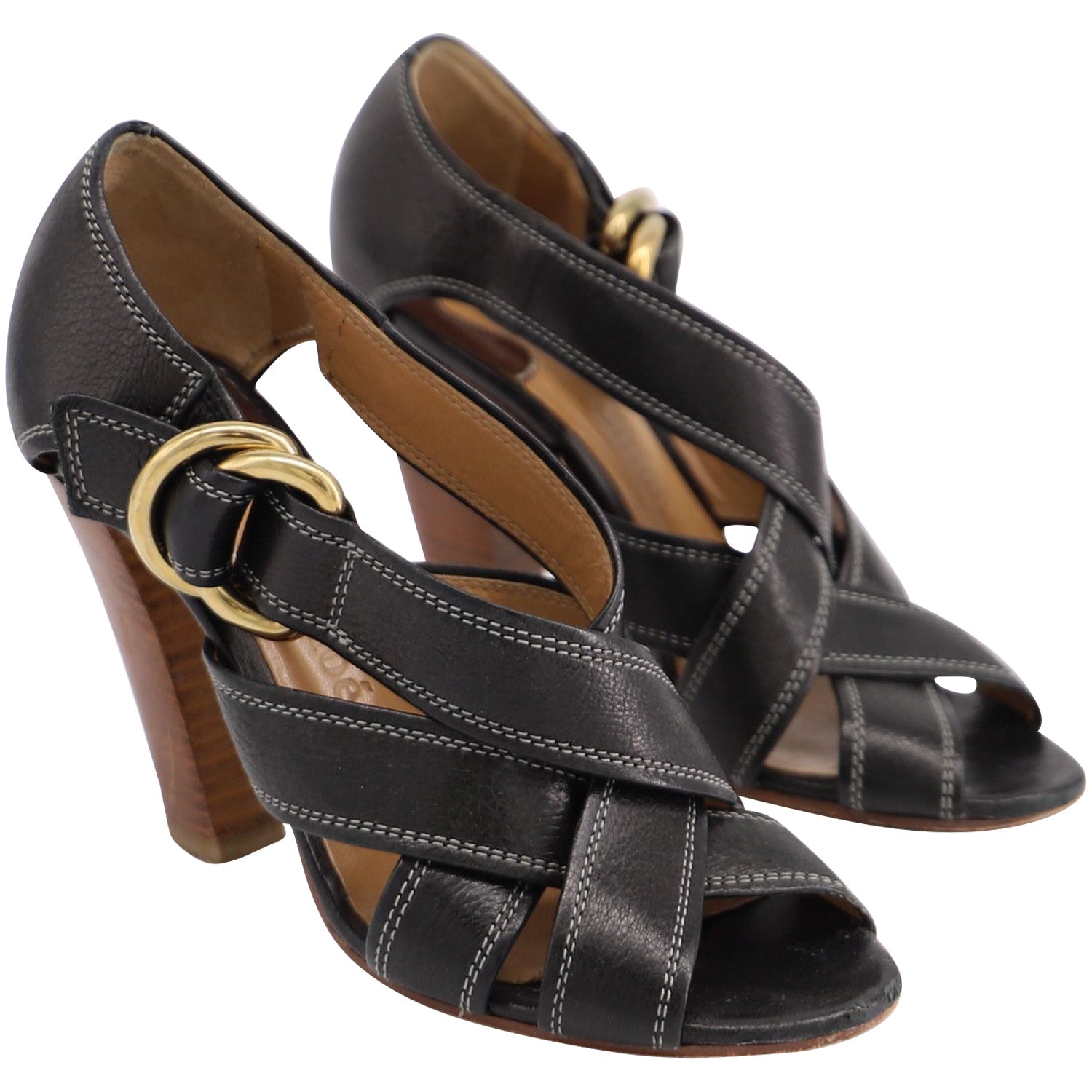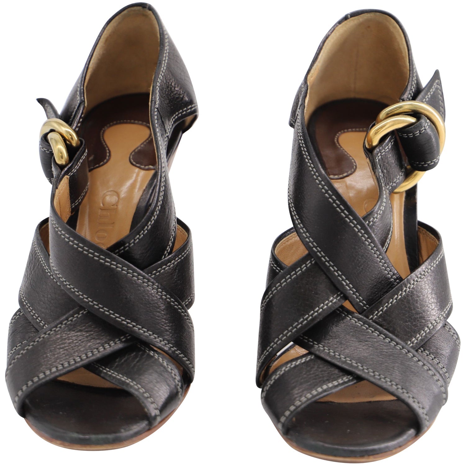 These Chloe sandals are a great pair of heels to take you from day to night! These sandals feature black strappy leather uppers, a side buckle detail, and stacked heels. Leather lined upper and a padded insole makes for a comfortable fit perfect for any occasion, casual or fancy!Chloe Crossover Strappy Heels in Black LeatherCondition - very good, comes with shoe boxSign of wear - scratch marks, scuff, and dirt on soles and heels, minimal leather creasingMaterial - LeatherColor - BlackSize - 35.5/EU35.5/US5.5/UK2.5 / 23.1cmSKU - 152553
