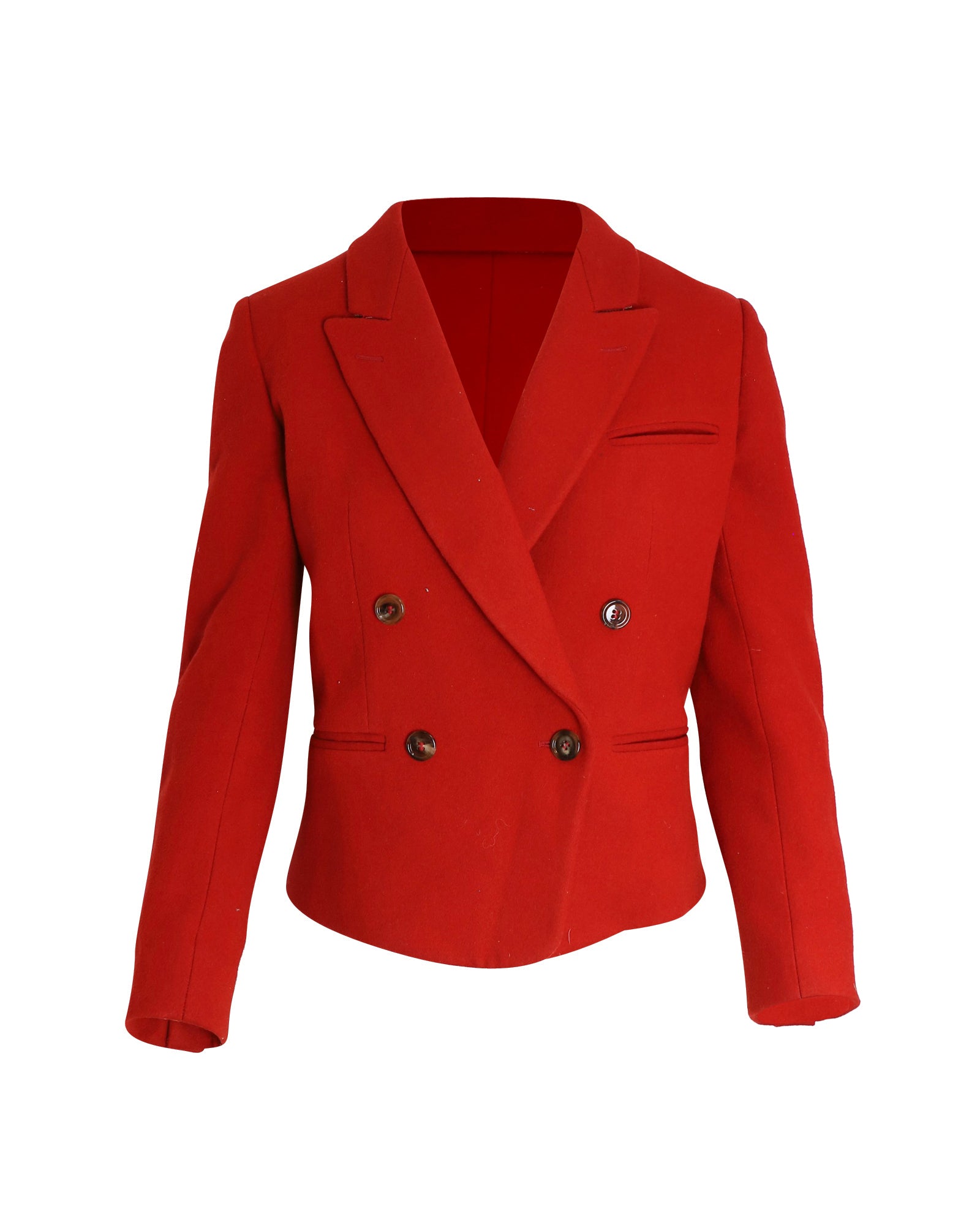 Achieve a classic look with this Chloe Double-Breasted Blazer. This piece is cut from luxurious virgin wool in a gorgeous red hue. It features a peaked lapel collar, double-breasted construction, button fastening, and three welt pockets. Subtly updated with its cropped length, this blazer has timeless appeal.Chloe Double-Breasted Blazer in Red Virgin WoolCondition - ExcellentSign of wear - No visible defectsMaterial - Virgin woolColor - RedSize - FR36SKU - 293035