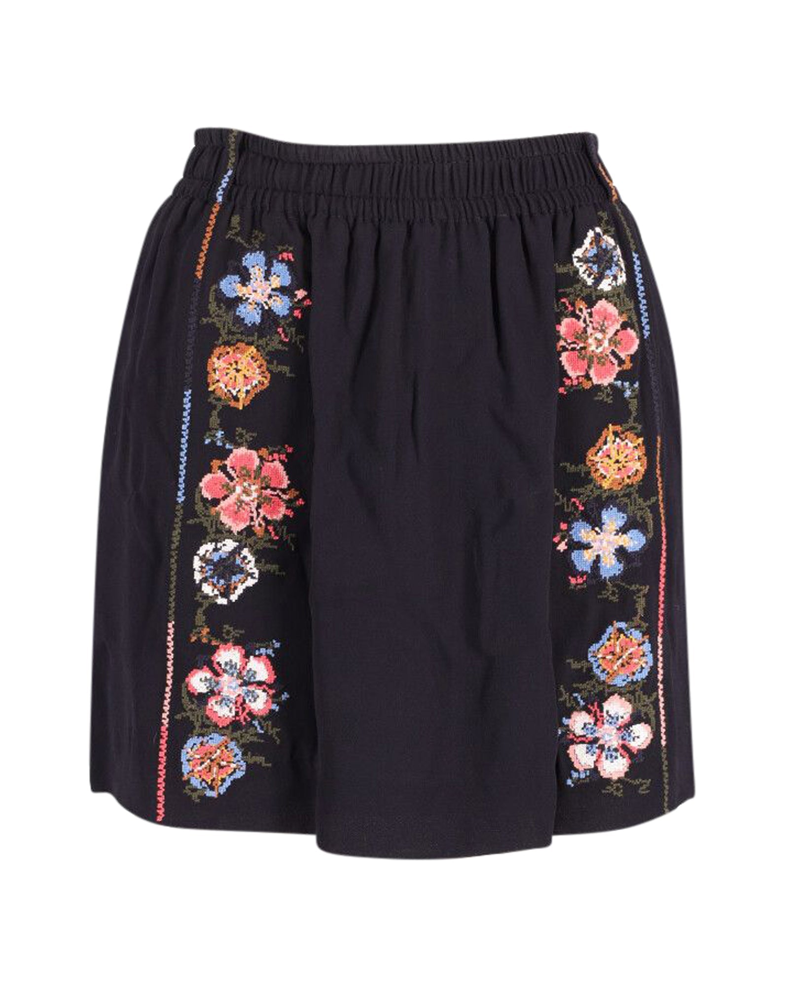 Chic and charming, this skirt from Chloe brings out your poised feminine style effortlessly. It is tailored using black crepe fabric which is augmented with floral embroideries and is provided with an elastic waistband. This skirt is surely a must-have piece!Chloe Embroidered Mini Skirt in Black CrepeCondition - ExcellentSign of wear - very small, faint stain at the backMaterial - CrepeColor - BlackSize - FR38/US6SKU - 182666