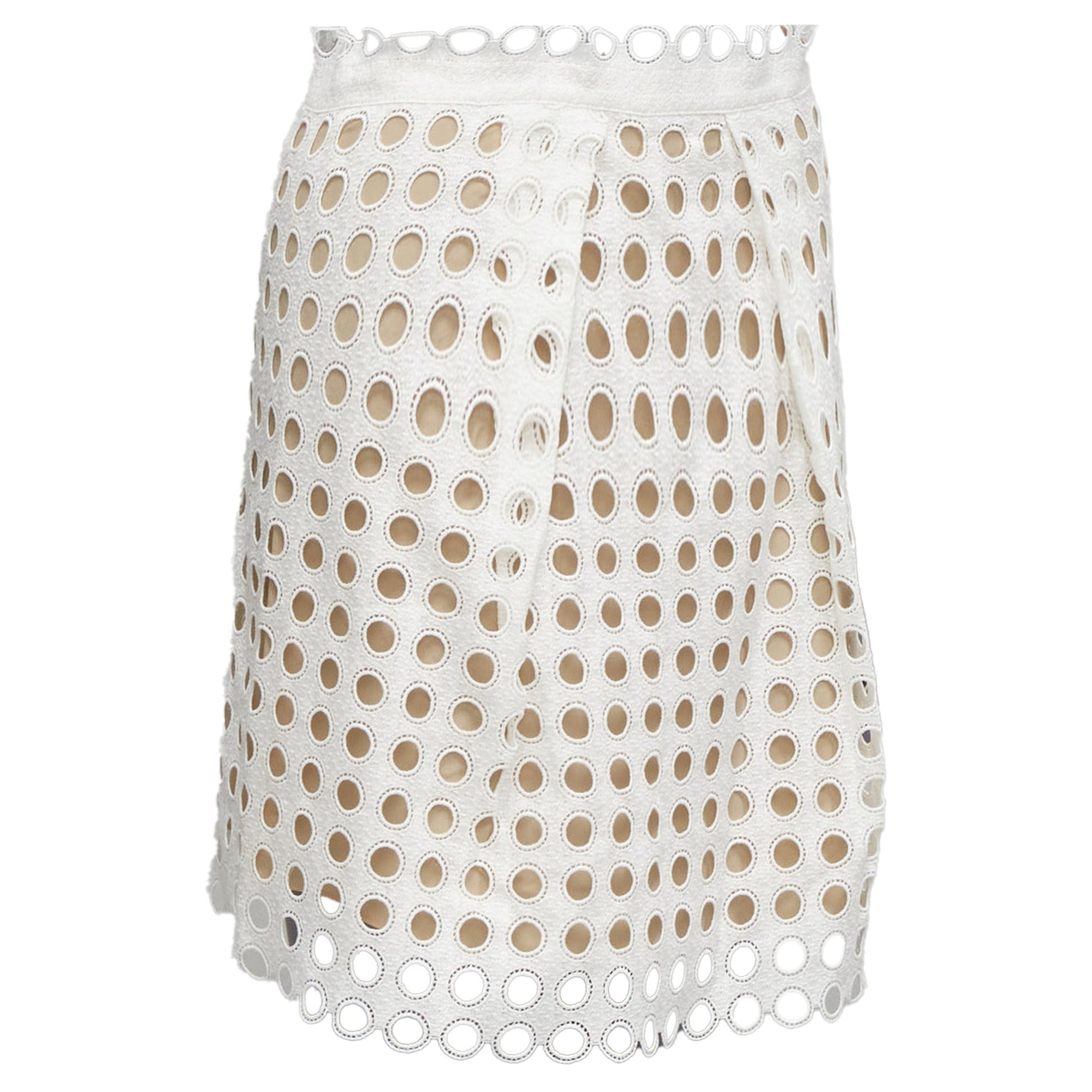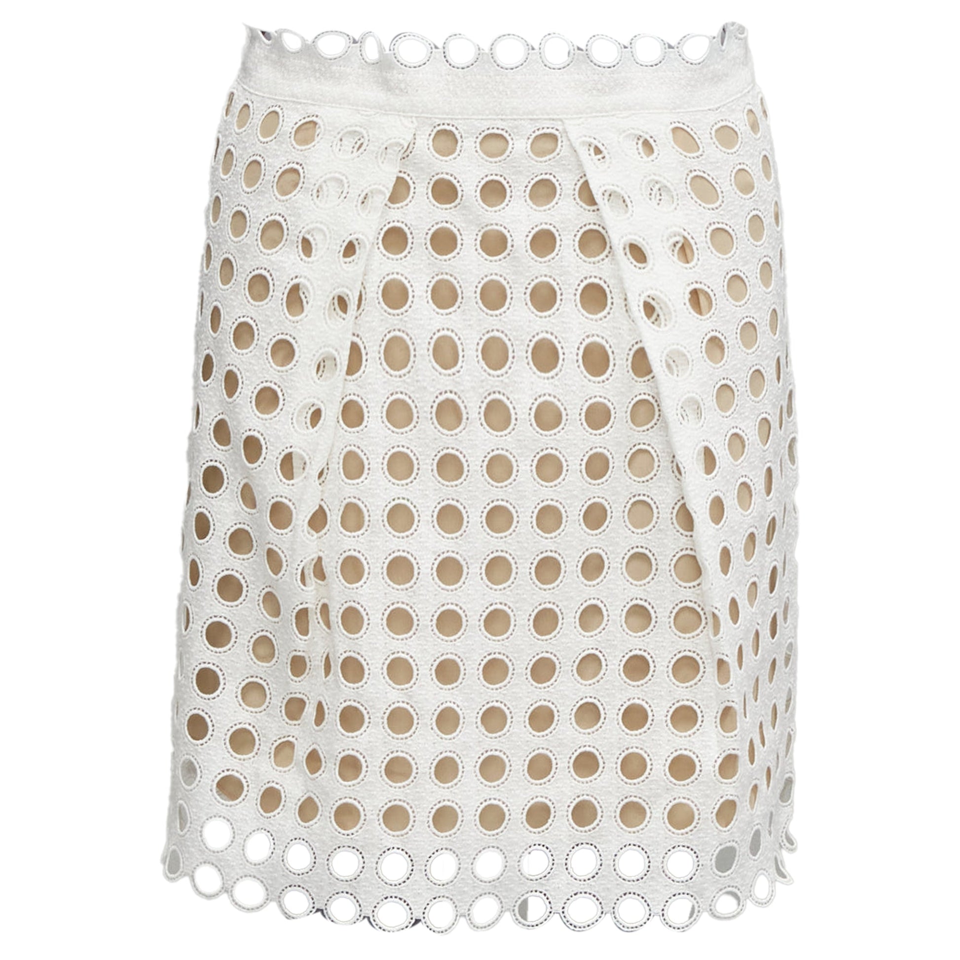 CHLOE white embroidery anglais eyelet layered silk lined skirt FR34 XSReference - SNKO/A00299Brand - ChloeMaterial - Cotton, BlendColor - White, CreamPattern - SolidClosure - ZipLining - Nude SilkExtra Details - Back zip. Silk lined.Made in - FranceCONDITION - Condition - Excellent, this item was and is in excellent condition. Comes with - Style code present (Generic) SIZINGDesigner size - FR34Size reference - US0 / UK6 / IT38 / FR34 / XXS-XSMEASUREMENTS - Waist - 35cm / 13.7"Hip - 43cm / 16.8"Length - 46cm / 17.9"Measurments - length - 460 mm
