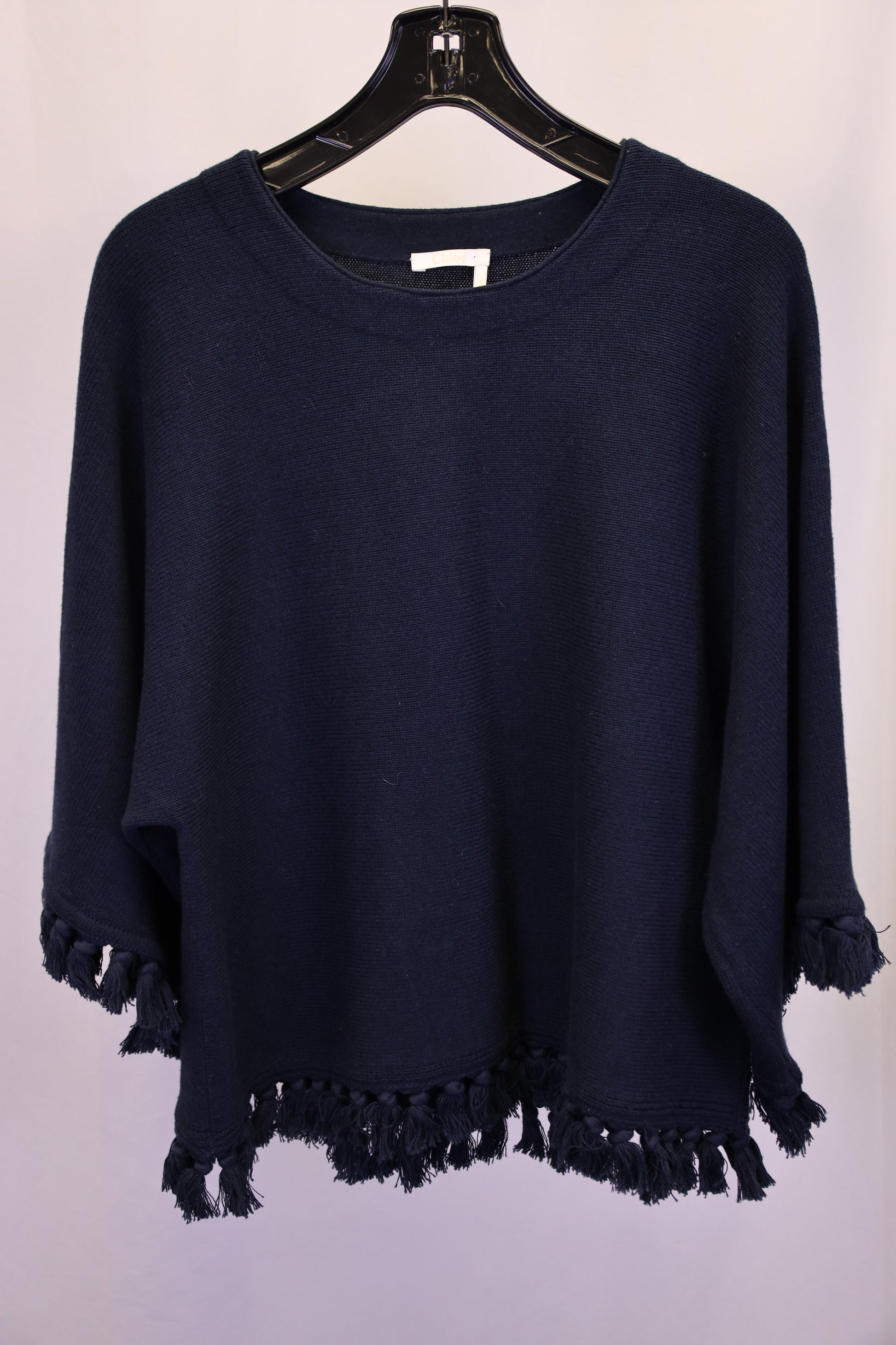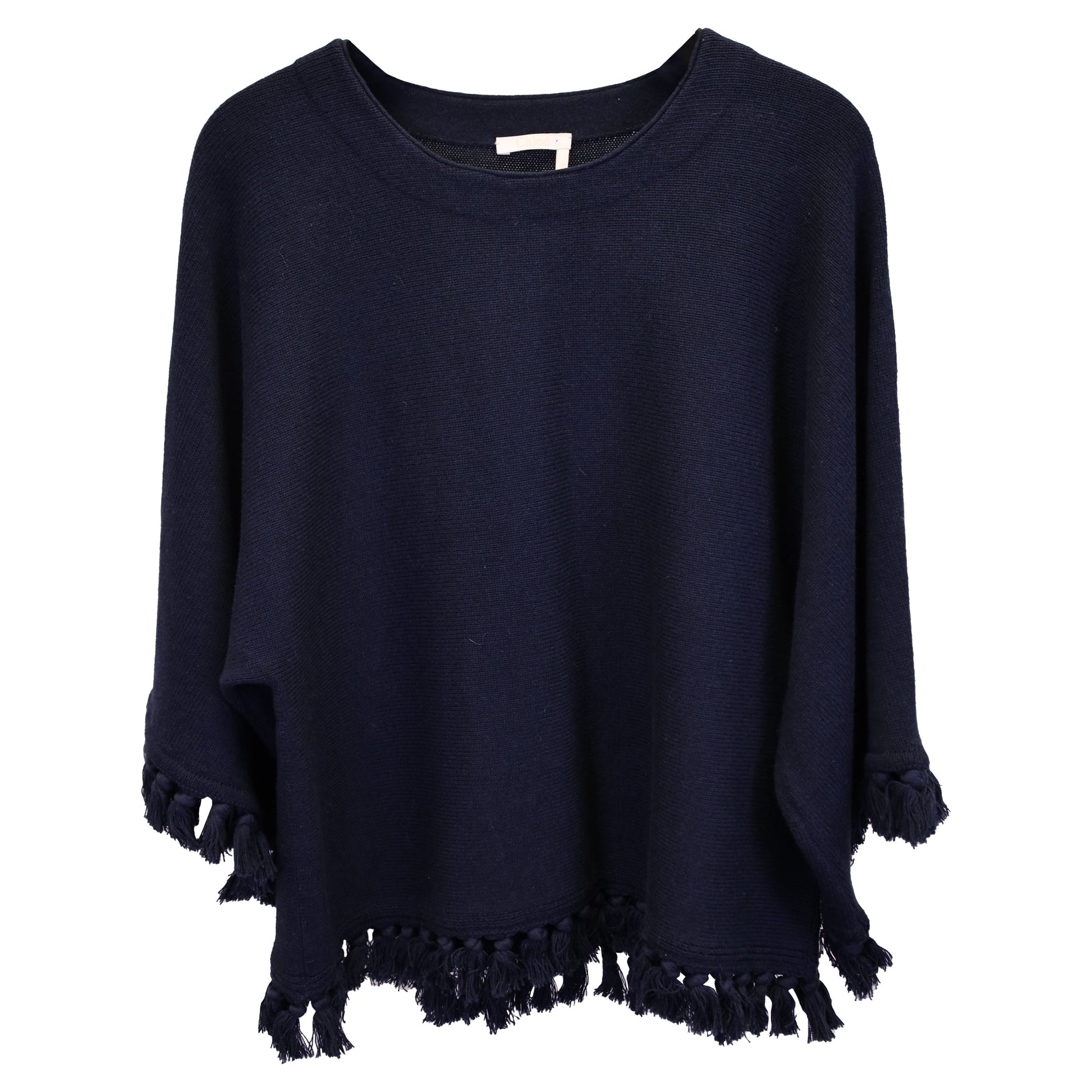 Cozy Elegance - Made from luxurious wool, this sweater offers both coziness and elegance. The fringed accents add a playful element to the classic silhouette, making it a stand-out addition to your fall and winter wardrobe.Chloe Fringed Sweater in Navy WoolMaterial - WoolColor - Navy Size - SCondition - ExcellentSign of Wear - NoSKU - 369395
