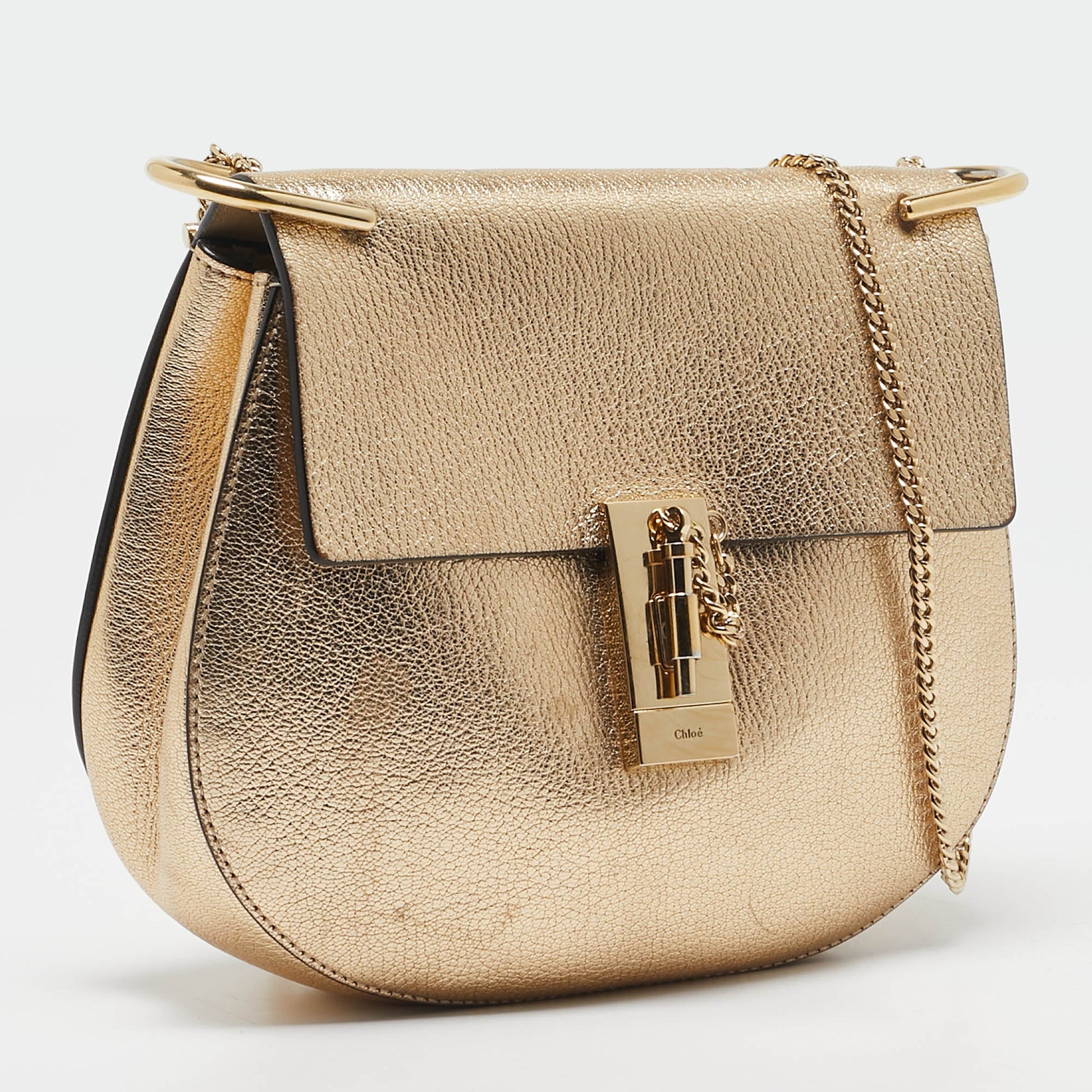 Chloe Gold Leather Medium Drew Shoulder Bag