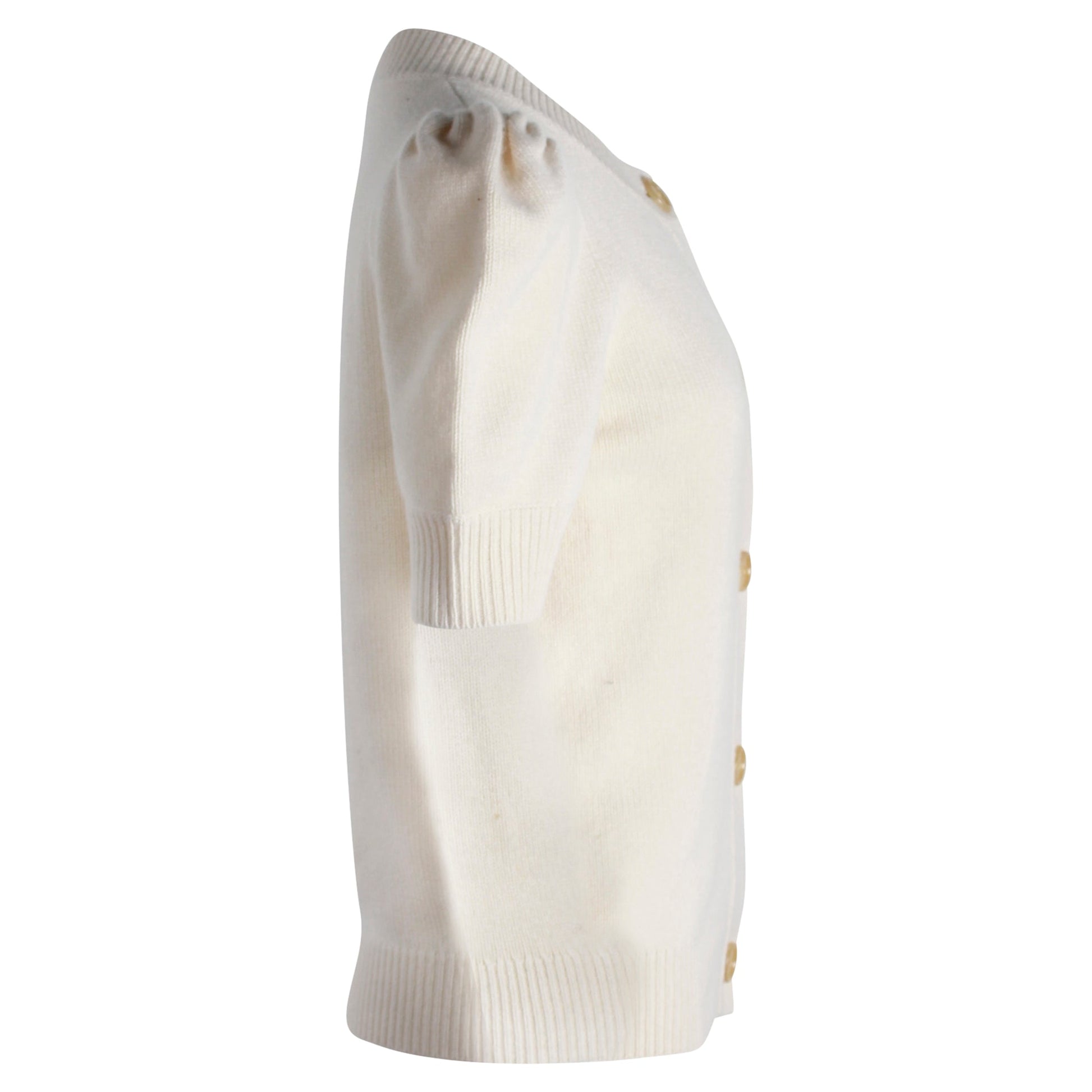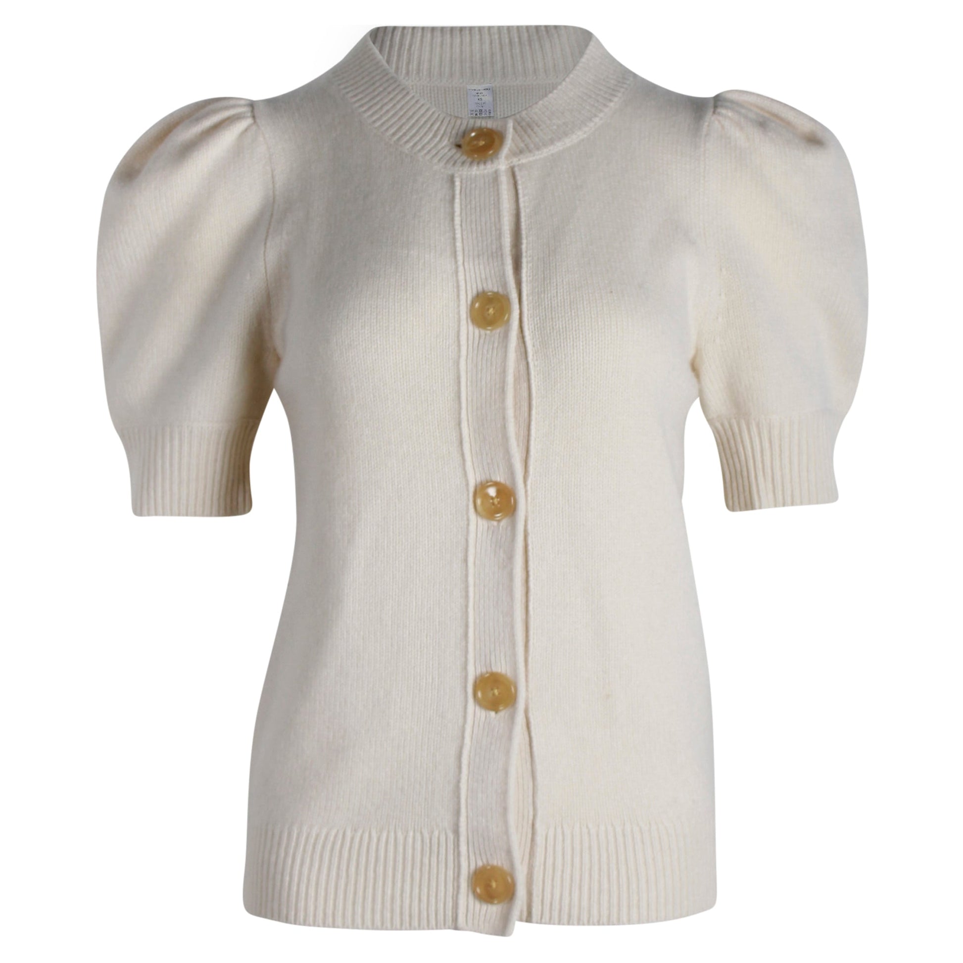 Chloe Iconic Puff-Sleeved Cardigan in Cream Cashmere