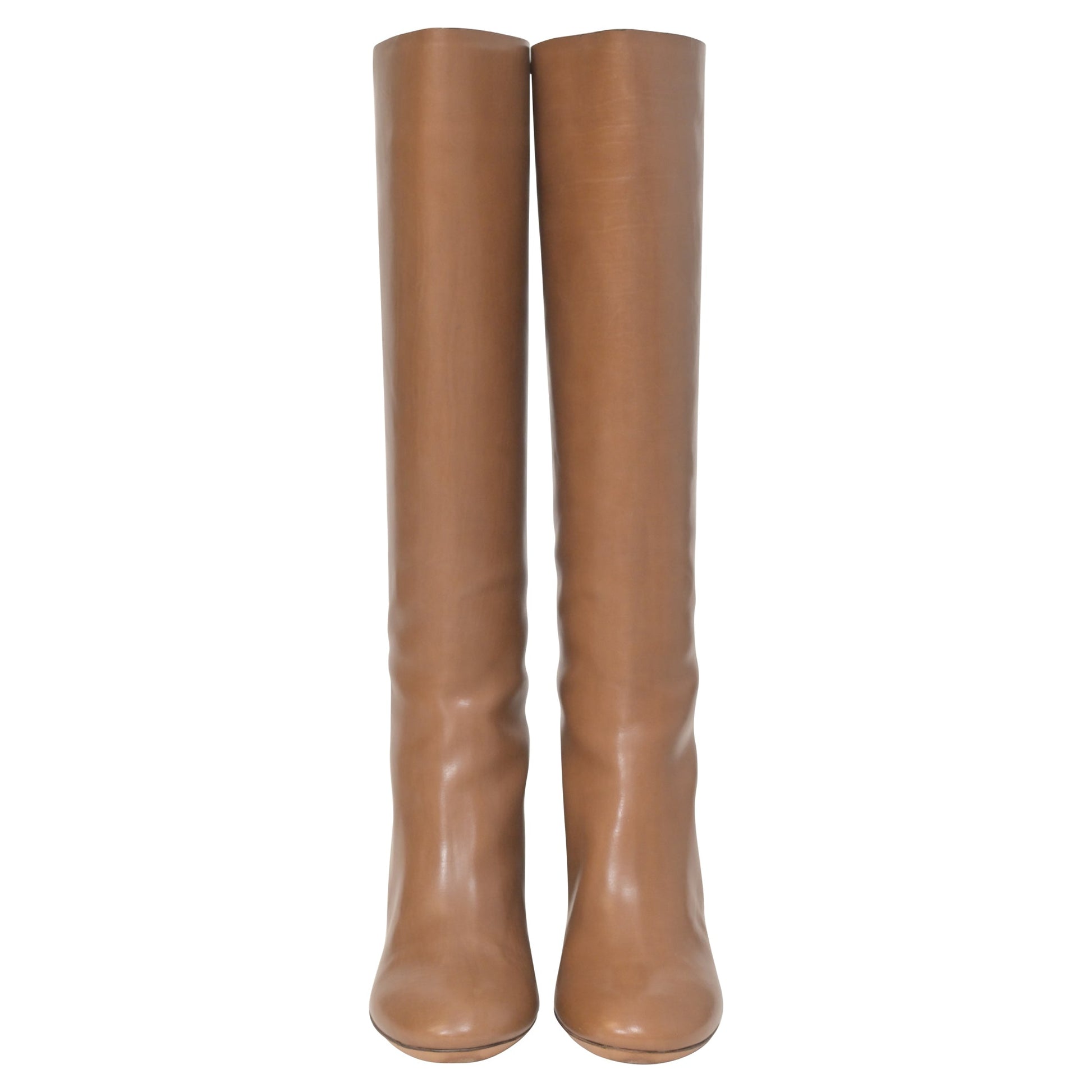 Classic Elegance - Embrace classic elegance with the Chloe Knee Boots in Brown Leather. The deep, warm brown leather exudes a sense of timeless sophistication, while the knee-high design adds a touch of refinement. These versatile boots are a wardrobe staple, effortlessly pairing with both casual and formal ensembles to elevate your style with a touch of classic charm.Chloe Knee Boots in Brown LeatherCondition - Very goodSigns of wear - No visible sign of wear. No Mark at insole., Unused or used once, but as good as new. Very light mark at soles.Packaging - Box, Dust bagColor - Brown | ochreMaterial - LeatherSize - EU36.5/Measurements - Heel height - 75; Insole length - 240SKU - NAPPUHKSH371071W