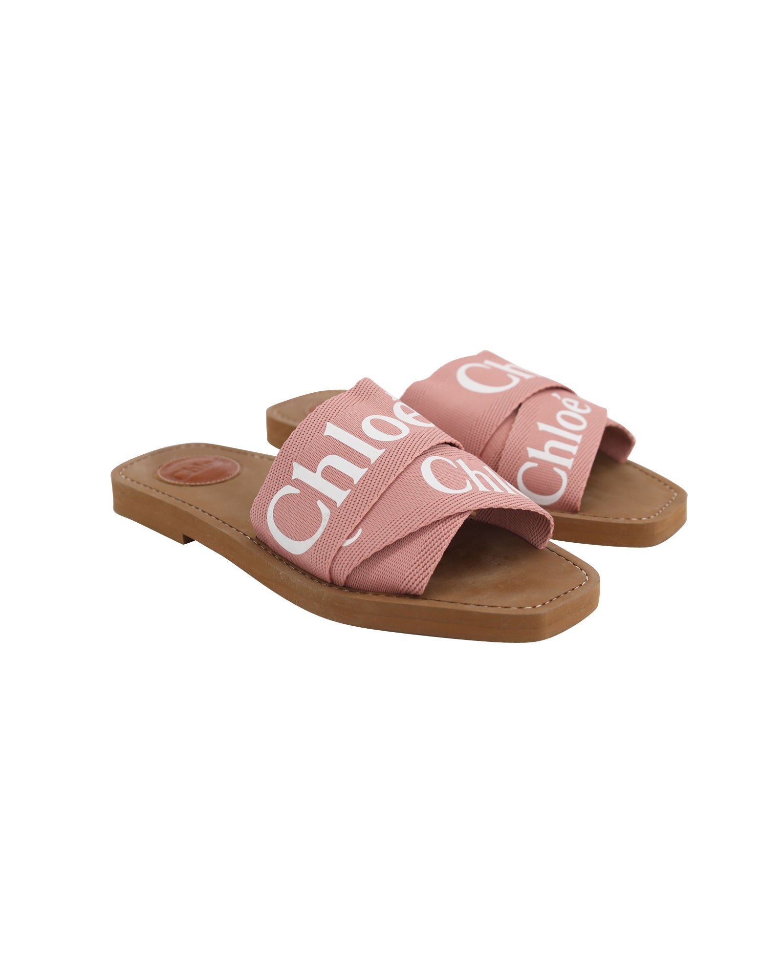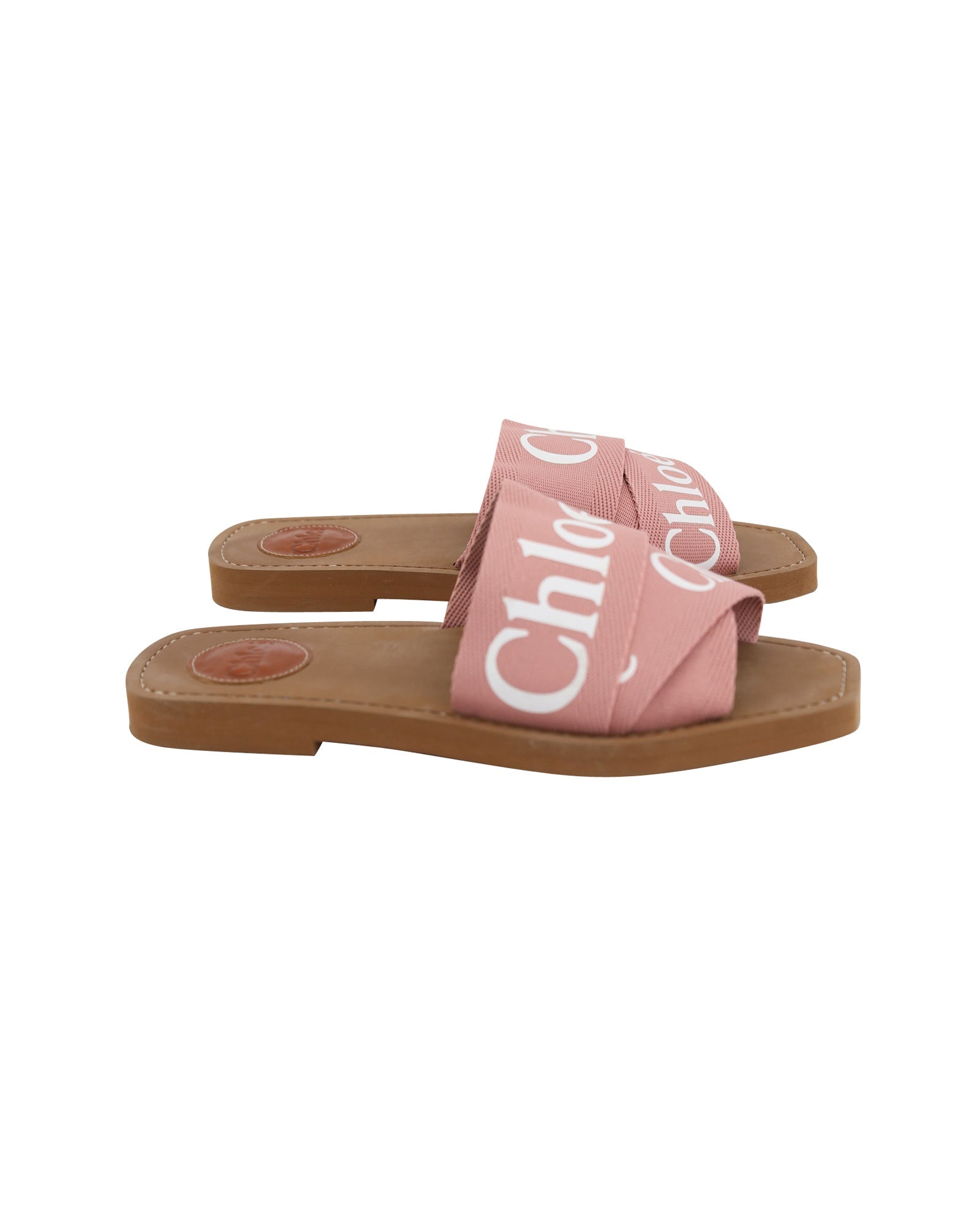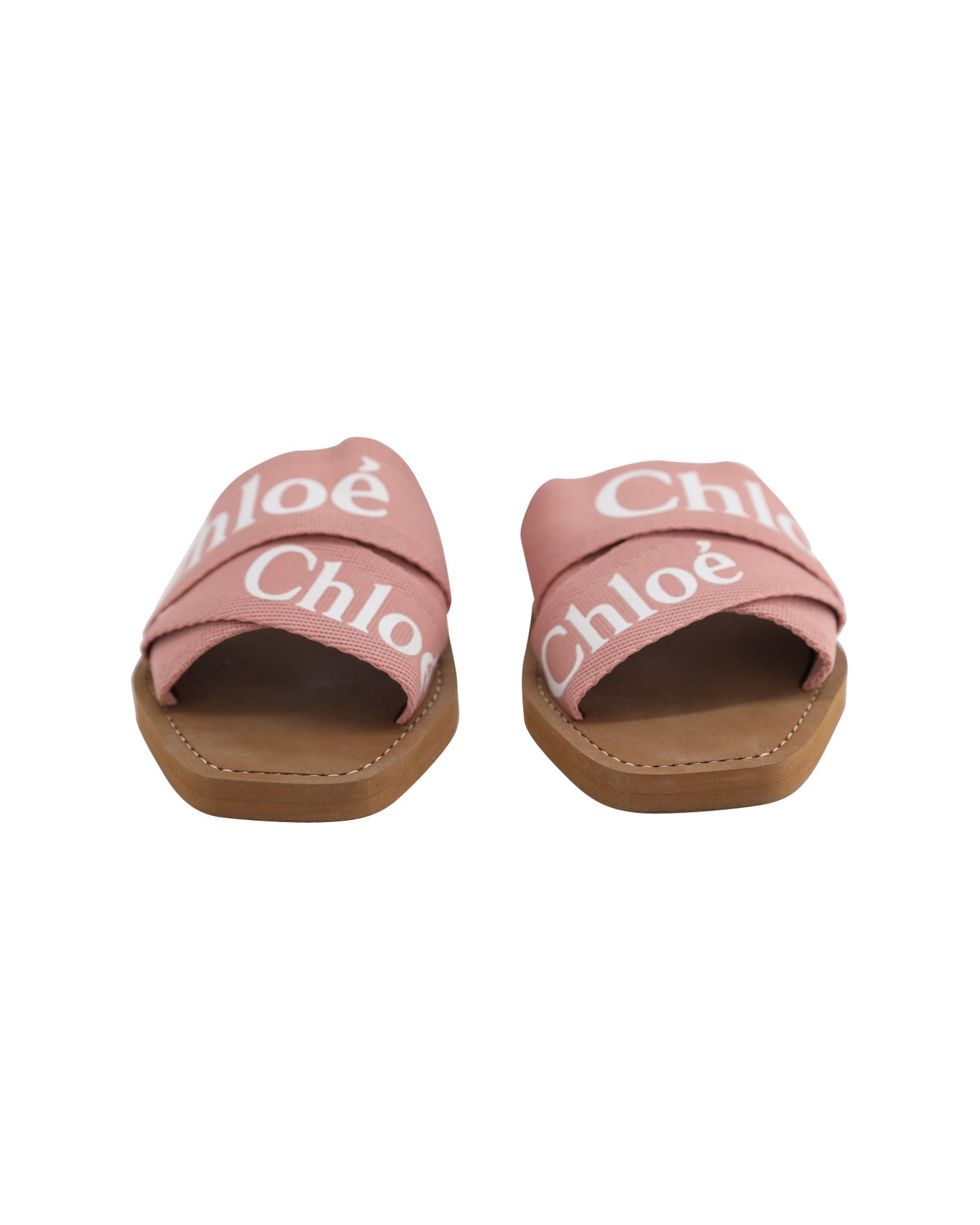 Chloe Logo Straps Woody Flats in Pink Canvas