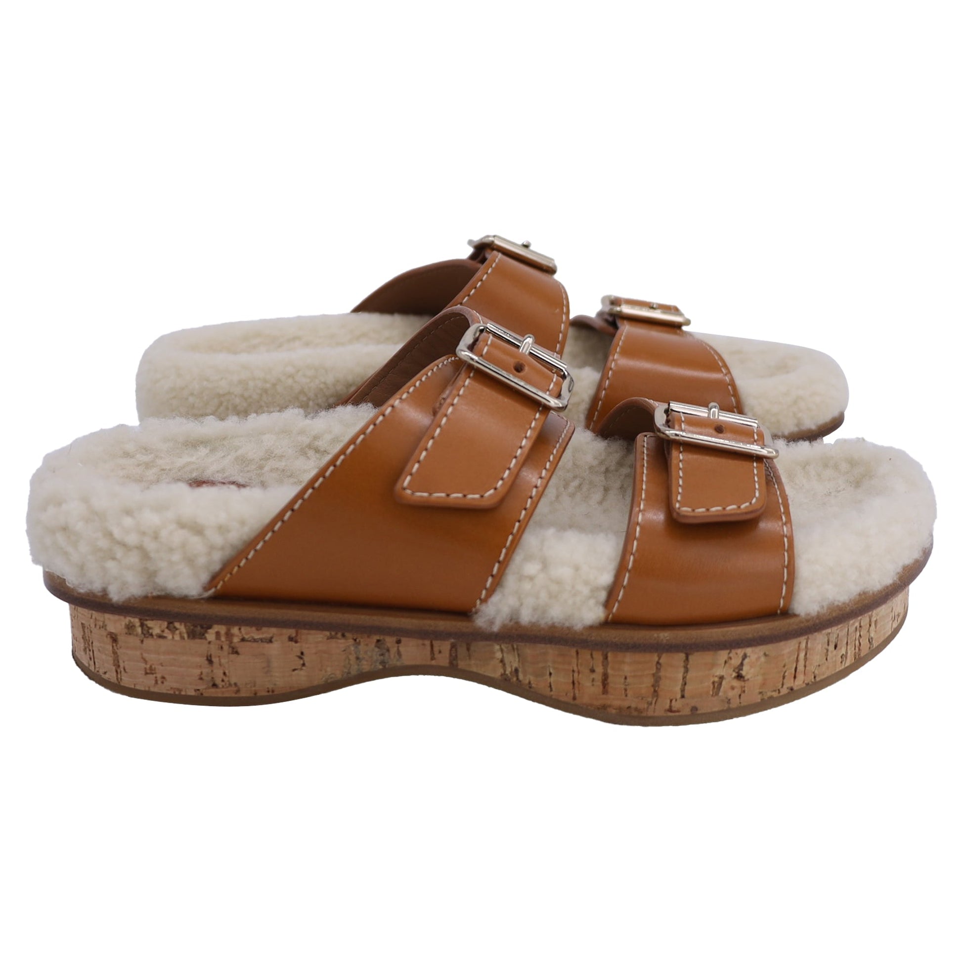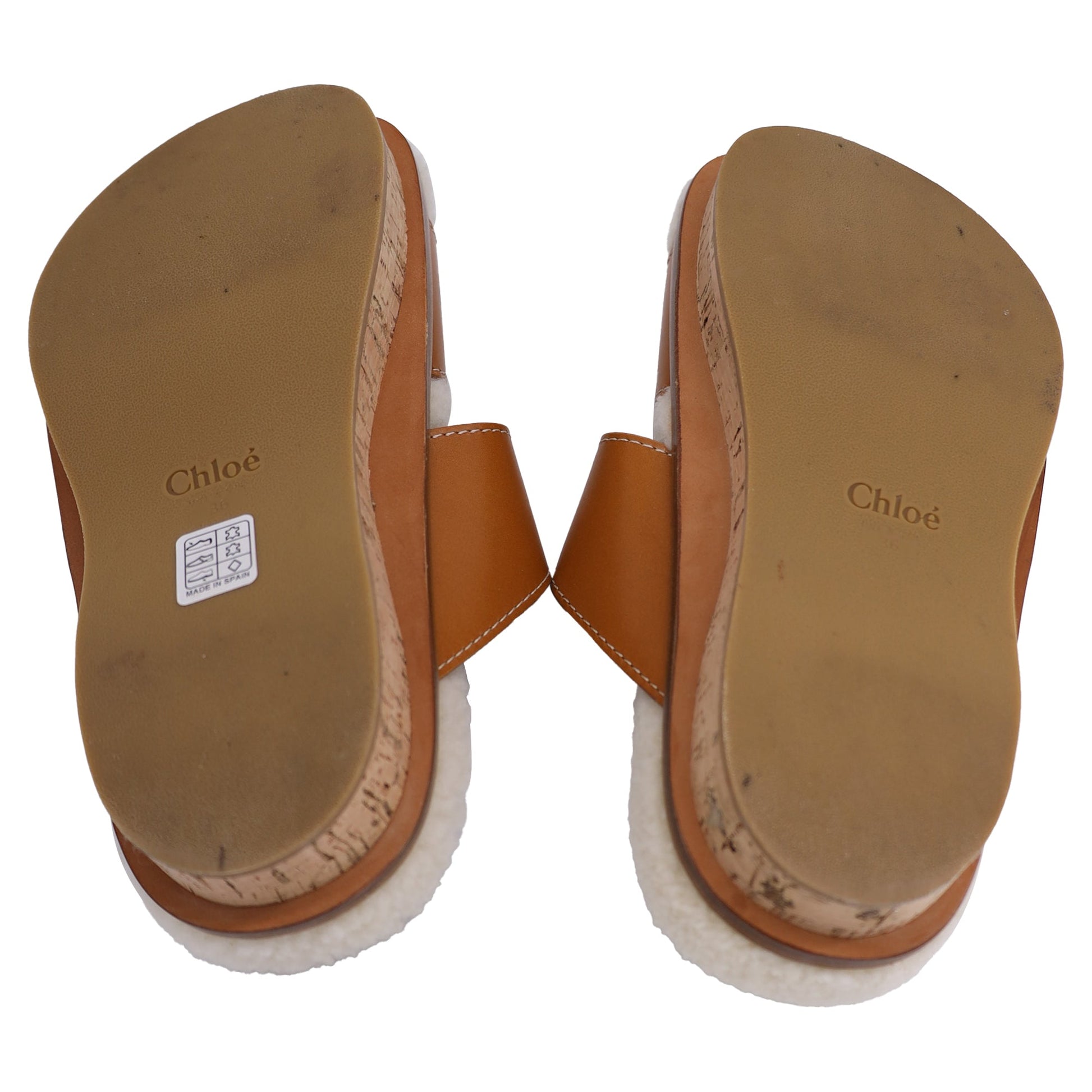 Chloe Marah Sandals in Brown and White Leather & Shearling