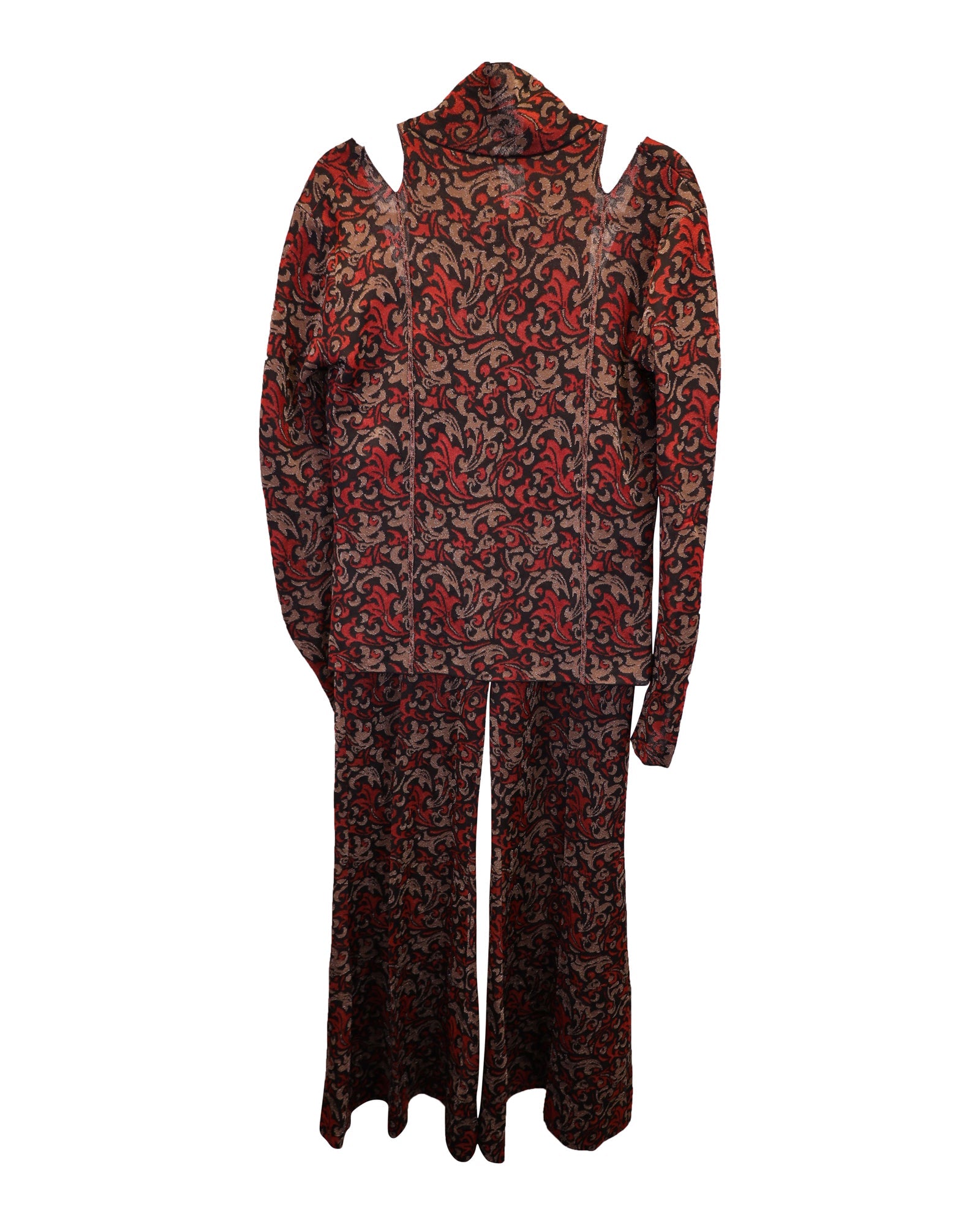 Chloe Patterned Long-Sleeve Top and Wide-Leg Pants Set in Multicolor Cotton