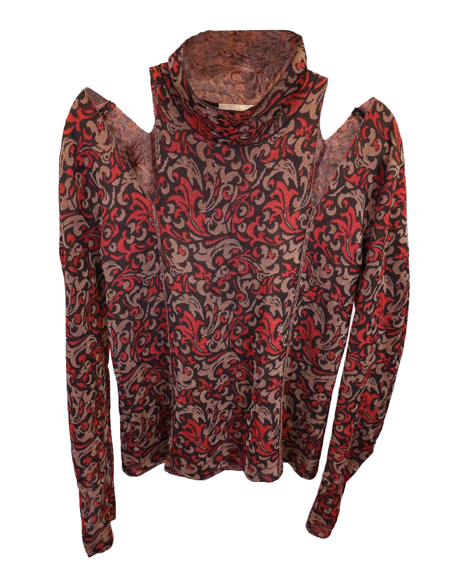 Radiate standout style with the Chloe Patterned Long-Sleeve Top and Wide-Leg Pants Set – a mesmerizing combination of modern artistry and timeless elegance. The multicolor cotton with elegant patterns throughout evokes a sense of playful luxury that demands attention. The long-sleeve top, complete with a mock neck and captivating cut-outs on the shoulder, exudes an air of fearless sophistication, while the wide-leg pants elevate the look with an effortless sense of grace. This Chloe set is your key to commanding the spotlight with unmatched poise and unwavering confidence.Chloe Patterned Long-Sleeve Top and Wide-Leg Pants Set in Multicolor CottonColor - MulticolorMaterial - CottonCondition - ExcellentSigns of wear - Worn once or twiceSize - LMeasurements - Inseam - 870; Outseam - 1140; Waist - 390SKU - 366604