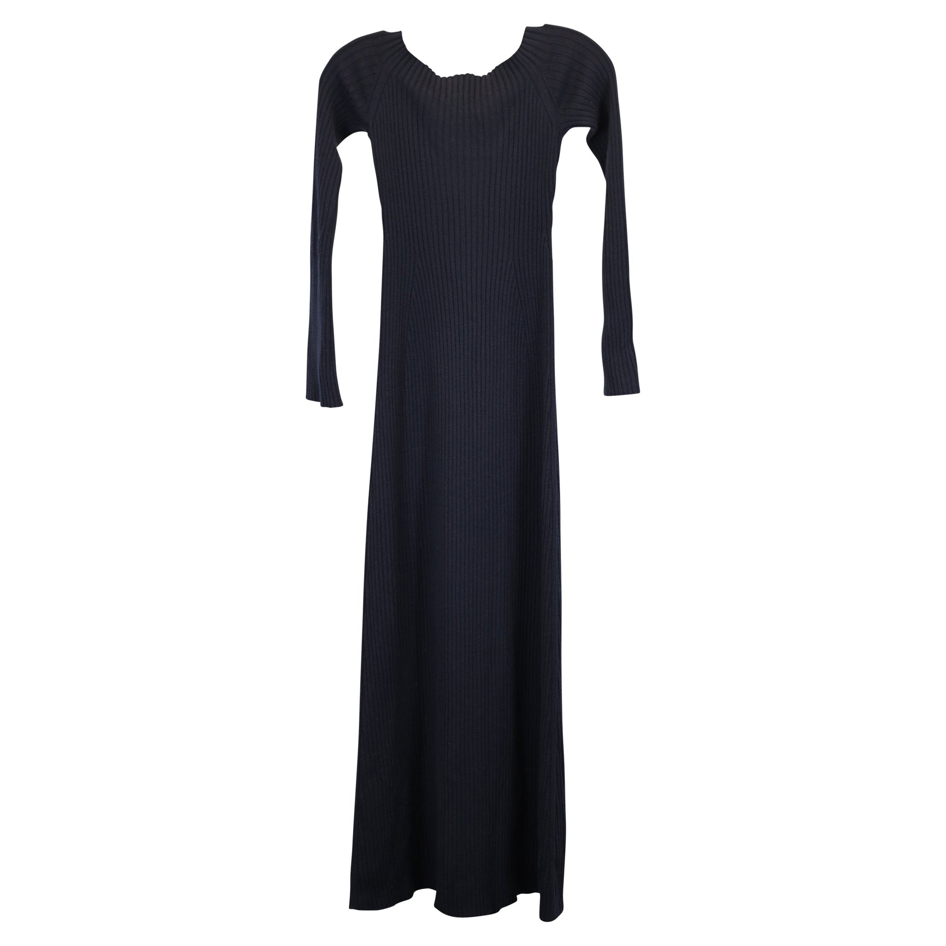 Chloe Ribbed Knit Dress in Navy Blue Wool