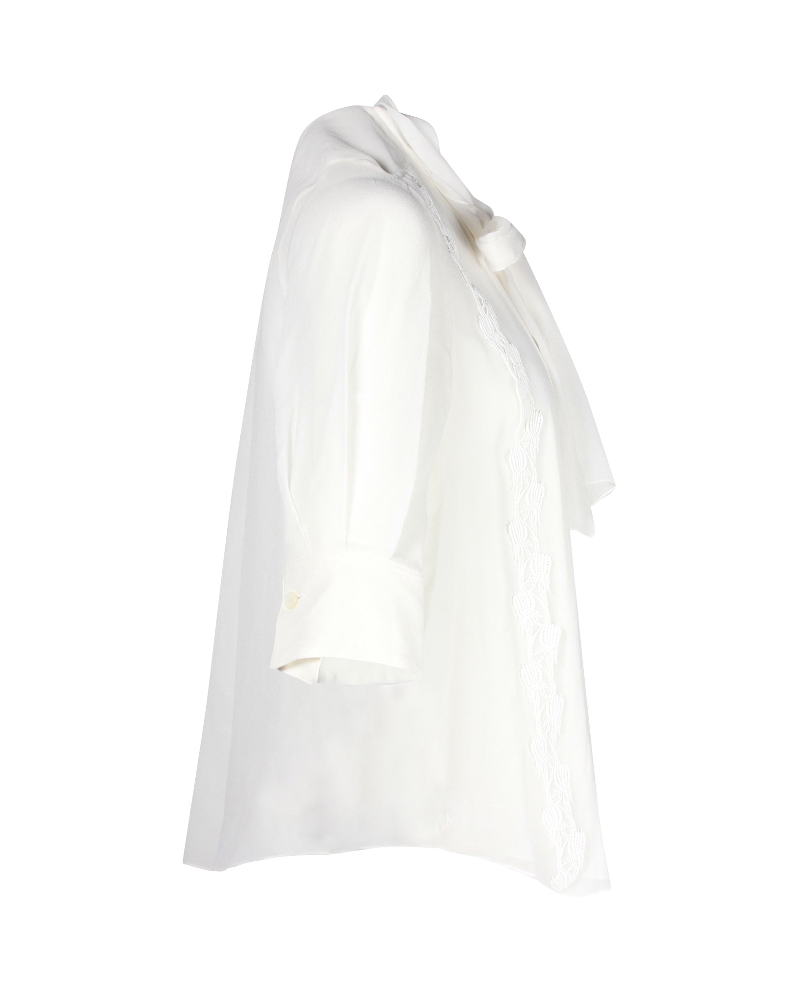 This Chloe scarf collar blouse in white silk is a must-have wardrobe mainstay. The sophisticated style can take you from day to night, pairing well with everything from pencil skirts to denim jeans.Chloe Scarf Collar Blouse in White SilkMaterial - SilkSize - FR38Condition - Very goodSign of wear - Chipped buttonSKU - 340288