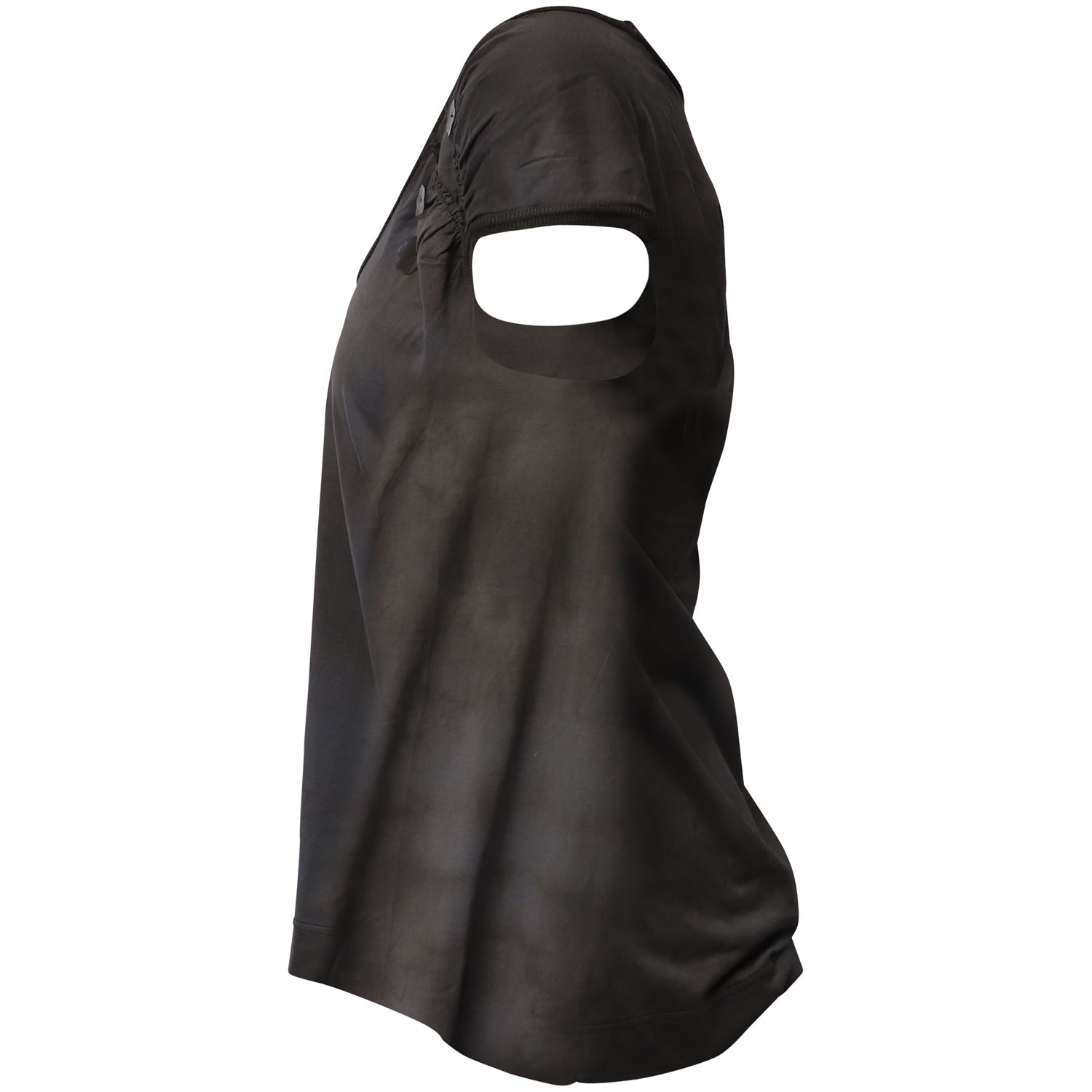 Chloe brings a feminine T-shirt to add to your closet. It is designed with gathers on the sleeve area, tie-dye effect and dainty floral embellishments on the left side chest. Wear this T-shirt with denim jeans and make it your go to top when you do errands. Chloe Tie-Dye T-shirt with Flower Embellishment in Grey CottonCondition - Very GoodSign of wear - Signs of wear Material - CottonSize - SSKU - 159860
