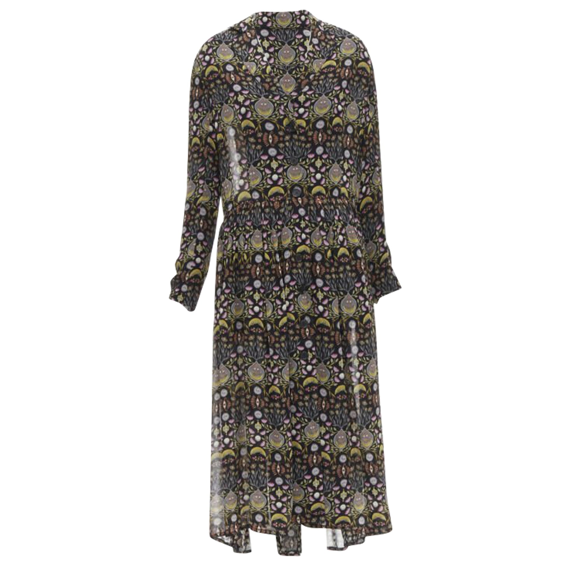 CHLOE 2018 Mystic Eye black yellow viscose bohemian print midi dress FR34 XSReference - KNLM/A00168Brand - ChloeMaterial - ViscoseColor - Black, YellowPattern - FloralClosure - ButtonExtra Details - Spread notched collar. Button front.Made in - ItalyCONDITION - Condition - Excellent, this item was and is in excellent condition. SIZINGDesigner size - FR34Size reference - US0 / UK6 / IT38 / FR34 / XXS-XSSize note - This item has an oversized fit.MEASUREMENTS - Shoulder to shoulder - 44cm / 17.2"Chest - 61cm / 23.8"Waist - 53cm / 20.7"Hip - 47cm / 18.3"Length - 133cm / 51.9"Sleeve length - 61cm / 23.8"Measurments - length - 1330 mm strap length - 610 mm