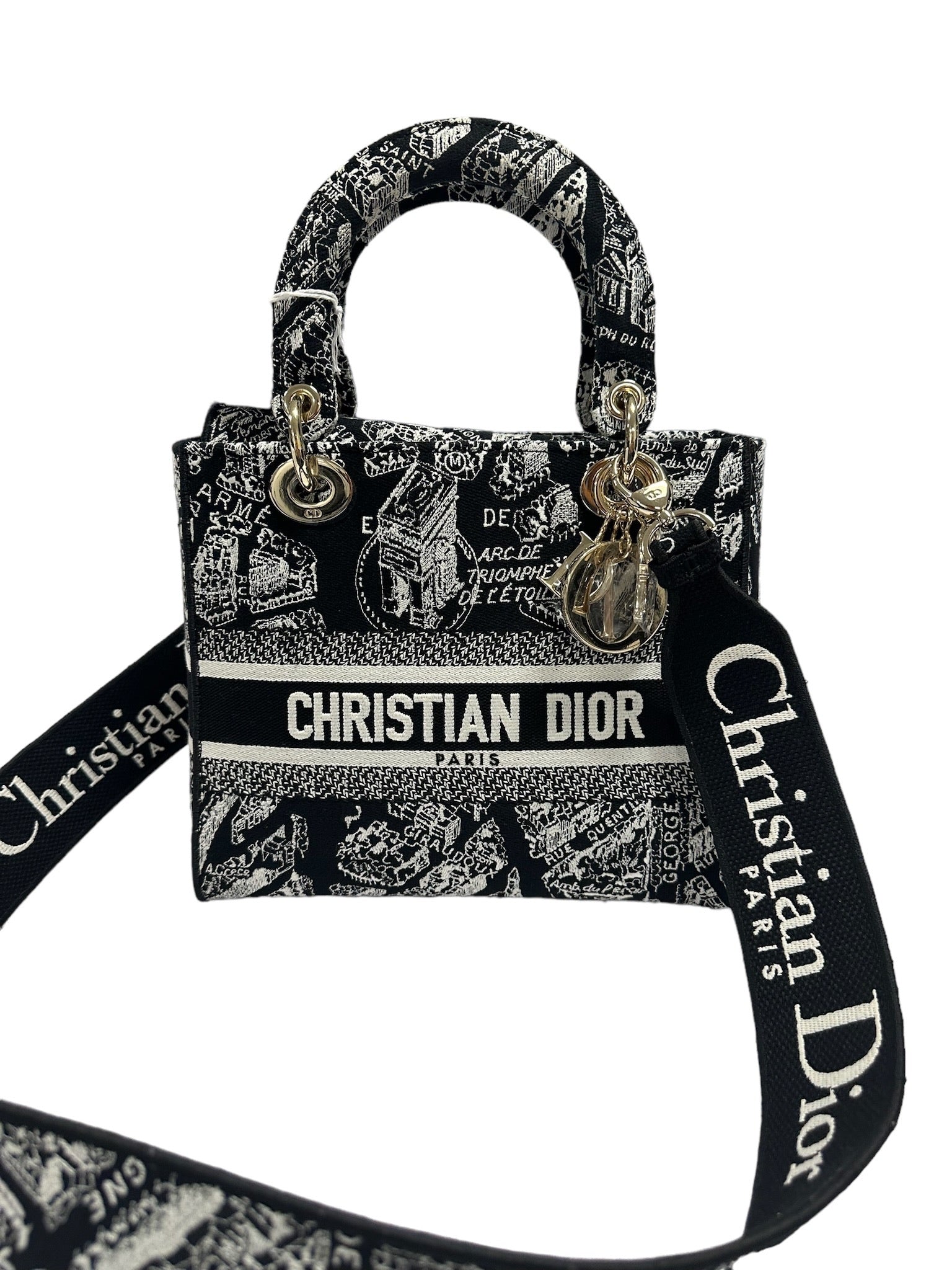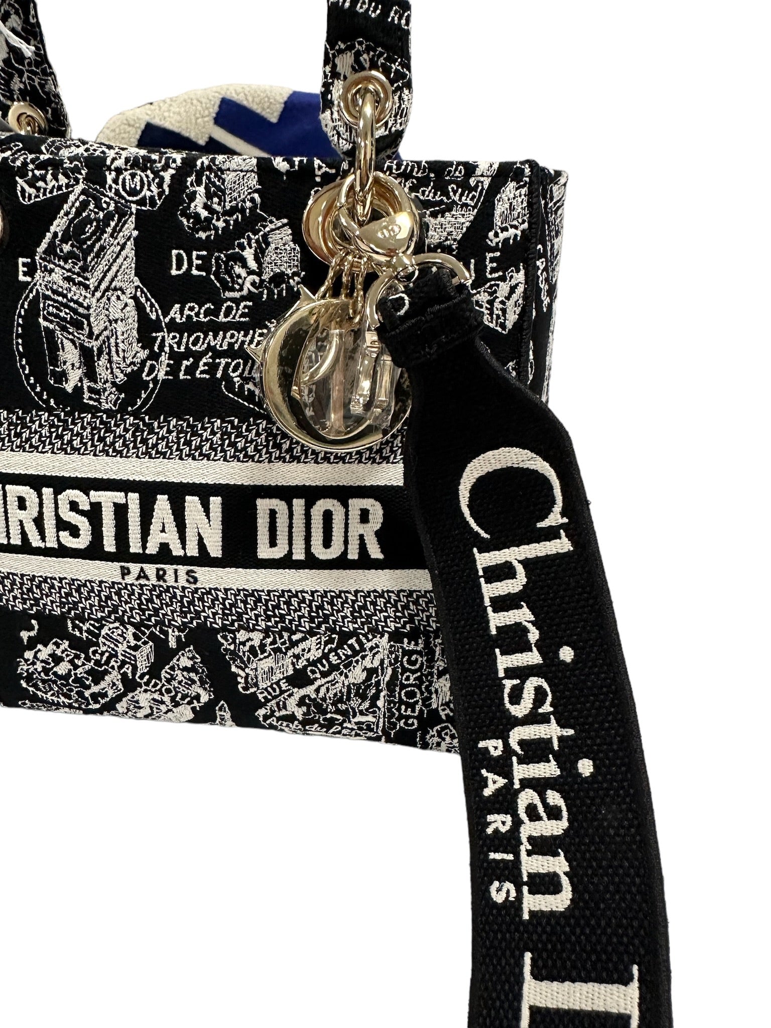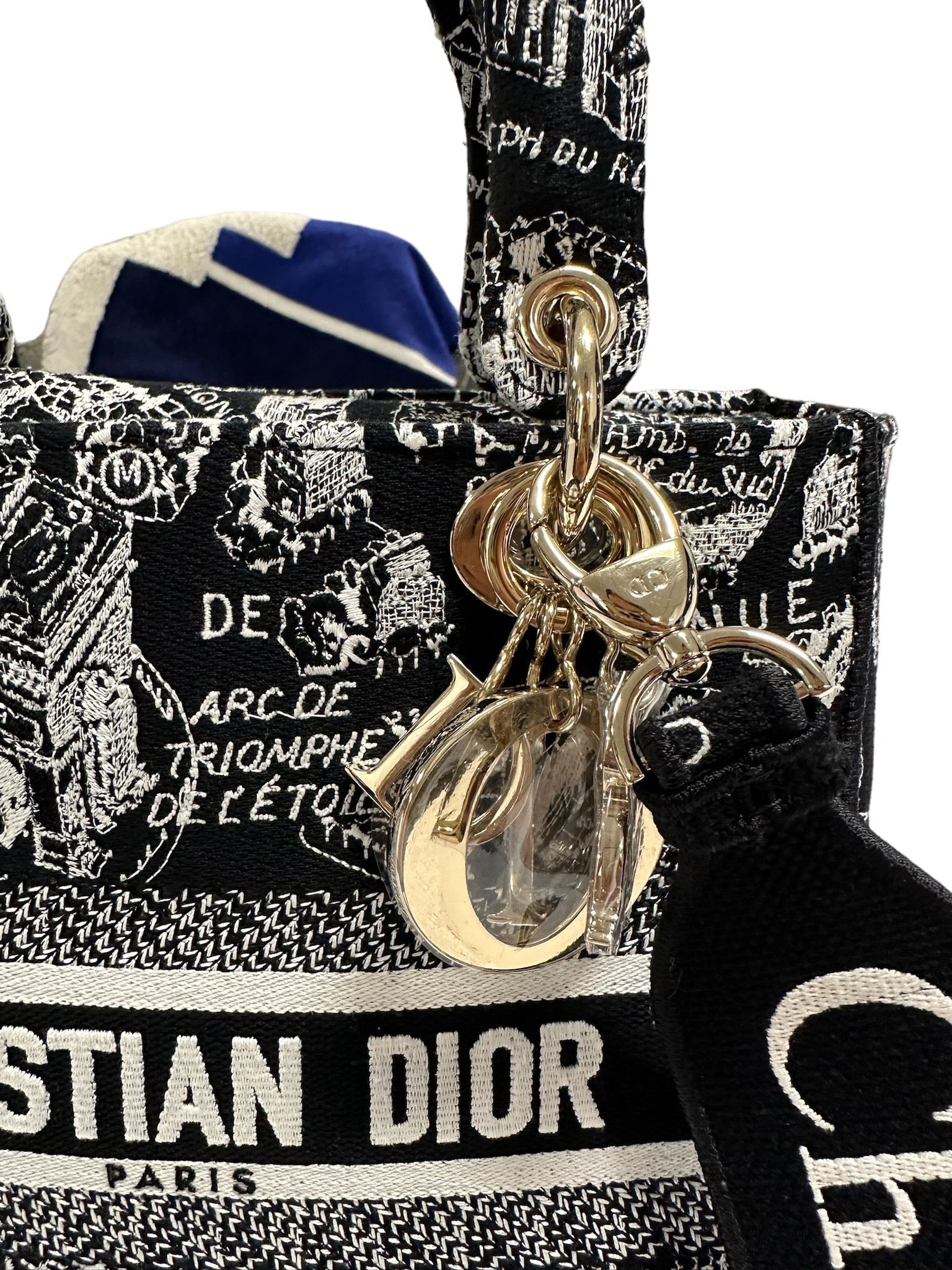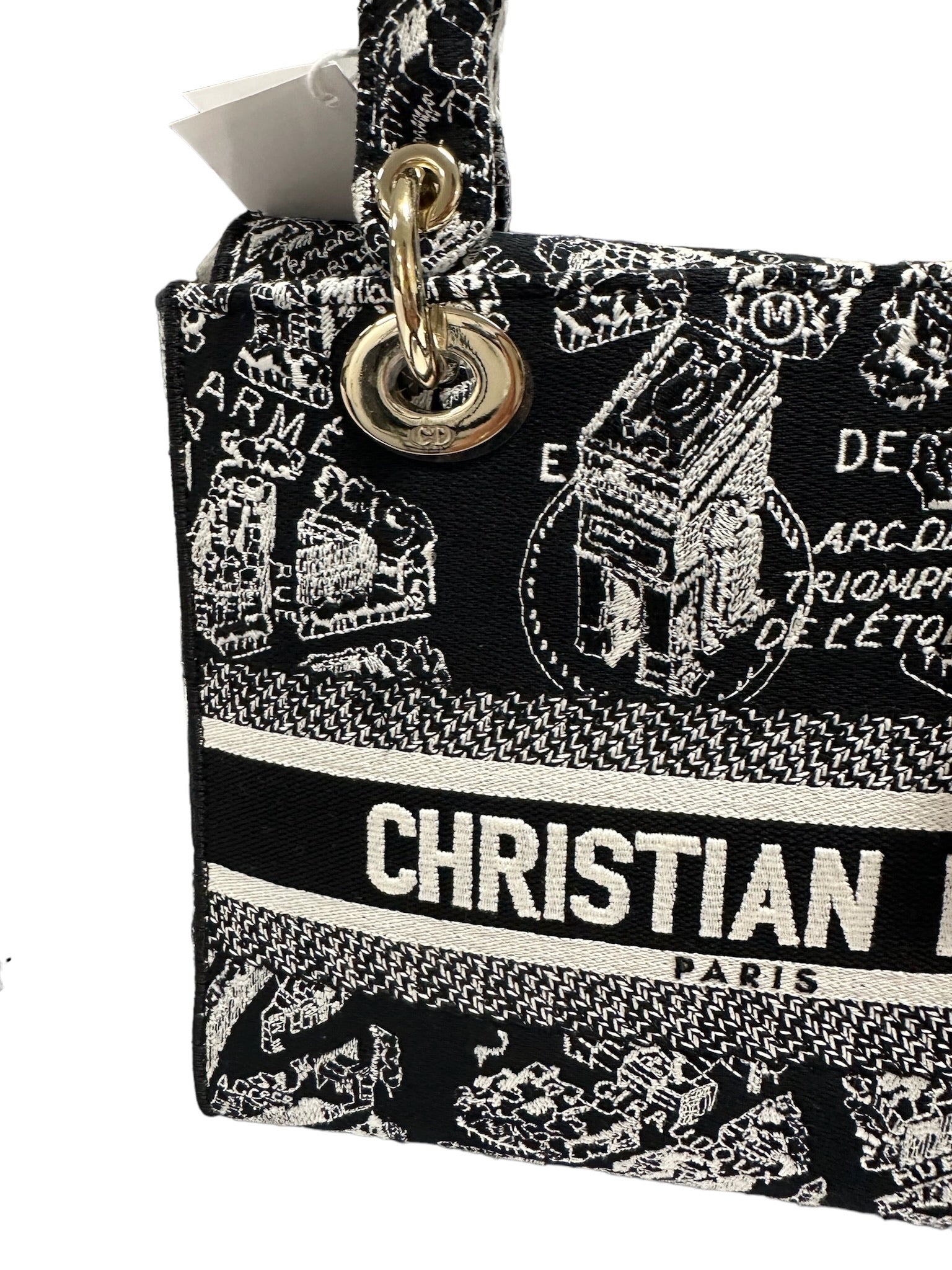 CHRISTIAN DIOR - Black White Canvas Embroidered Medium Plan De Paris Lady D Lite