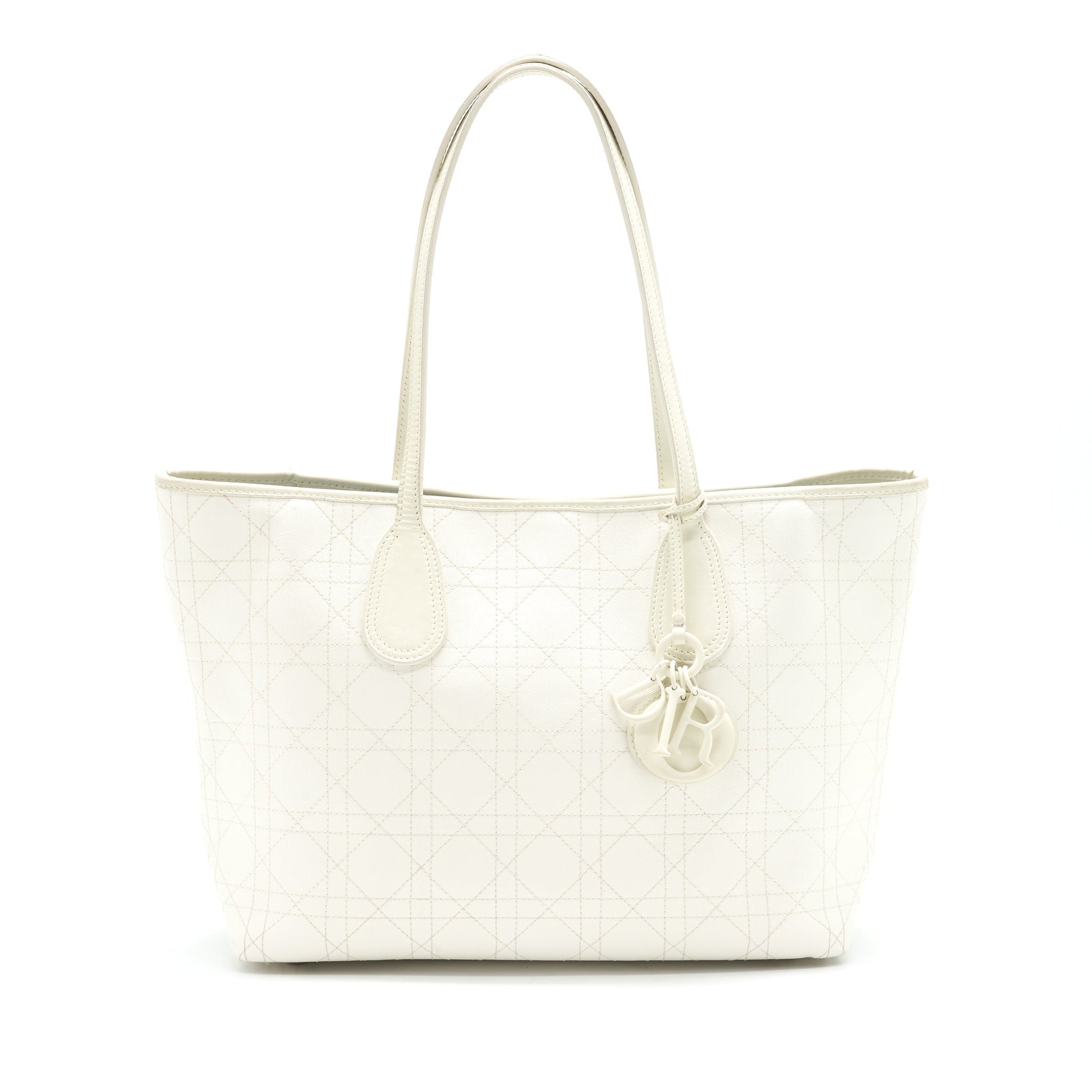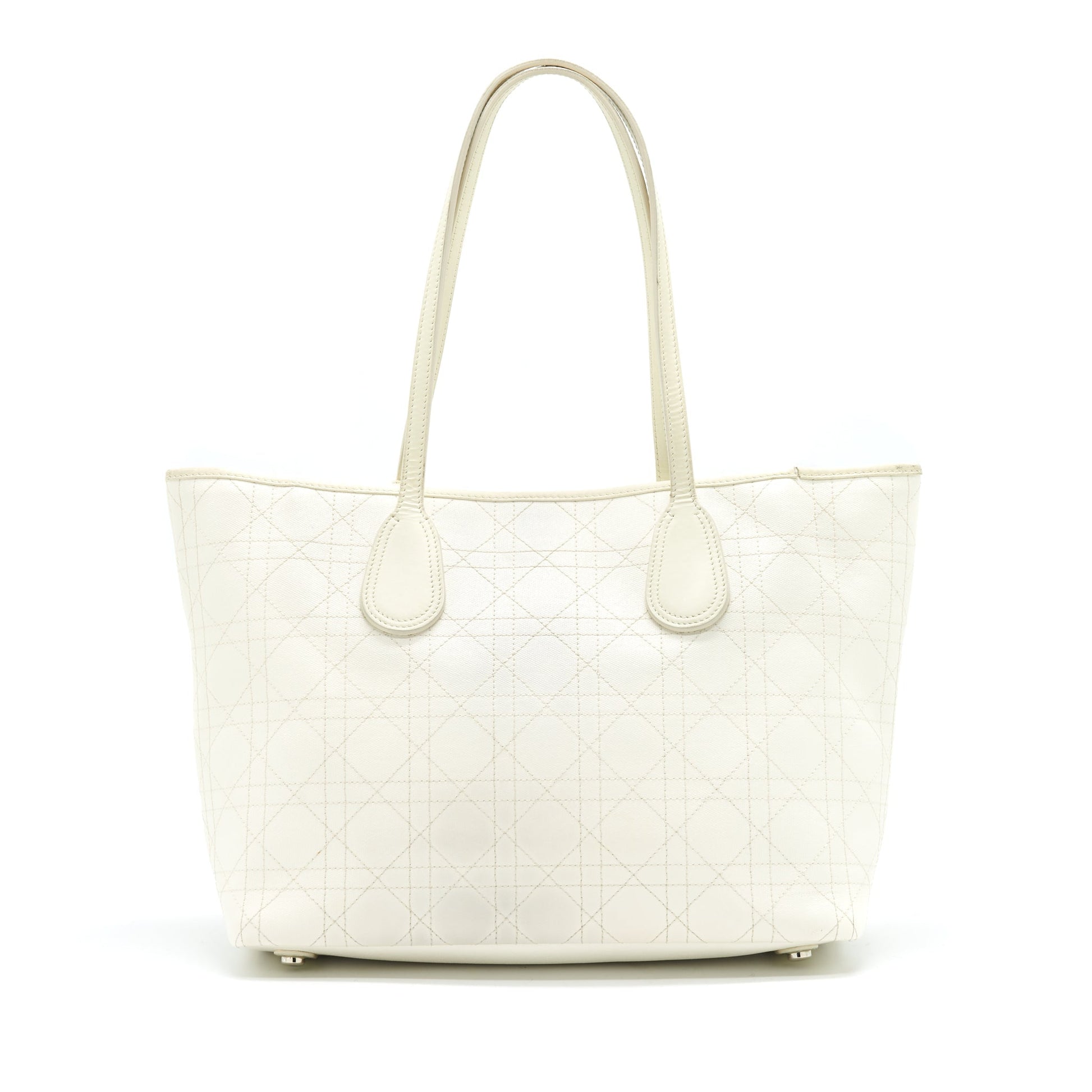 Christian Dior Canvas and Leather Tote Bag in Creamy White