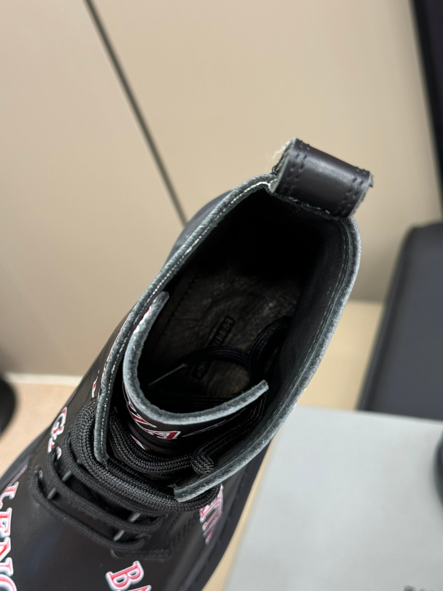 Balanciaga CHUNKY BOOTS IN BLACK SMOOTH CALFSKIN RED LOGO PRINT