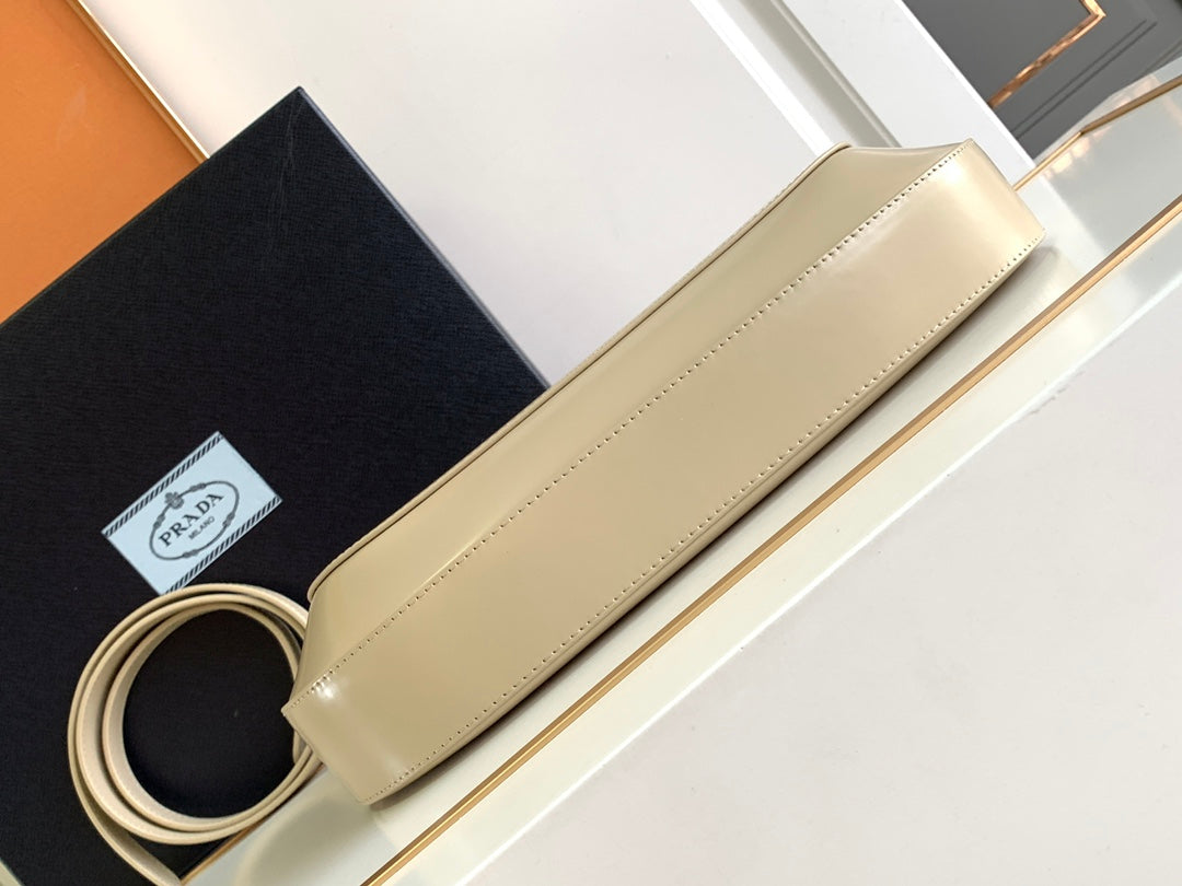 PRADA CLEO 30 BEIGE BRUSHED LEATHER SHOULDER BAG