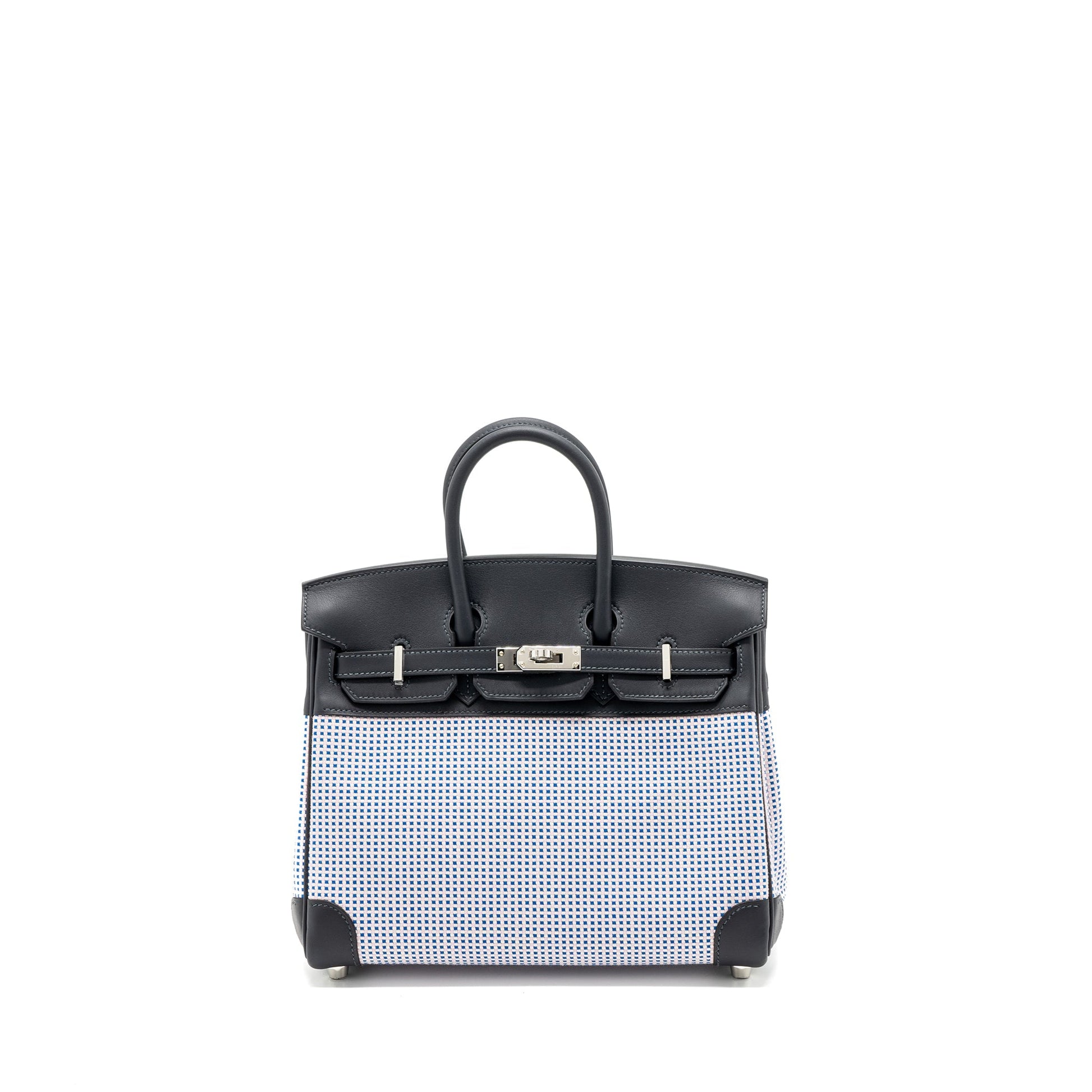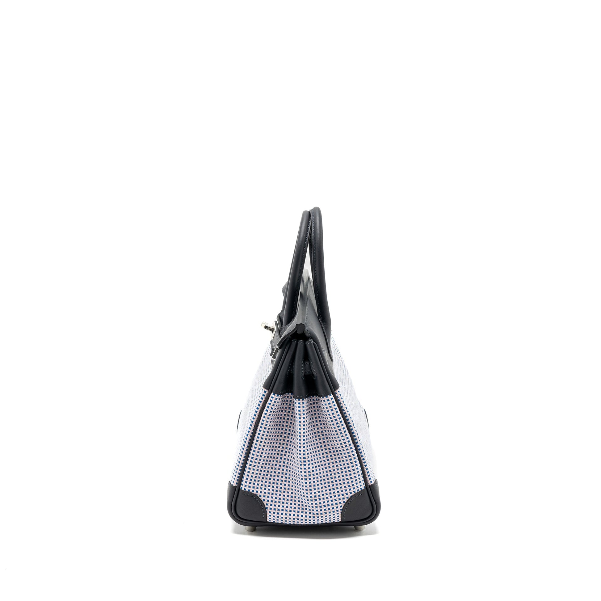 Hermes Birkin 25 Toile Quadrille/Swift Ecru Mauve/Bleu Bill/Caban SHW Stamp B