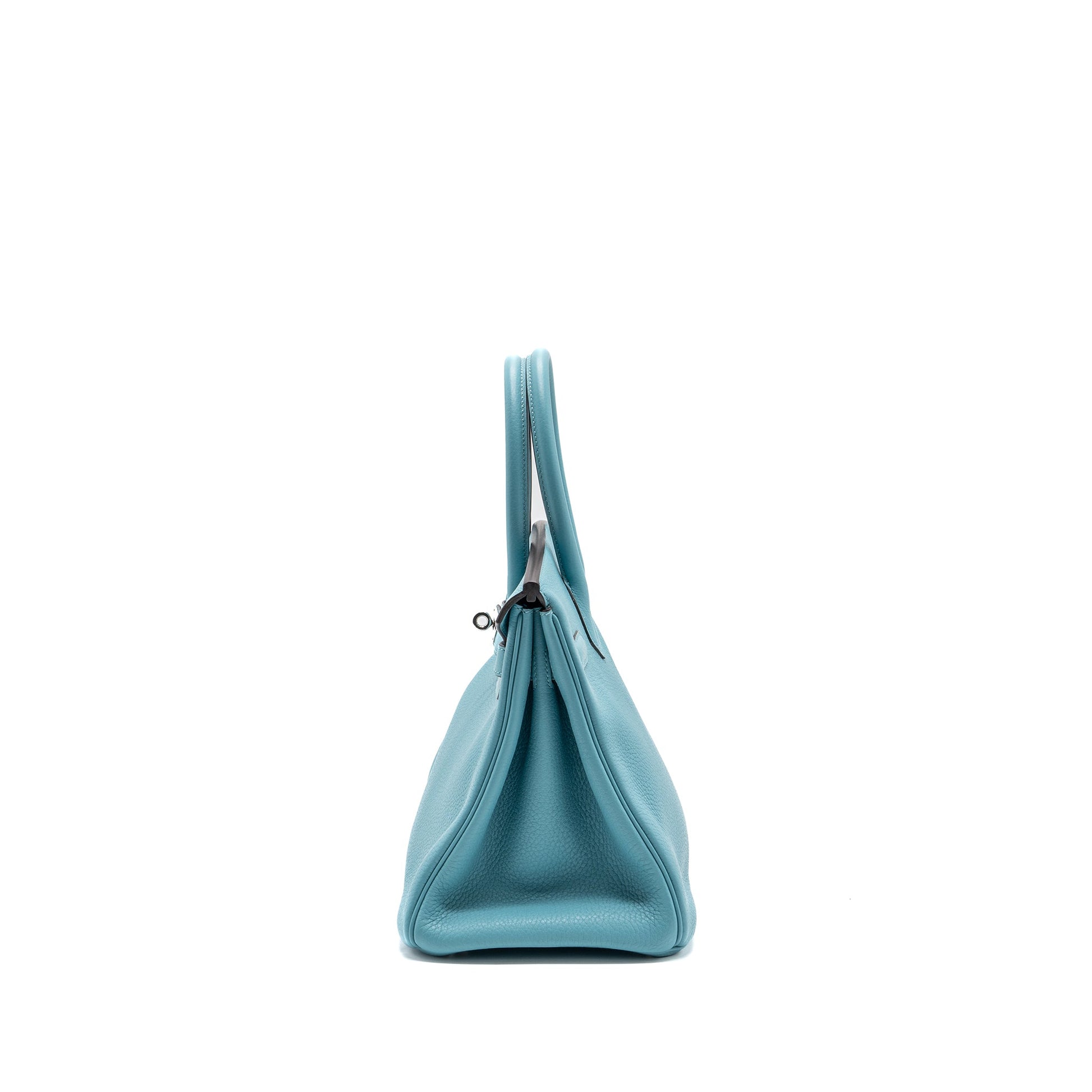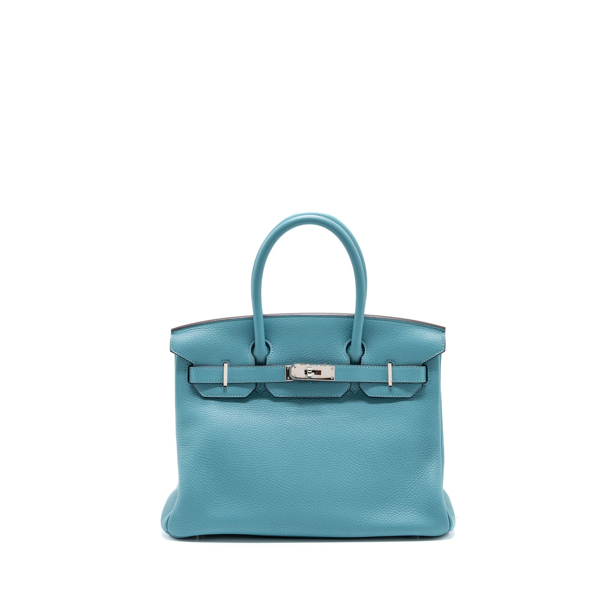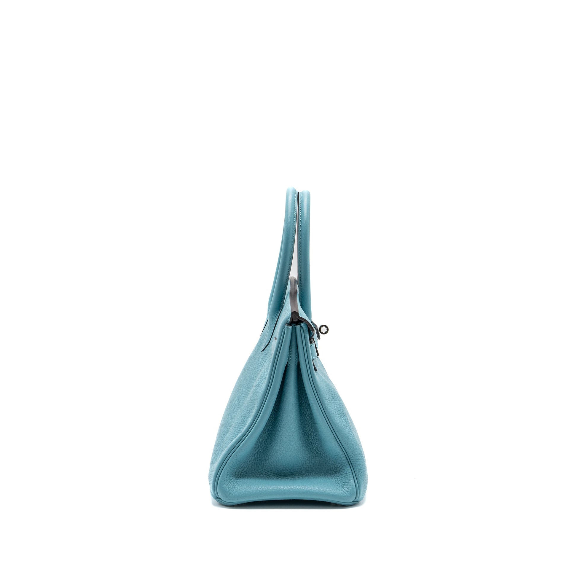 Hermes birkin 30 Clemence 3Z blue Saint Cyr SHW stamp T