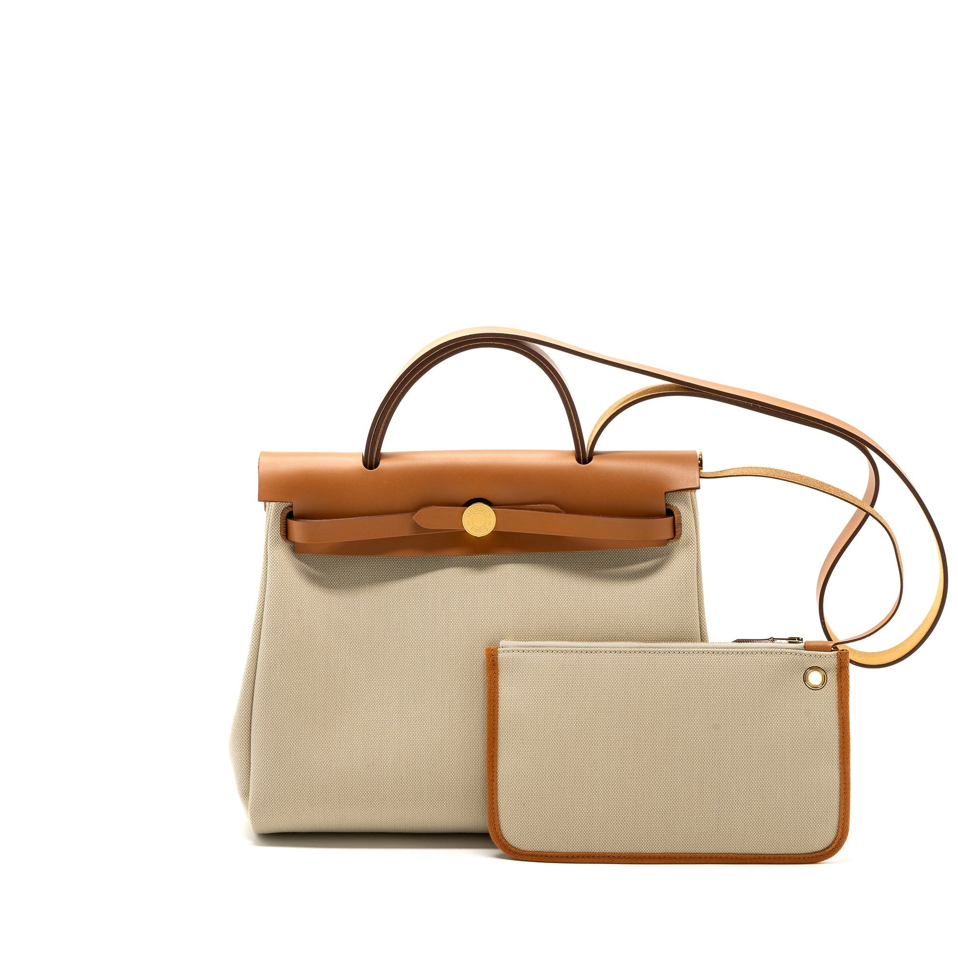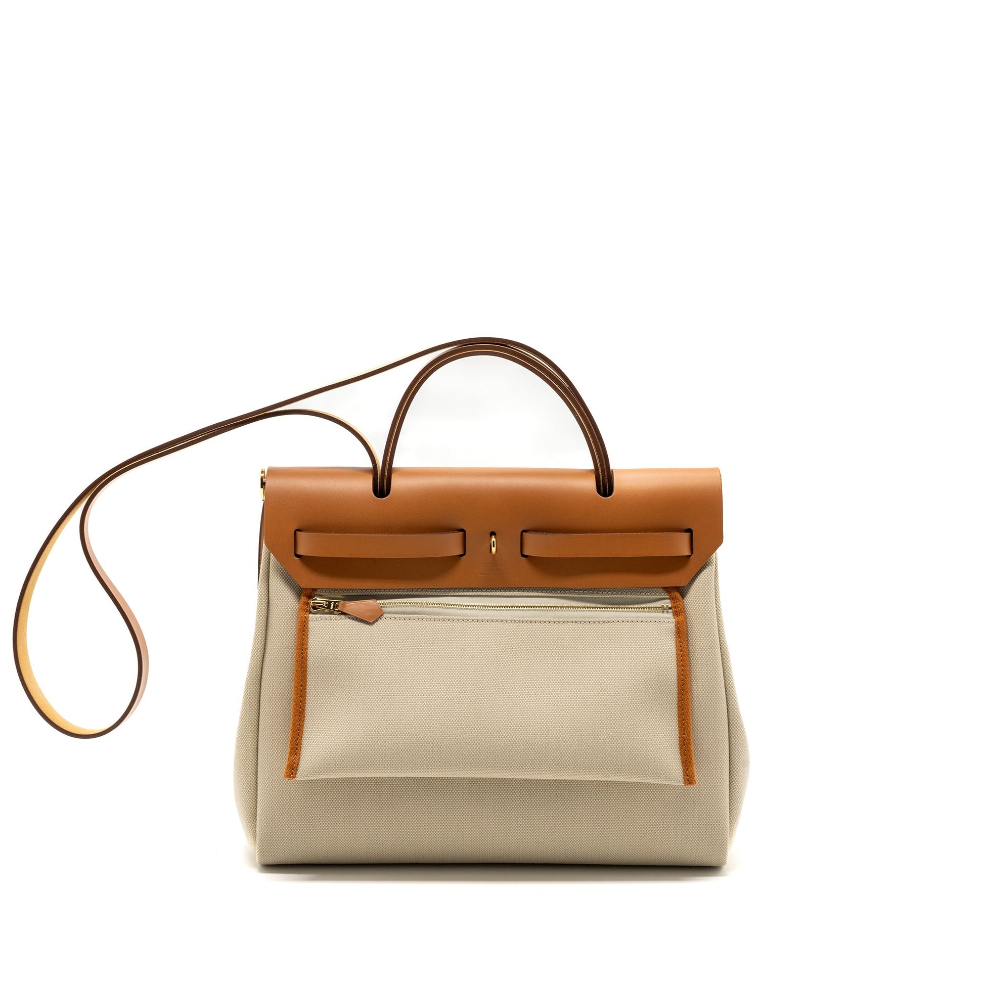 Hermes herbag zip 31 bag canvas / hunter beton / natural GHW stamp B