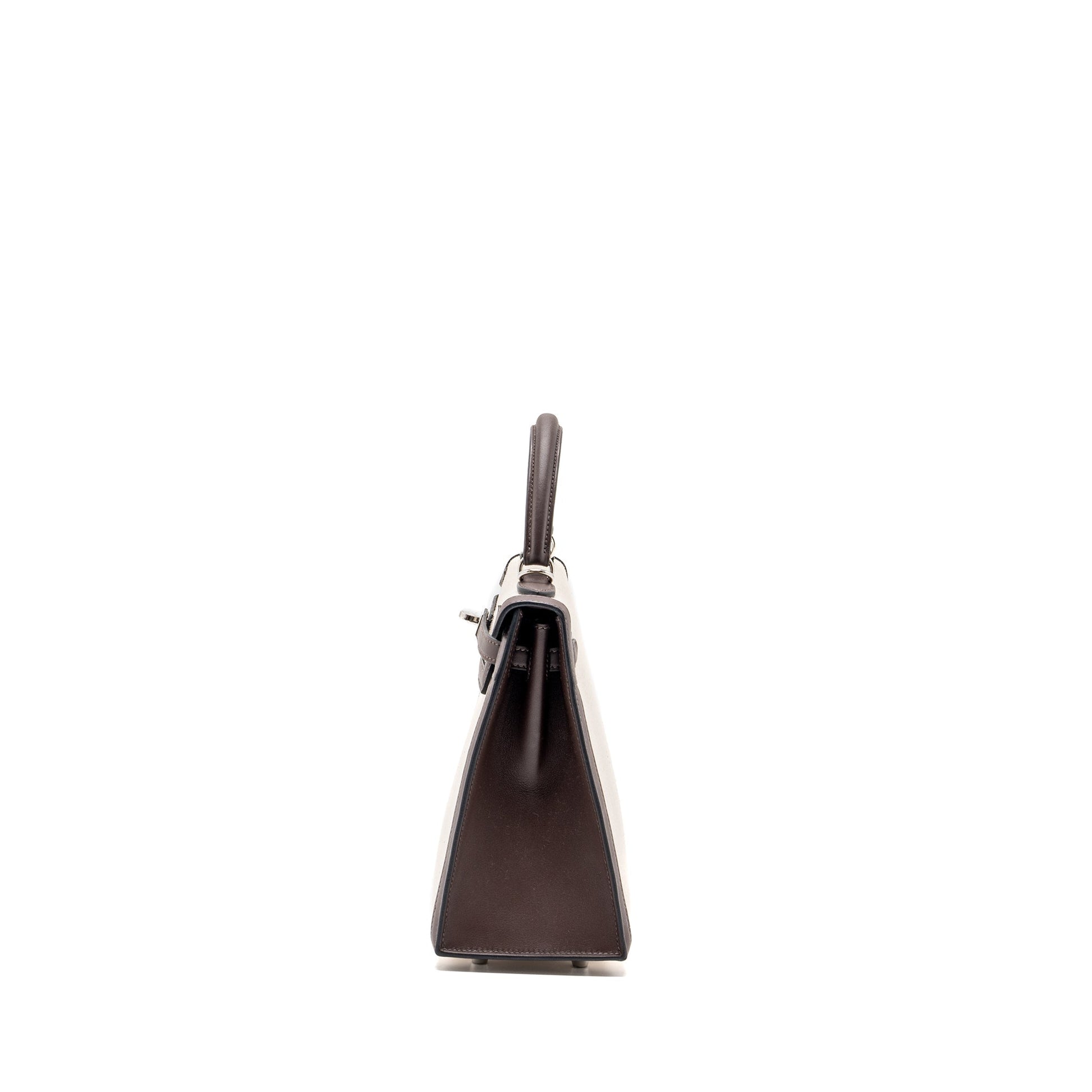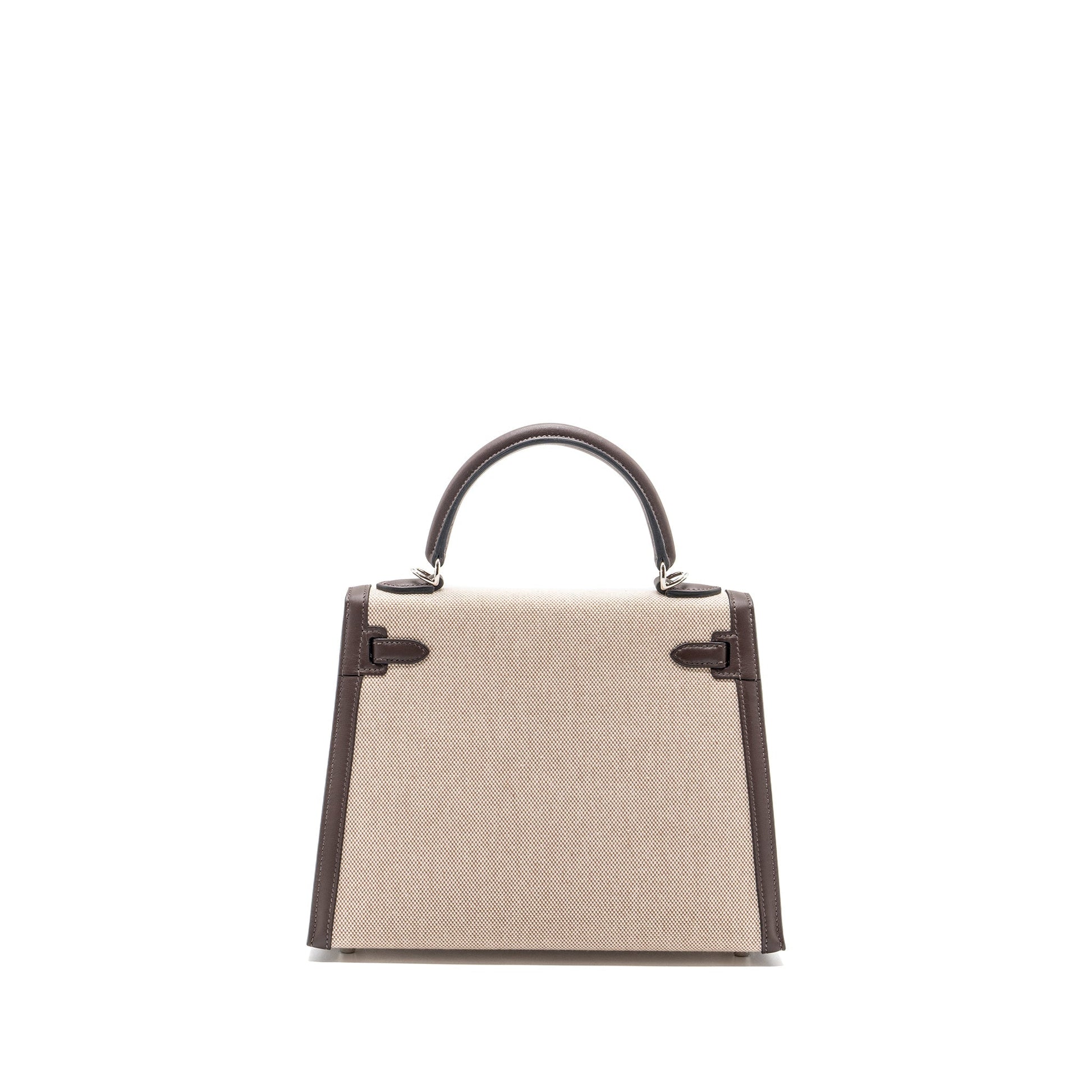 Hermes Kelly 25 Canvas/Swift Moka SHW Stamp B