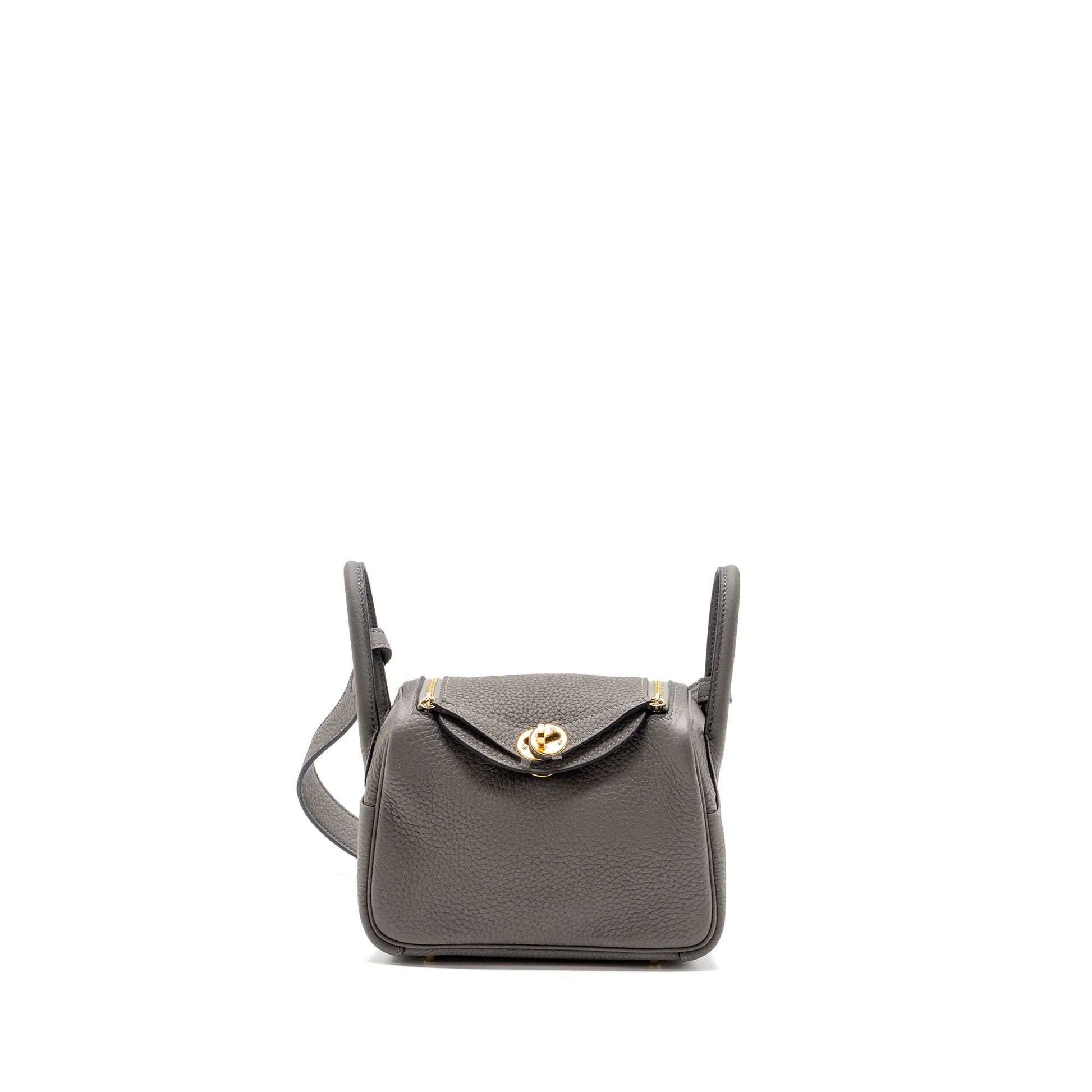 Hermes Mini Lindy Clemence Gris Meyer GHW Stamp U